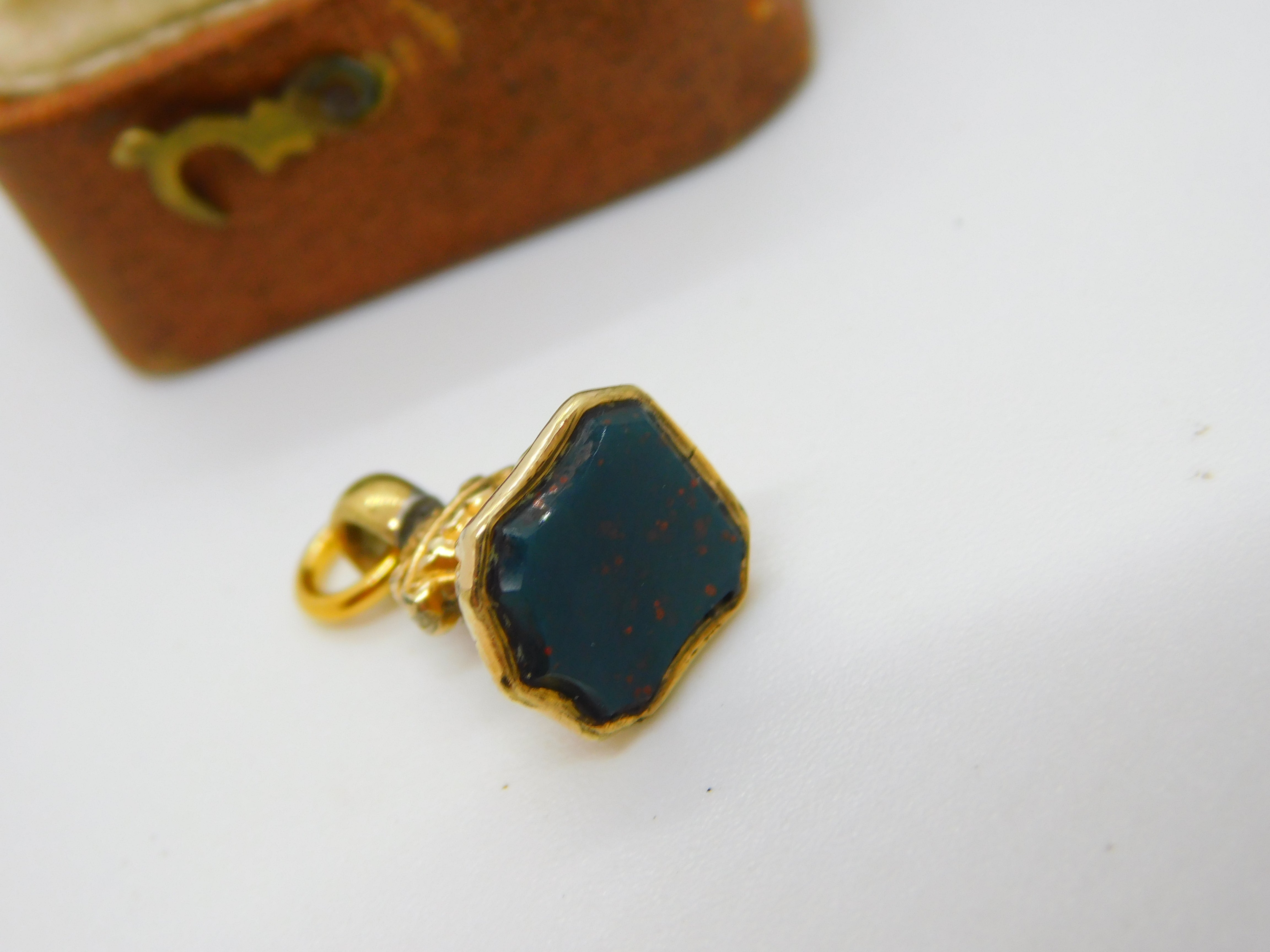 Victorian 9ct Gold Cased Bloodstone Set Shield Fob Seal Pendant c1880 Antique