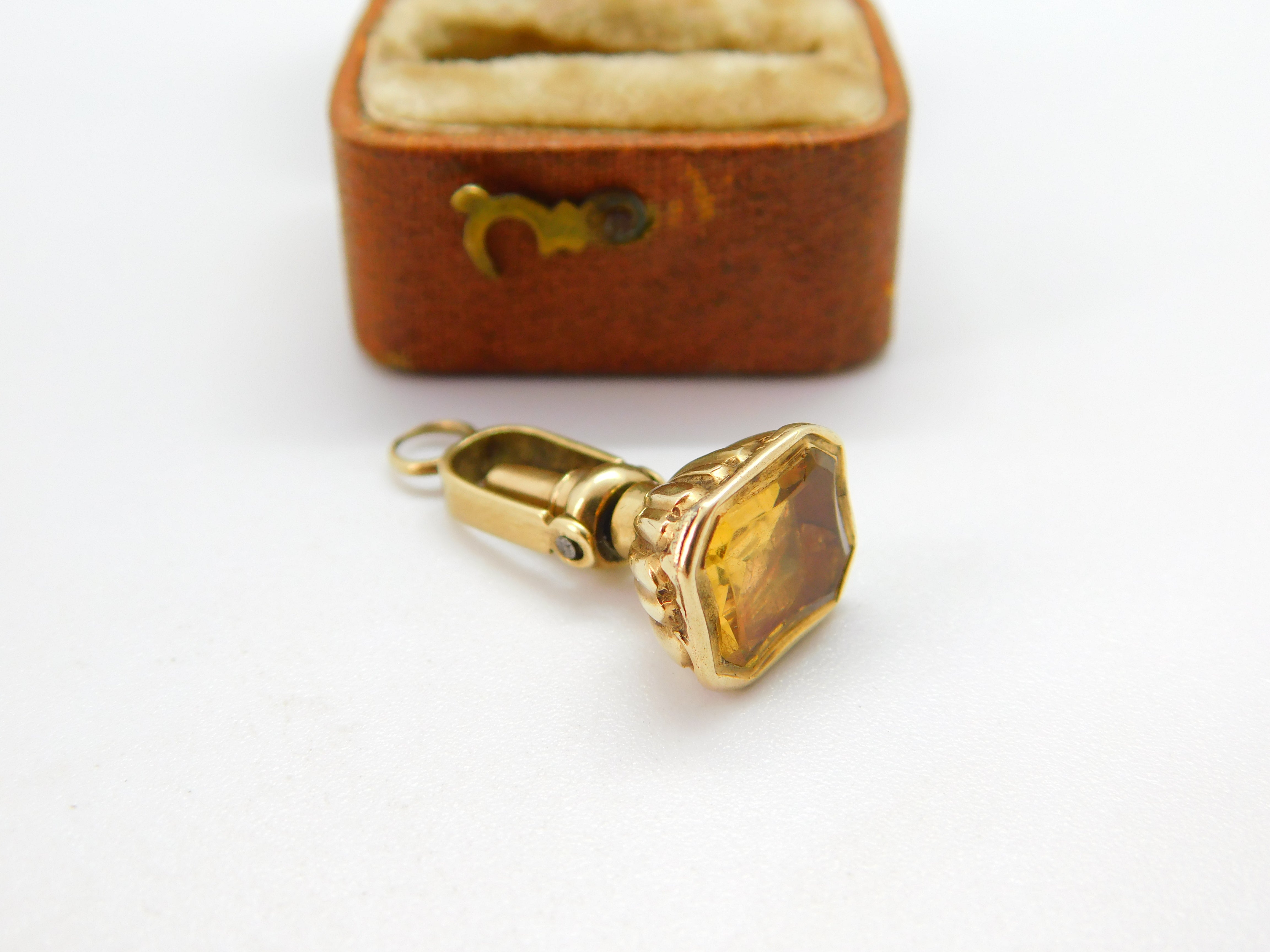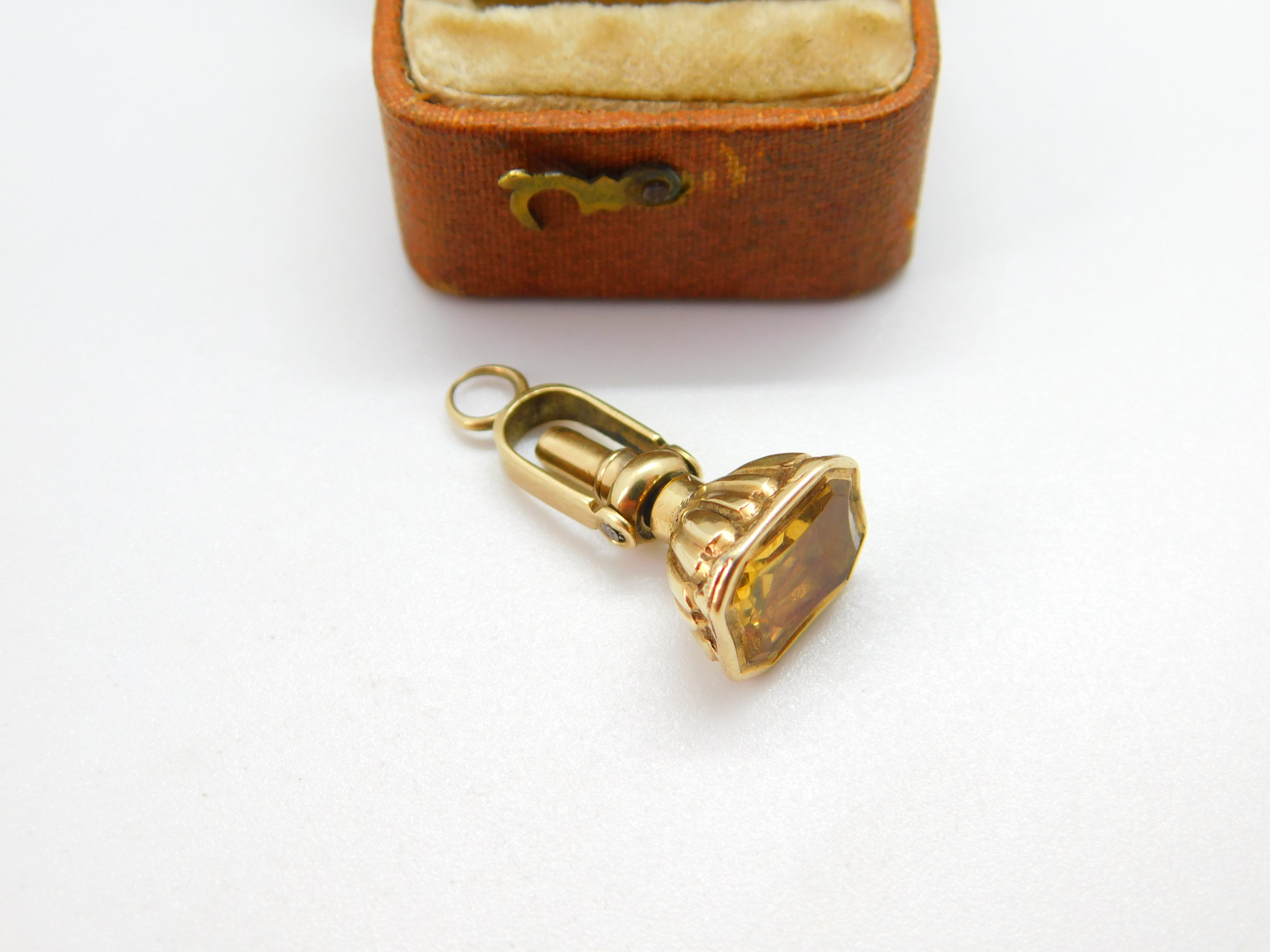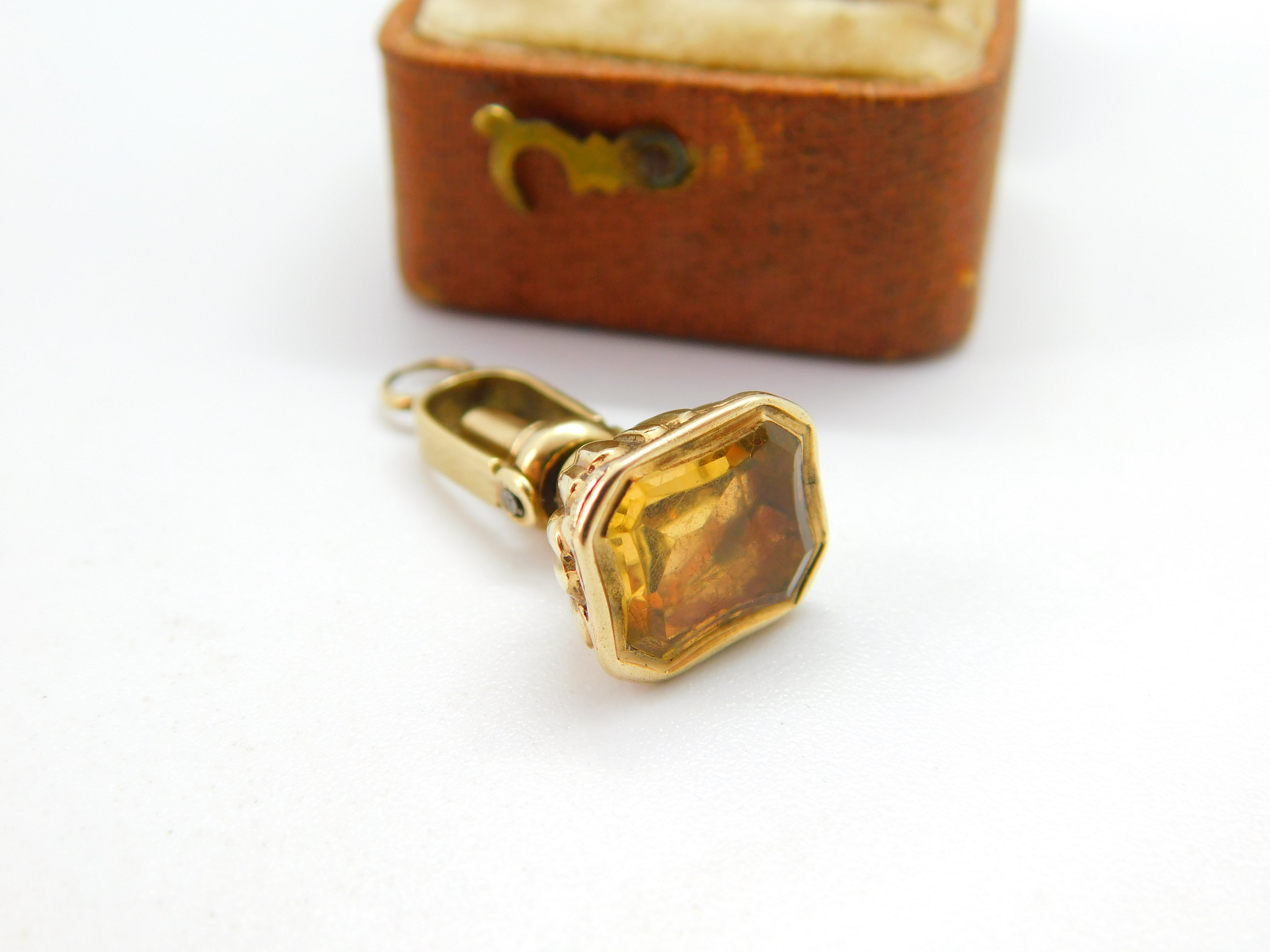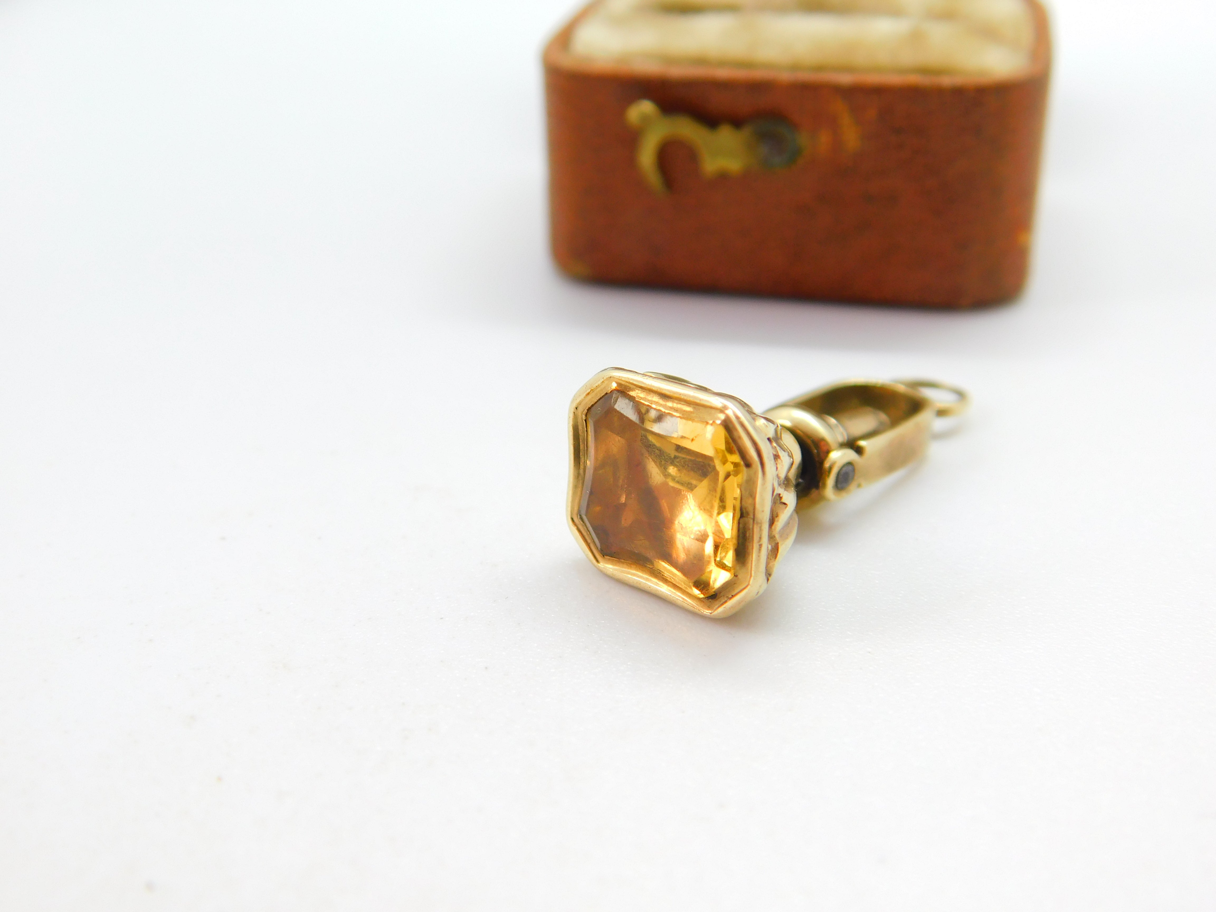 Victorian 9ct Gold & Citrine Set Swivelling Watch Key & Seal Fob c1860 Antique