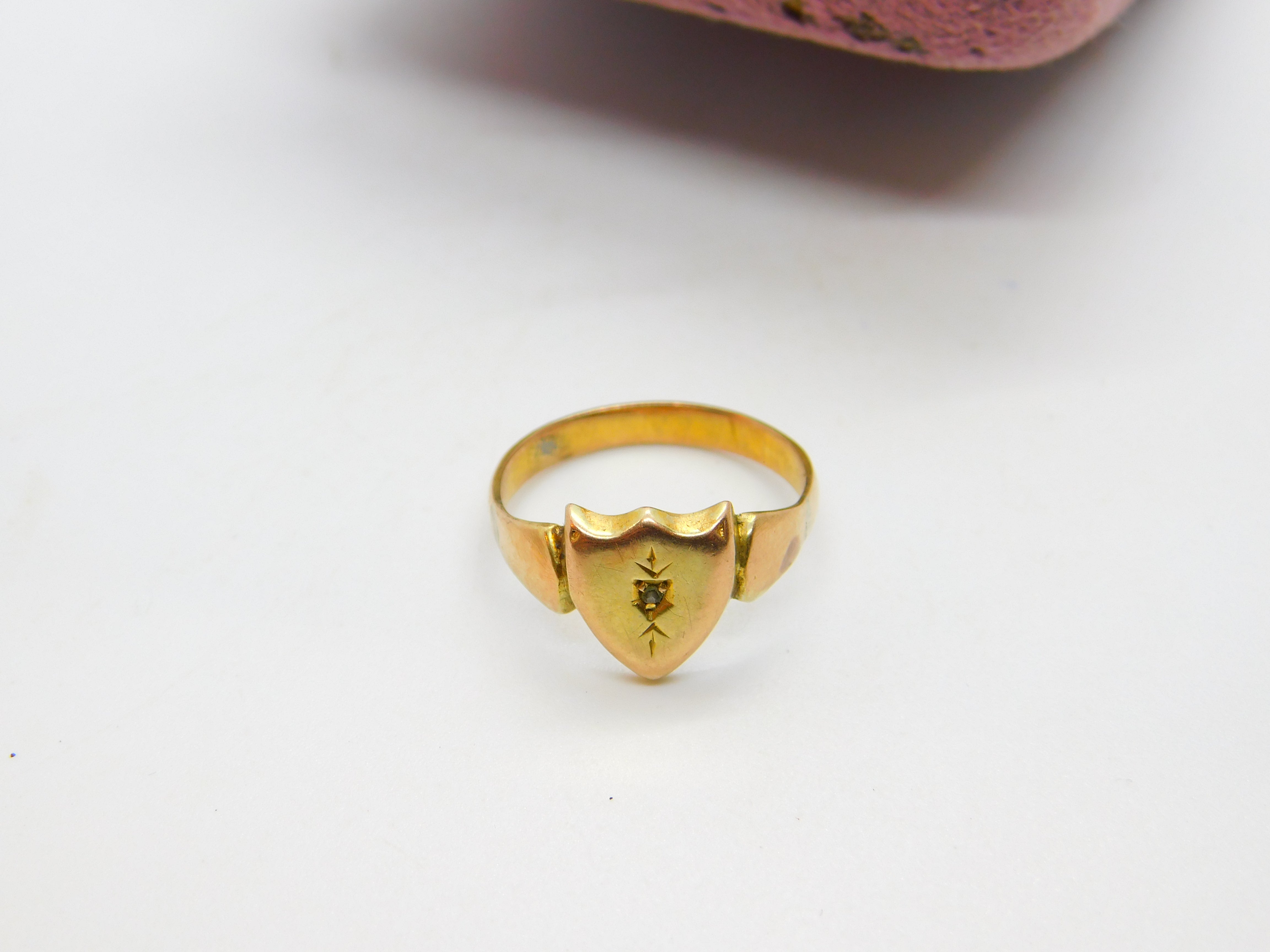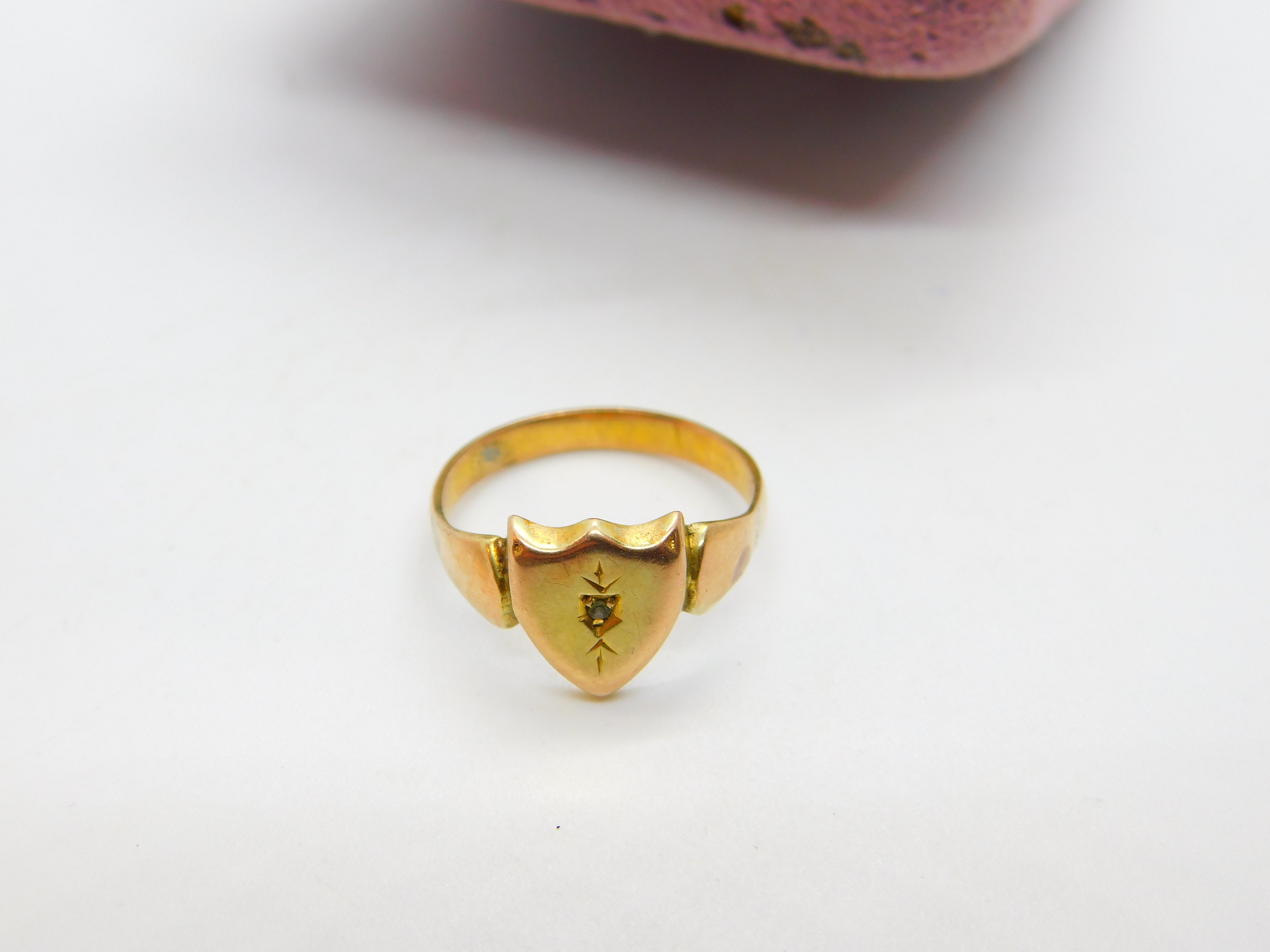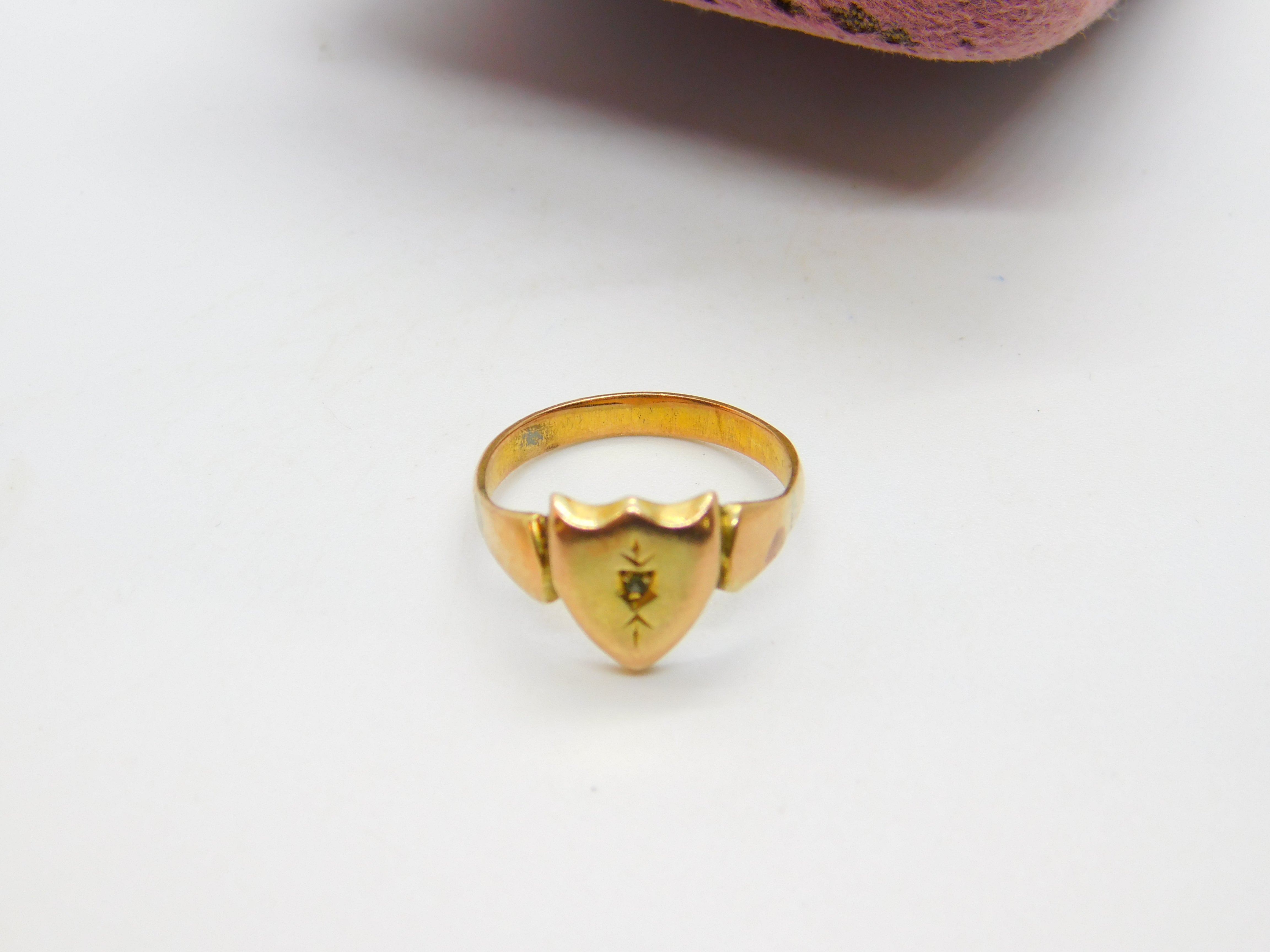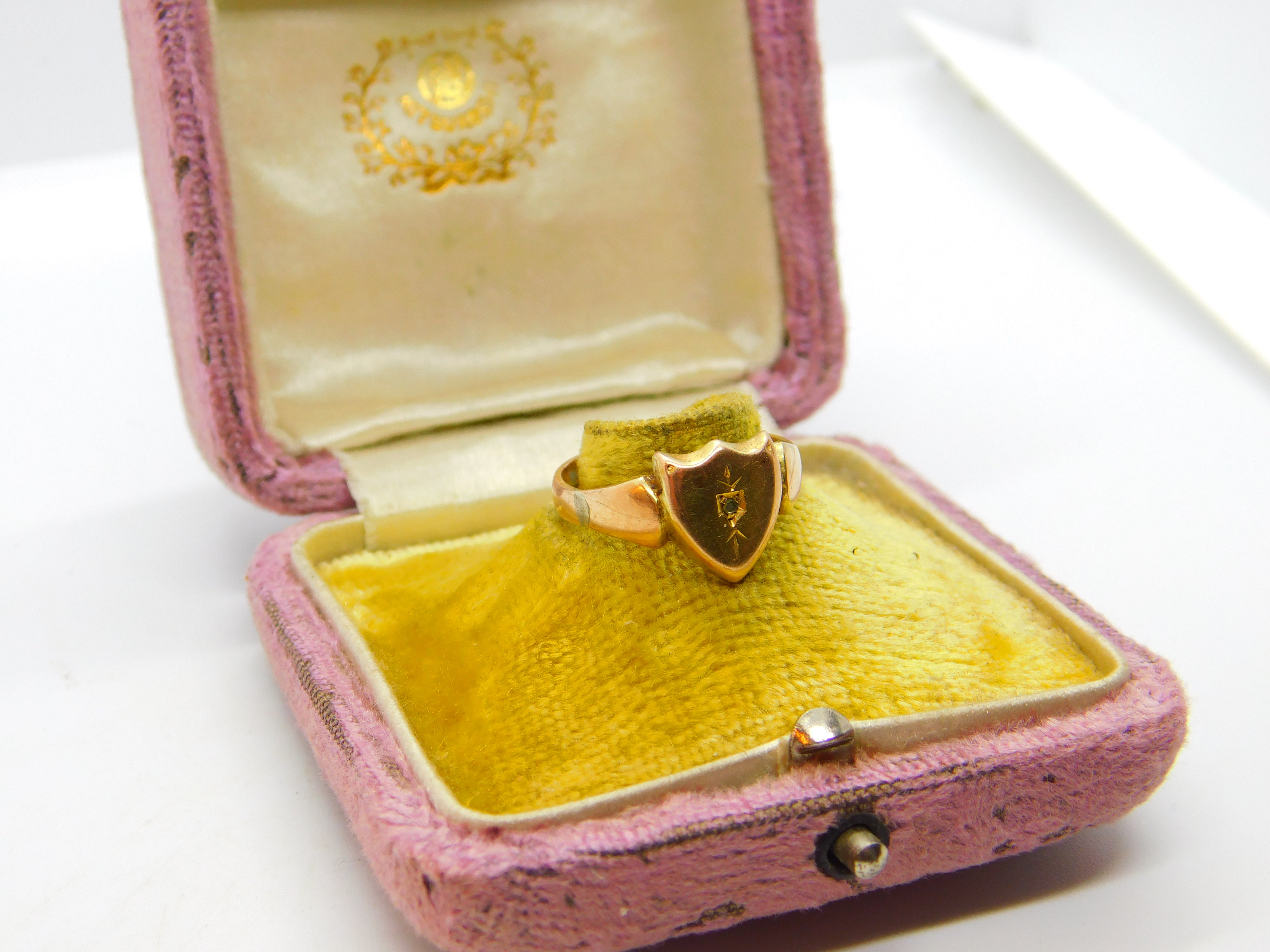 Victorian 9ct Gold Diamond Set Shield Shape Signet Ring c1880 Antique