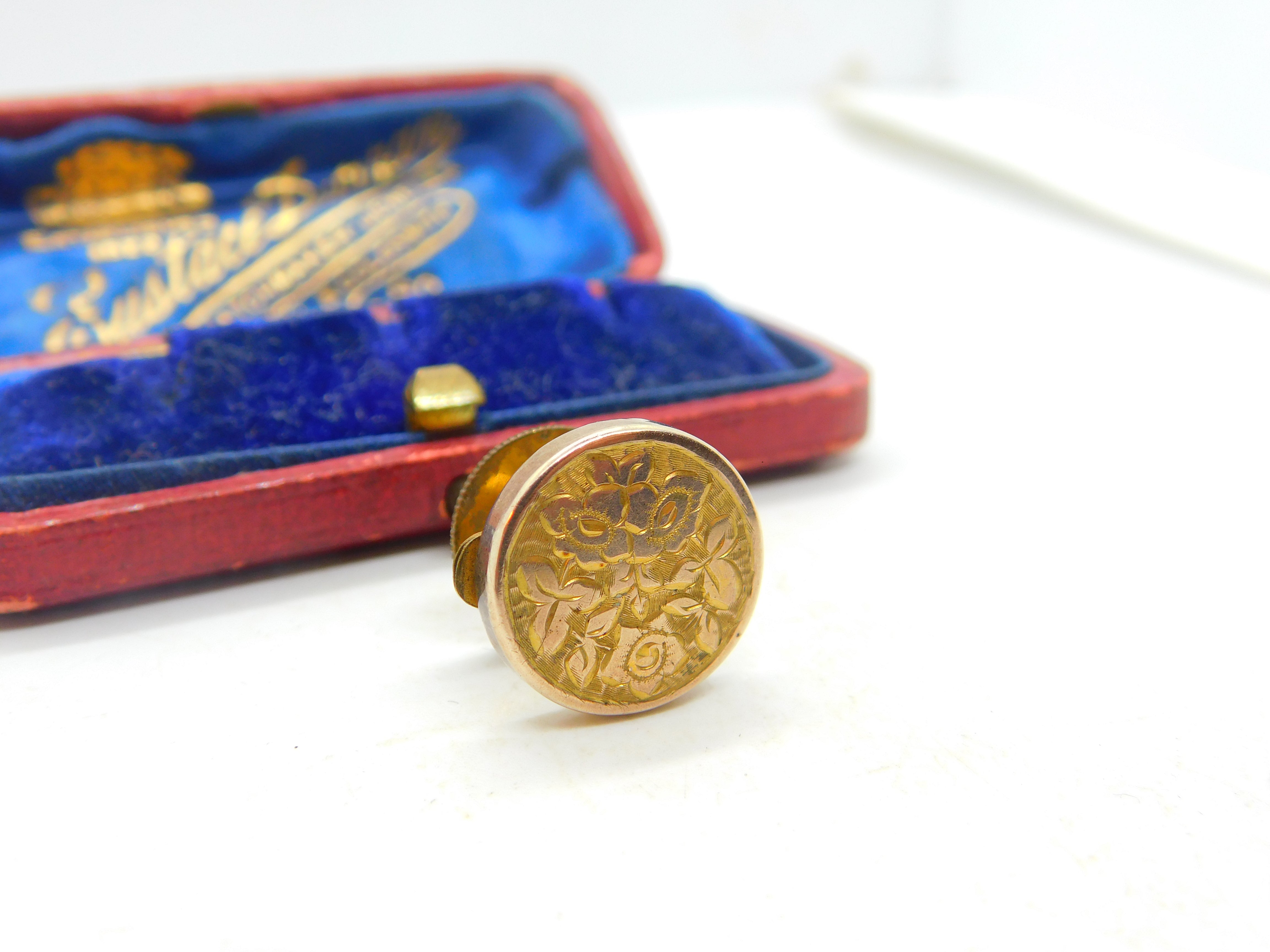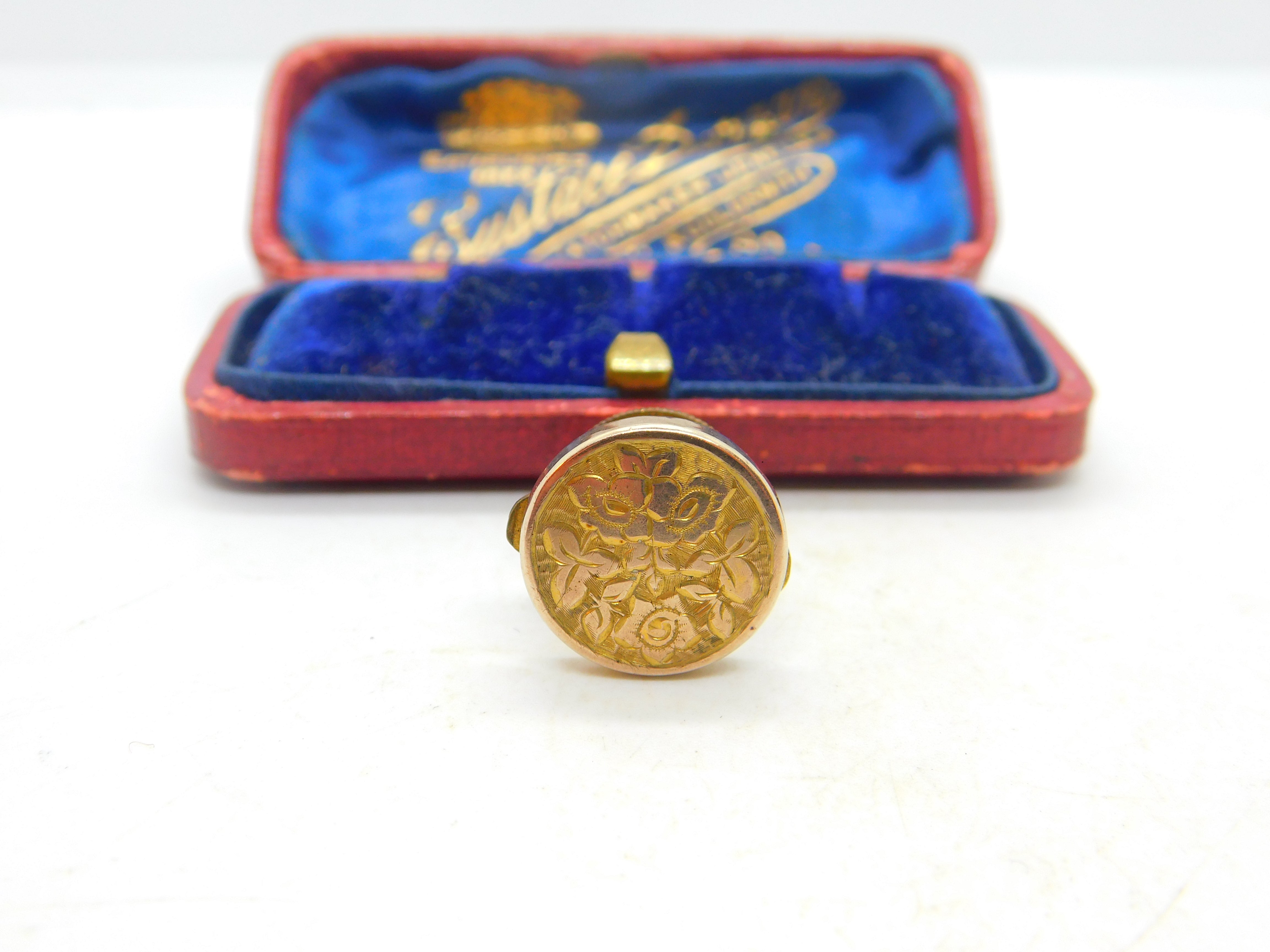 Victorian 9ct Gold Fronted Bachelor Button Engraved Initial Antique c1900