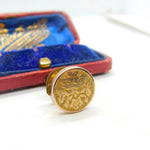 Details: A fantastic and wonderfully designed antique Victorian 9ct yellow gold fronted Bachelor's button with lovely floral motifs c1900. The concept of the bachelors button allows one to attach a button in an emergency without being very apt at sewing! This is a wonderful item that would make a perfect gift or addition to any collection. The BOX pictured is for PRESENTATION ONLY and is NOT included in the listings but used to frame the pictures unless specifically stated otherwise.