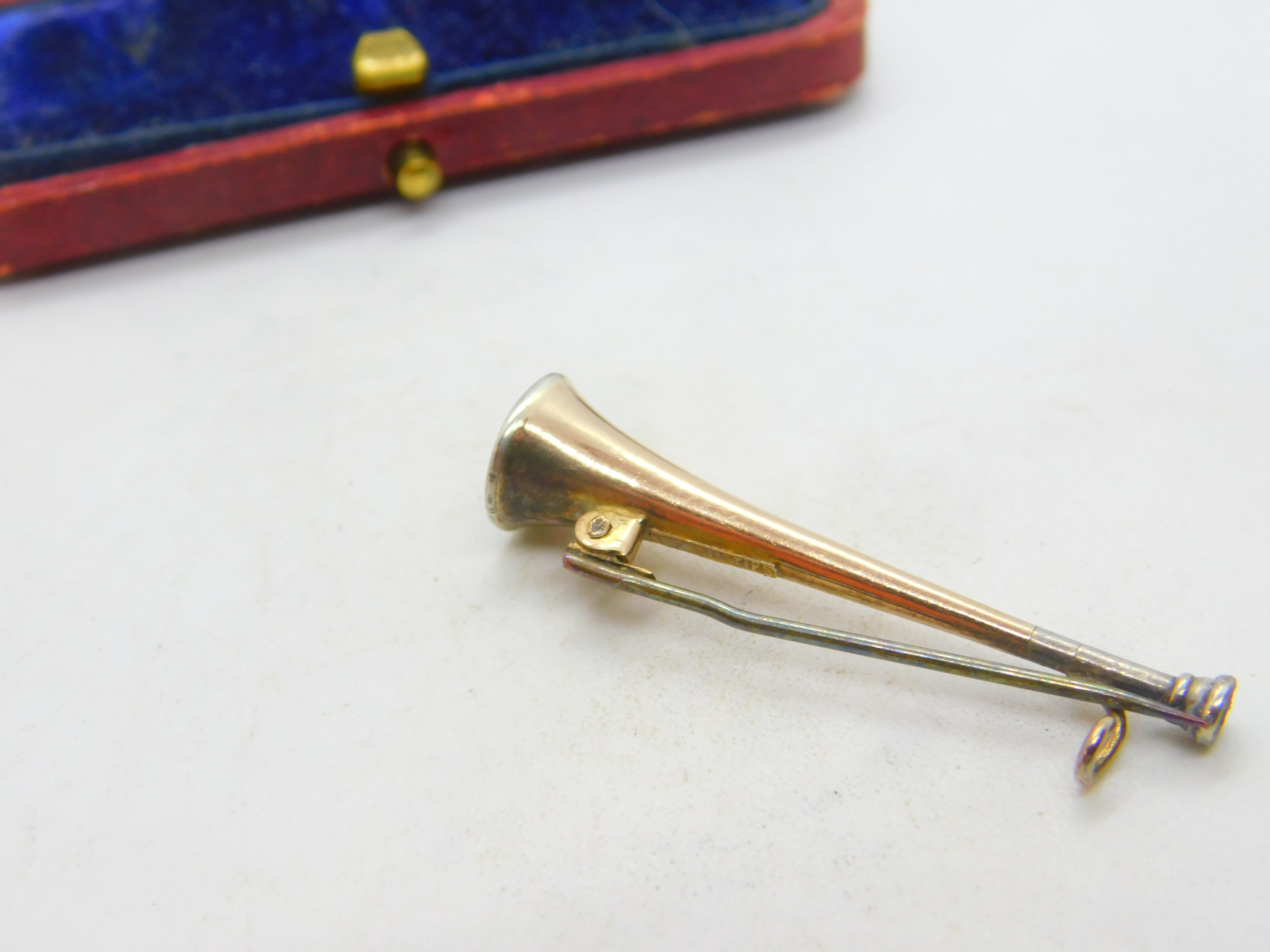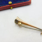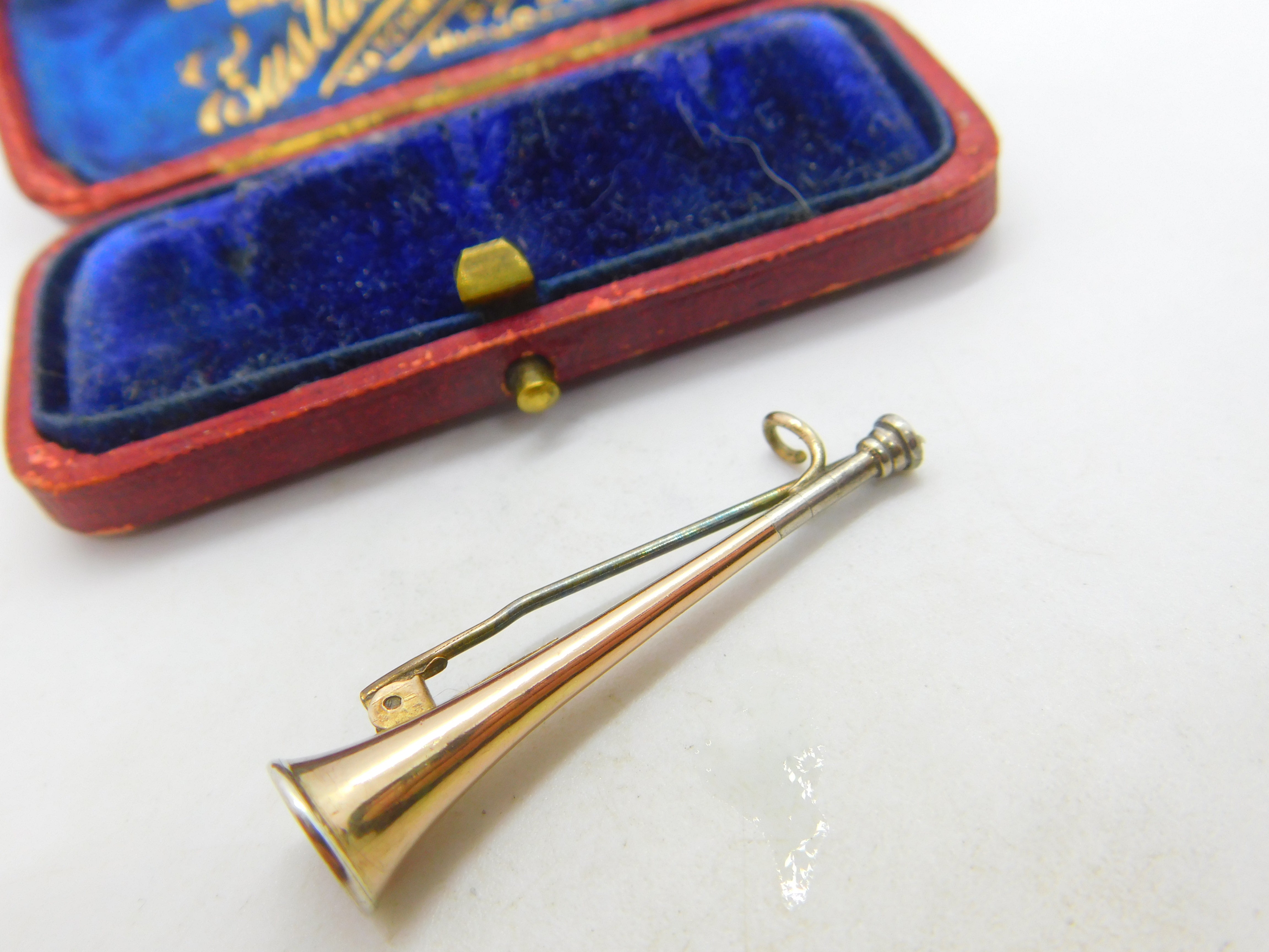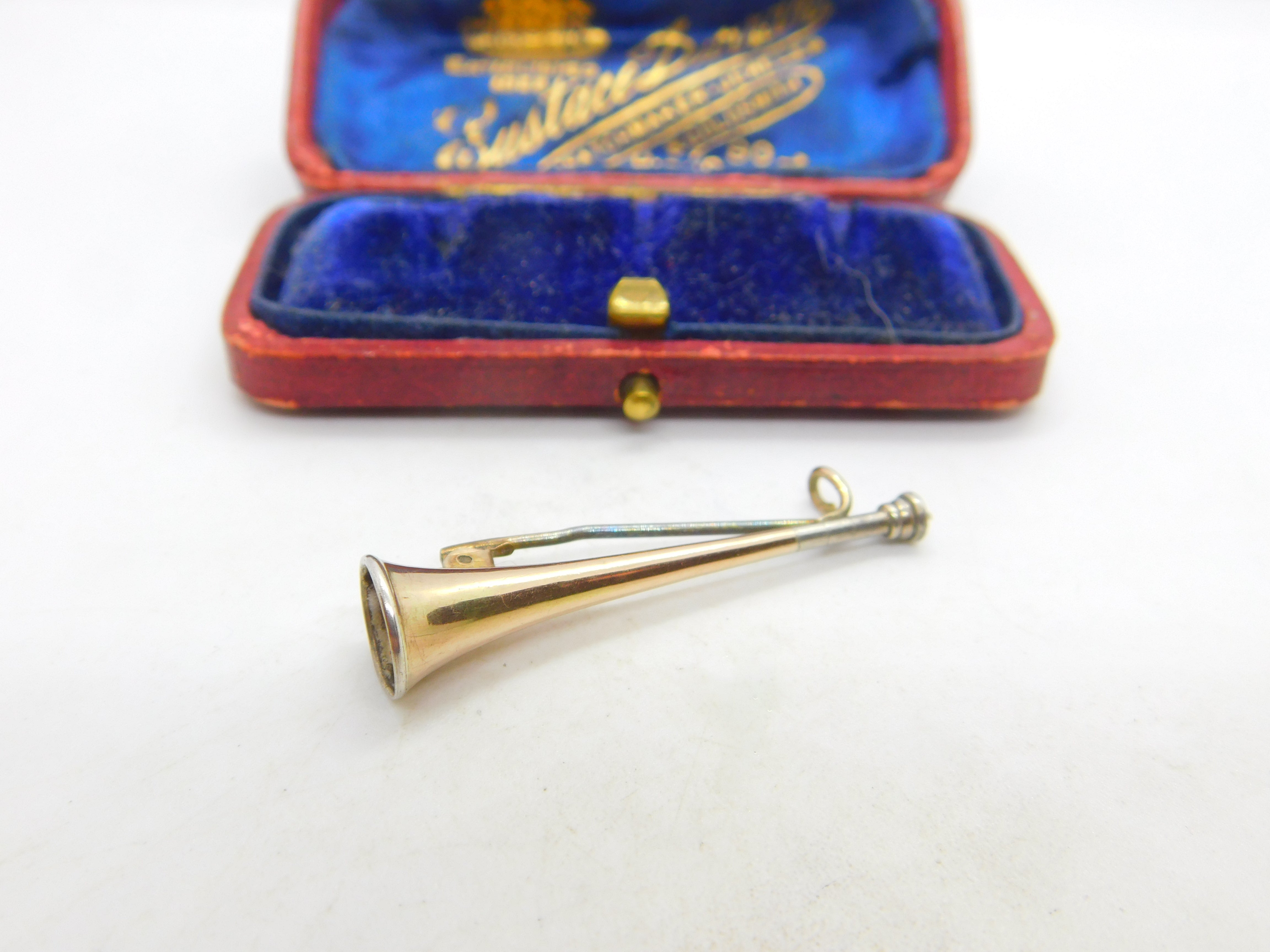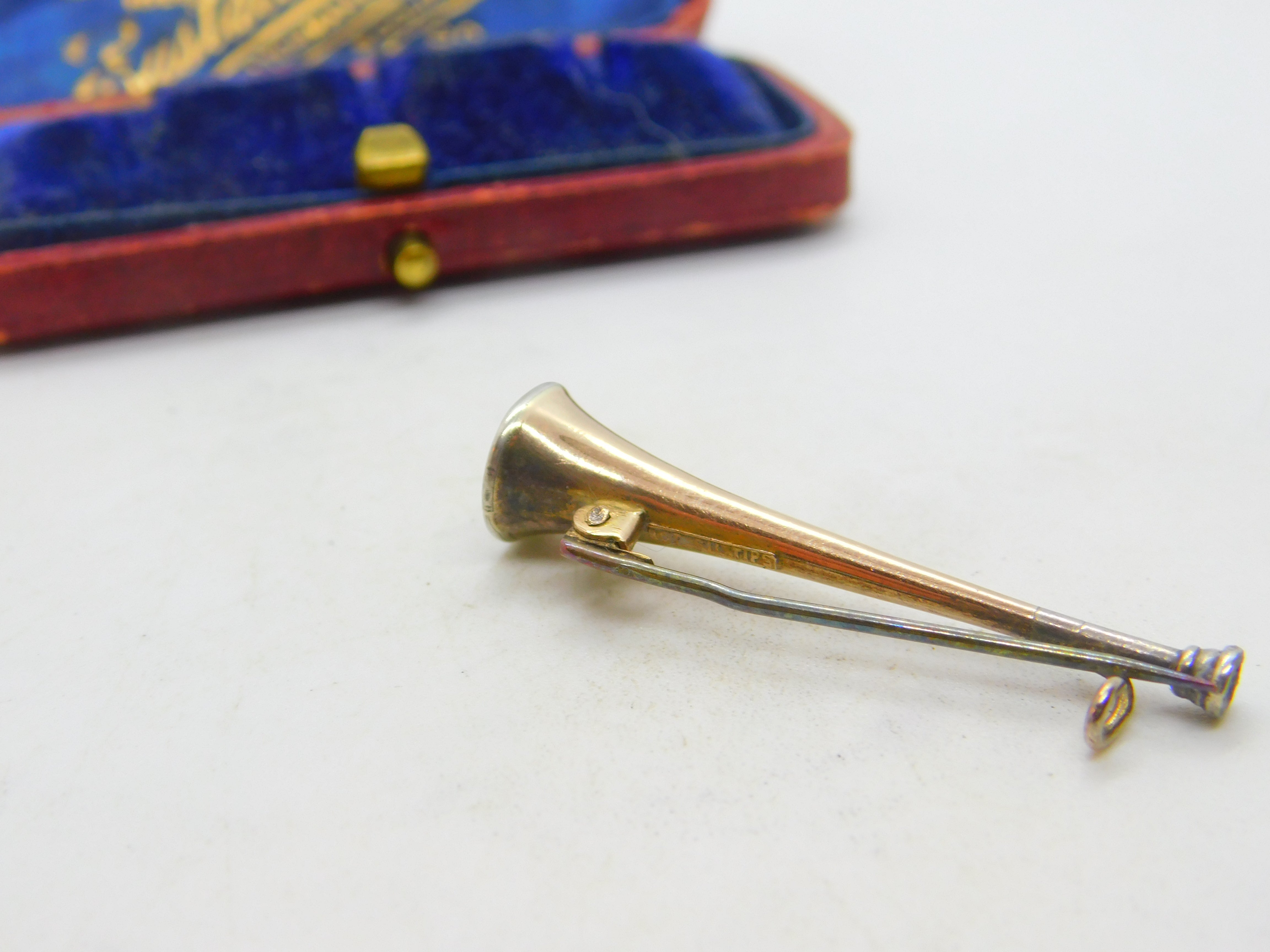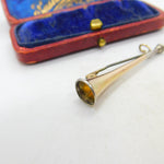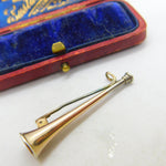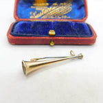 Victorian 9ct Gold Hunting Horn Stock Pin Brooch Antique c1890 Silver Tips