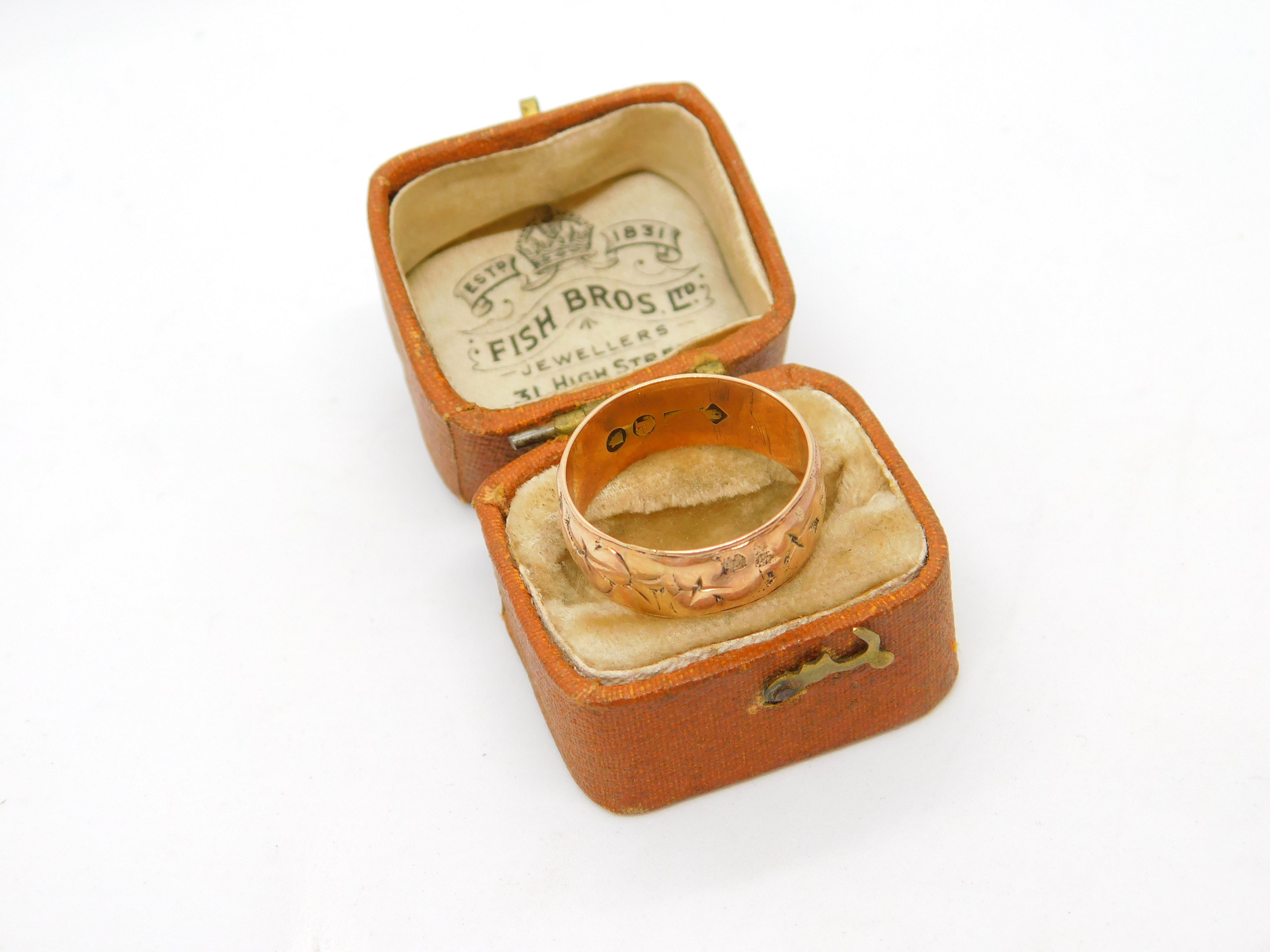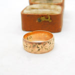 Details: A fantastic and wonderfully designed antique Victorian 9ct yellow gold ivy leaf pattern band ring with charming detailing hallmarked London 1890 to the interior. This is a wonderful item that would make a perfect gift or addition to any collection. The BOX pictured is for PRESENTATION ONLY and is NOT included in the listings but used to frame the pictures unless specifically stated otherwise.