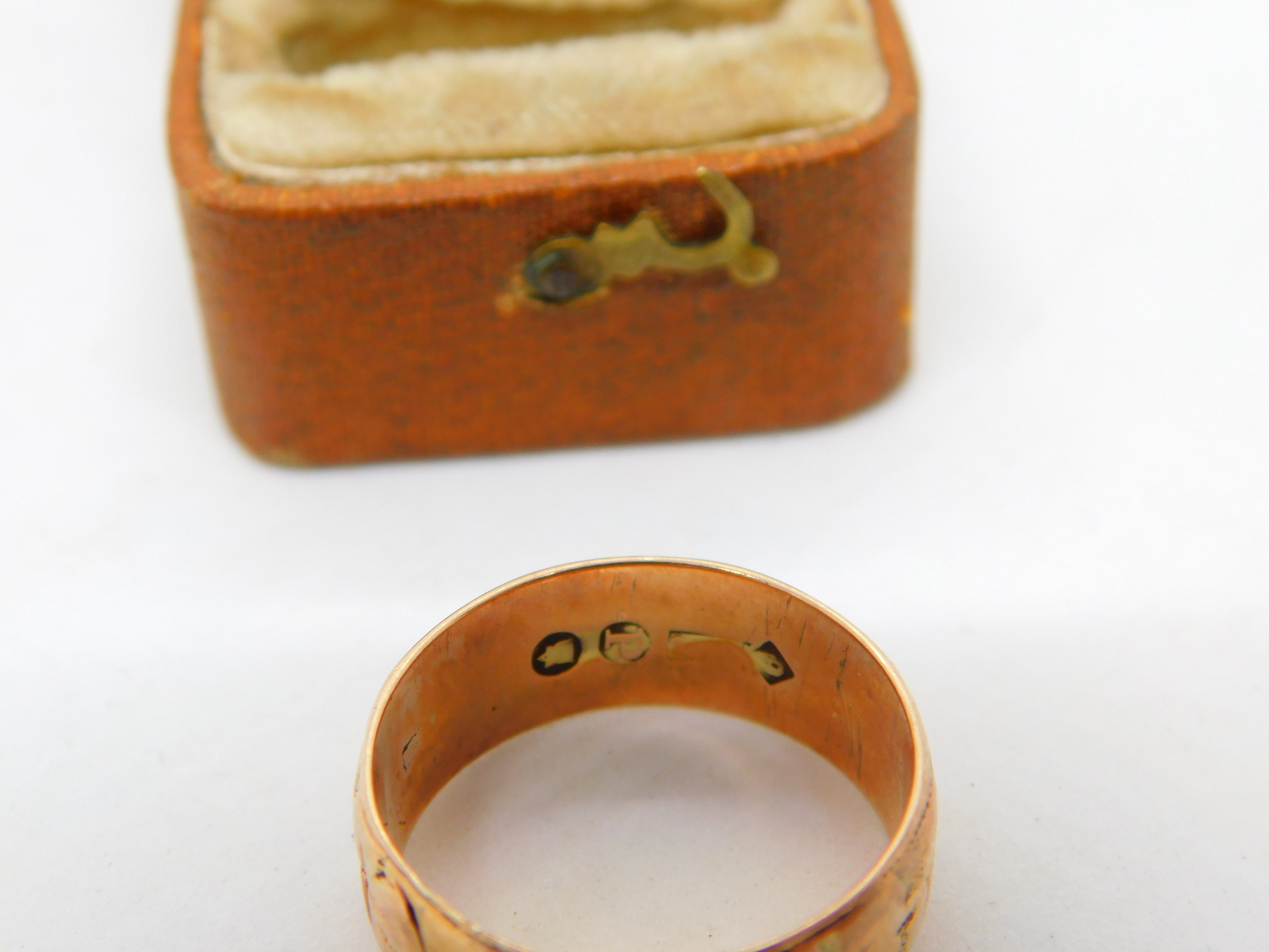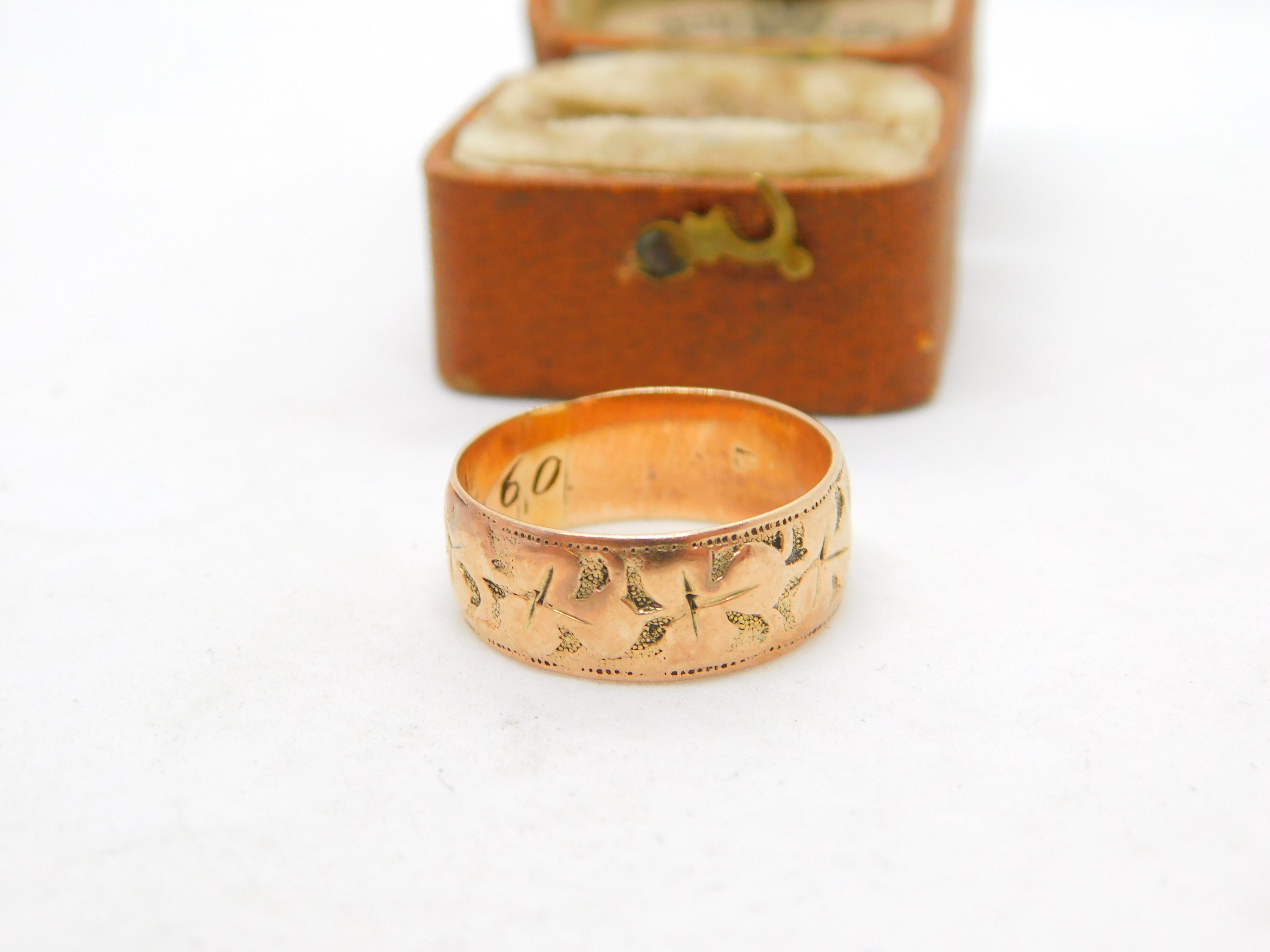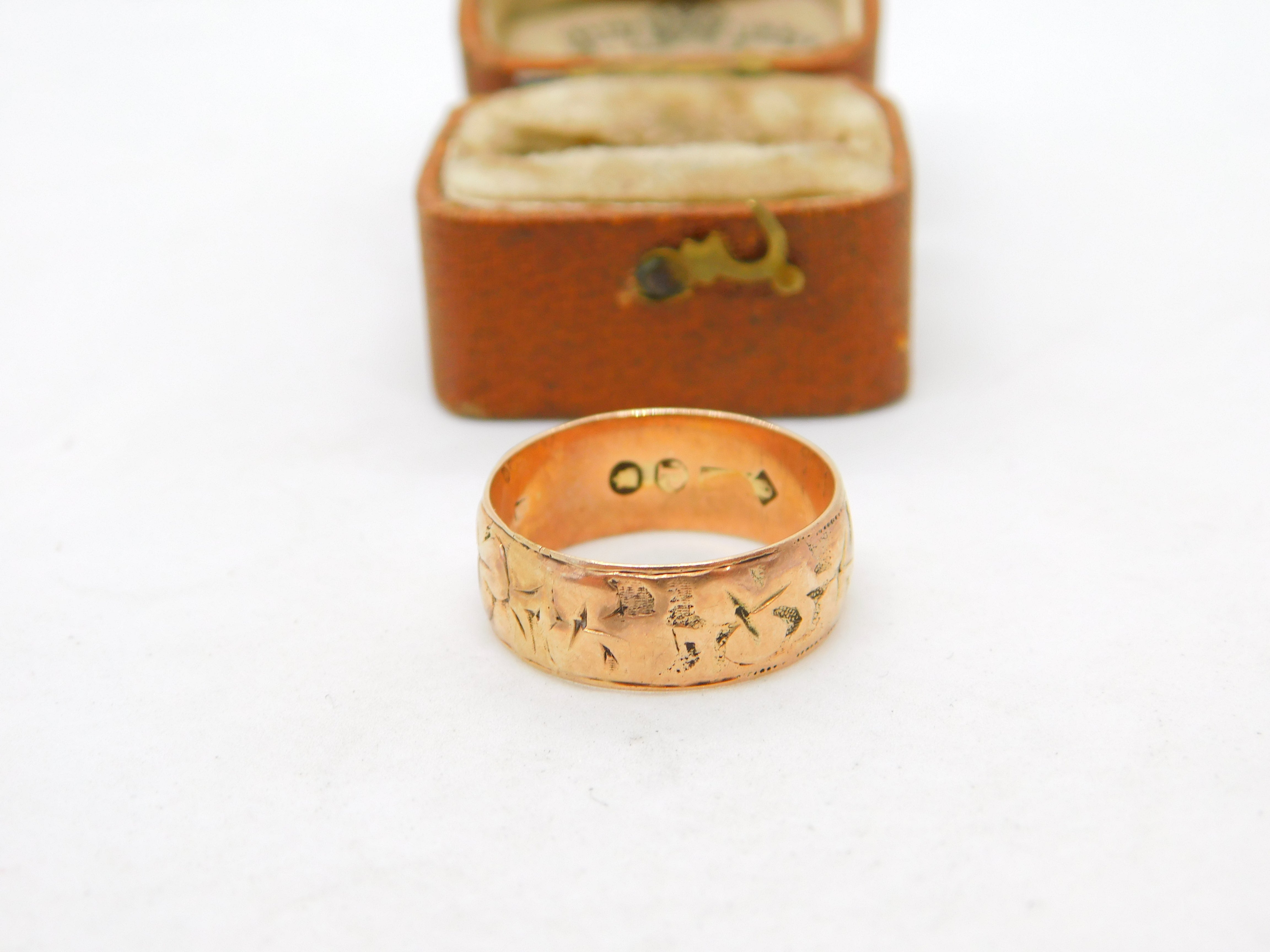 Victorian 9ct Gold Ivy Leaf Pattern Band Ring 1890 London Antique Size N UK