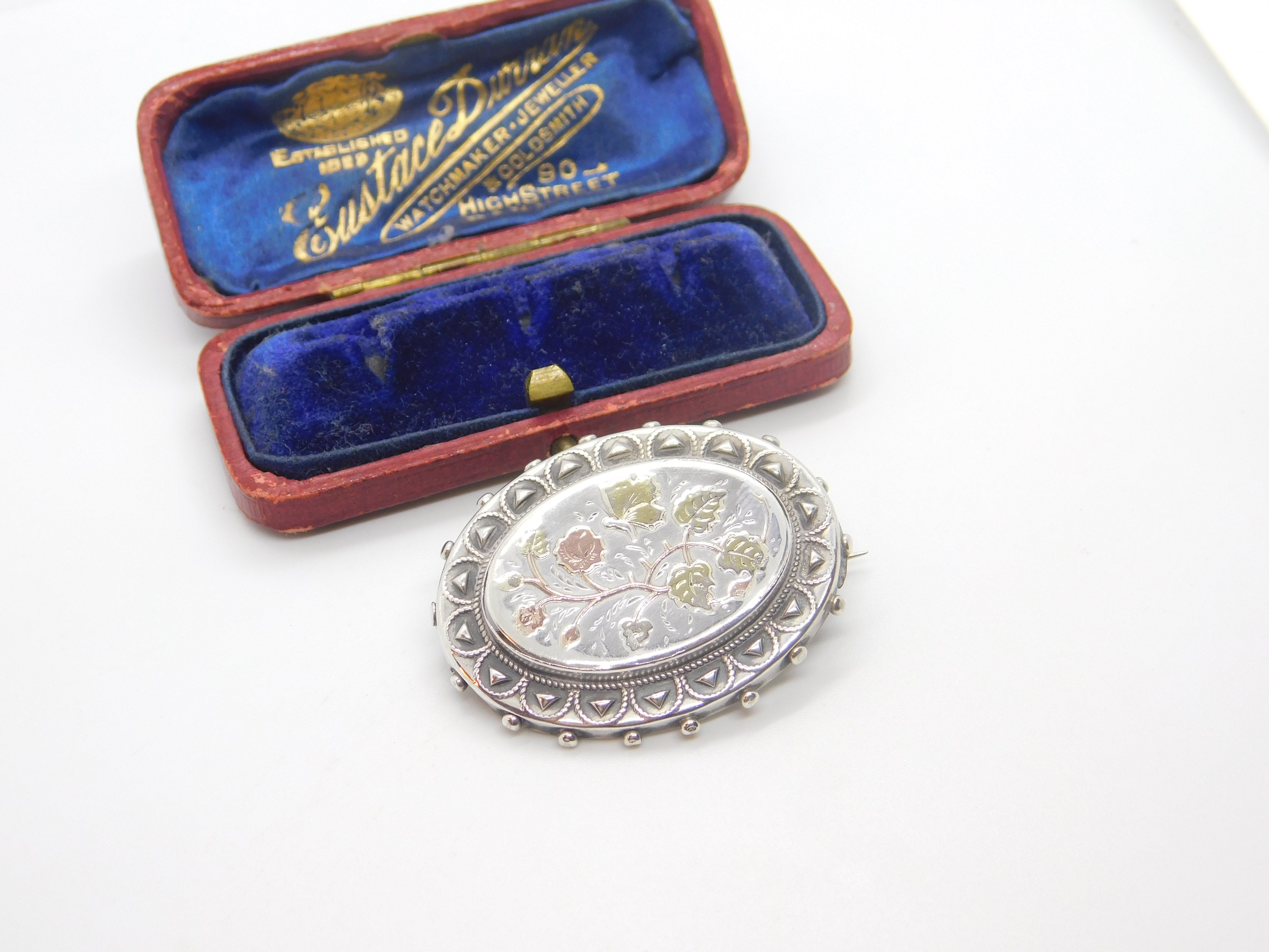 Victorian 9ct Gold on Sterling Silver Floral Aesthetic Brooch Antique c1880