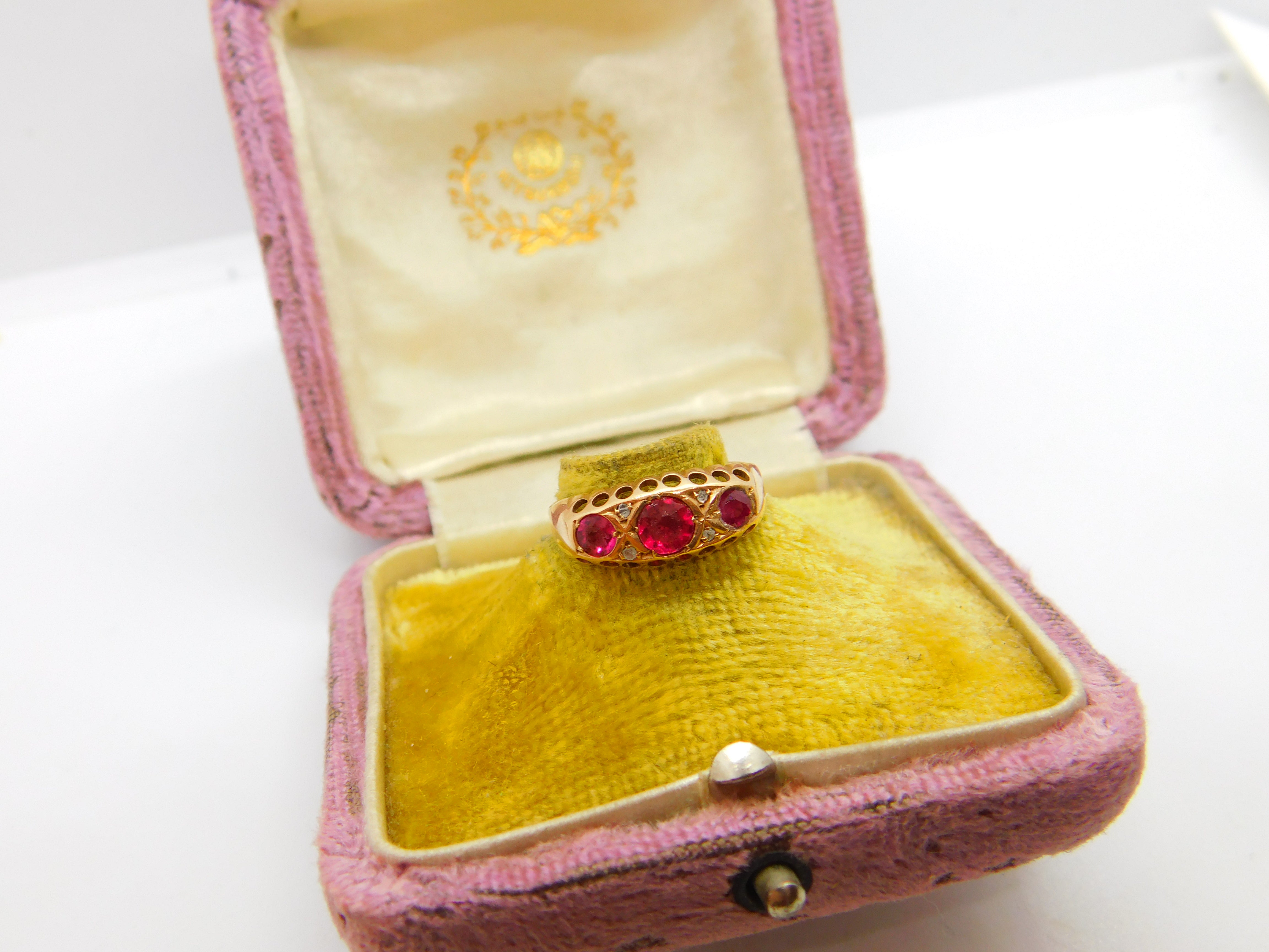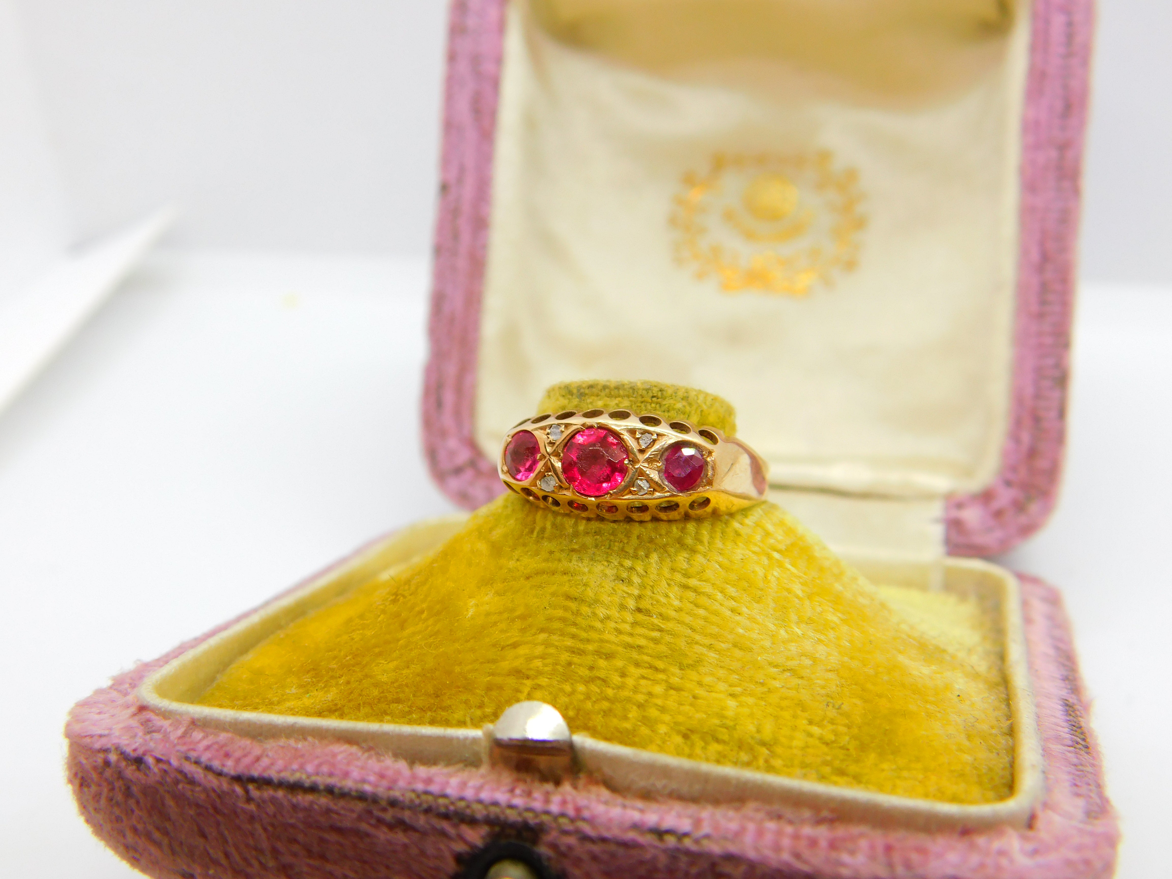 Victorian 9ct Gold, Ruby & Diamond Boat Ring Antique c1890 Chester
