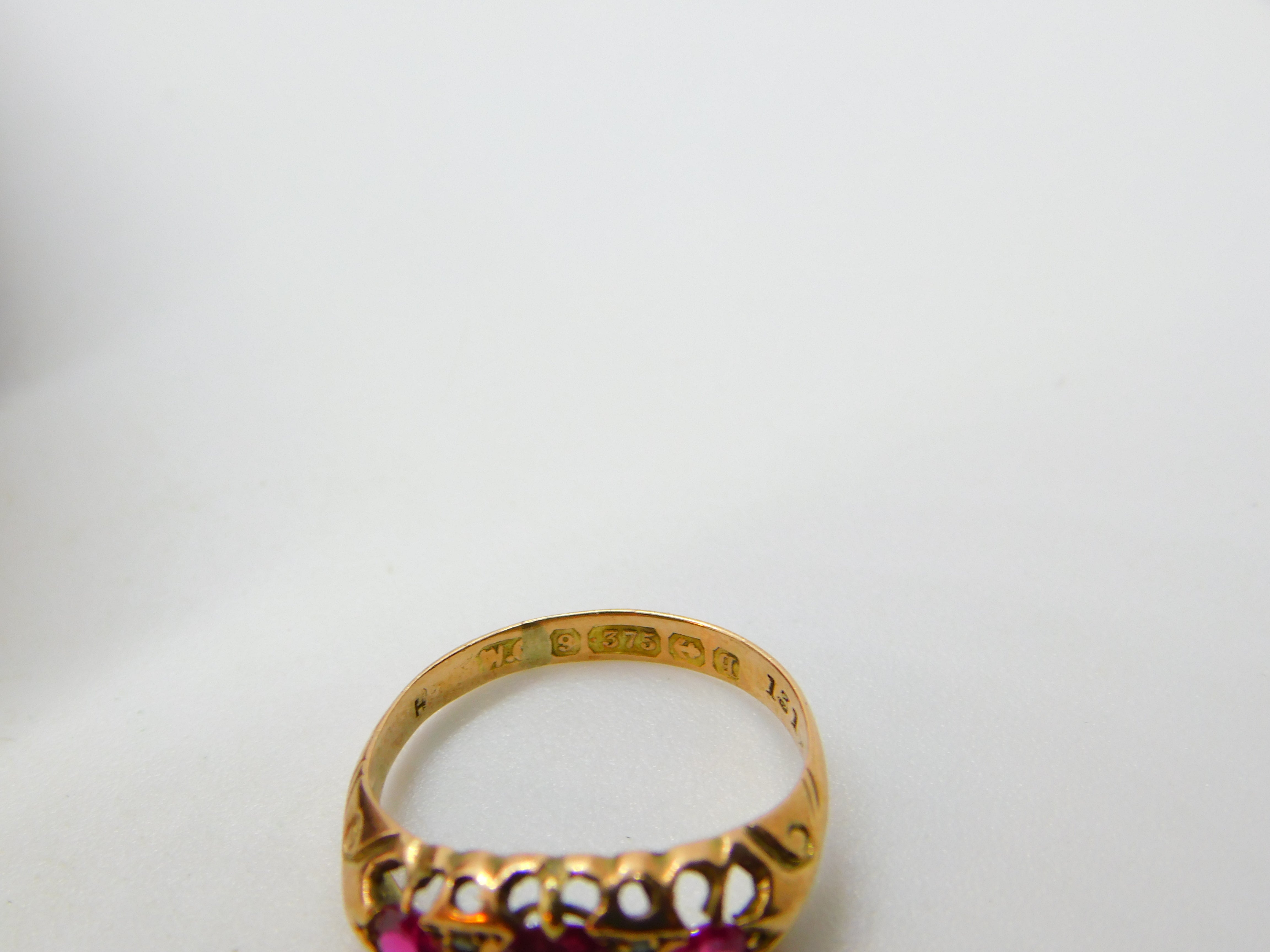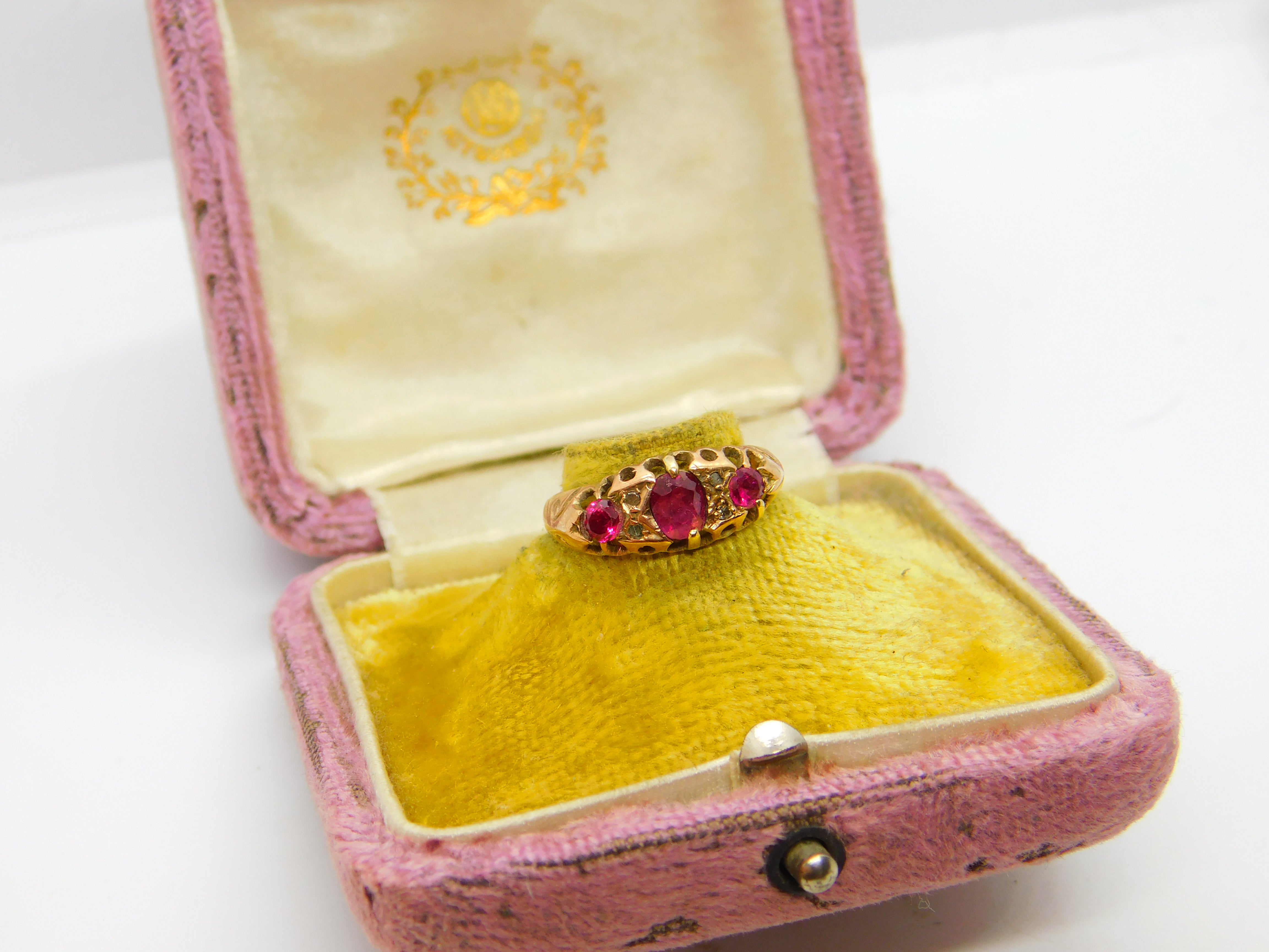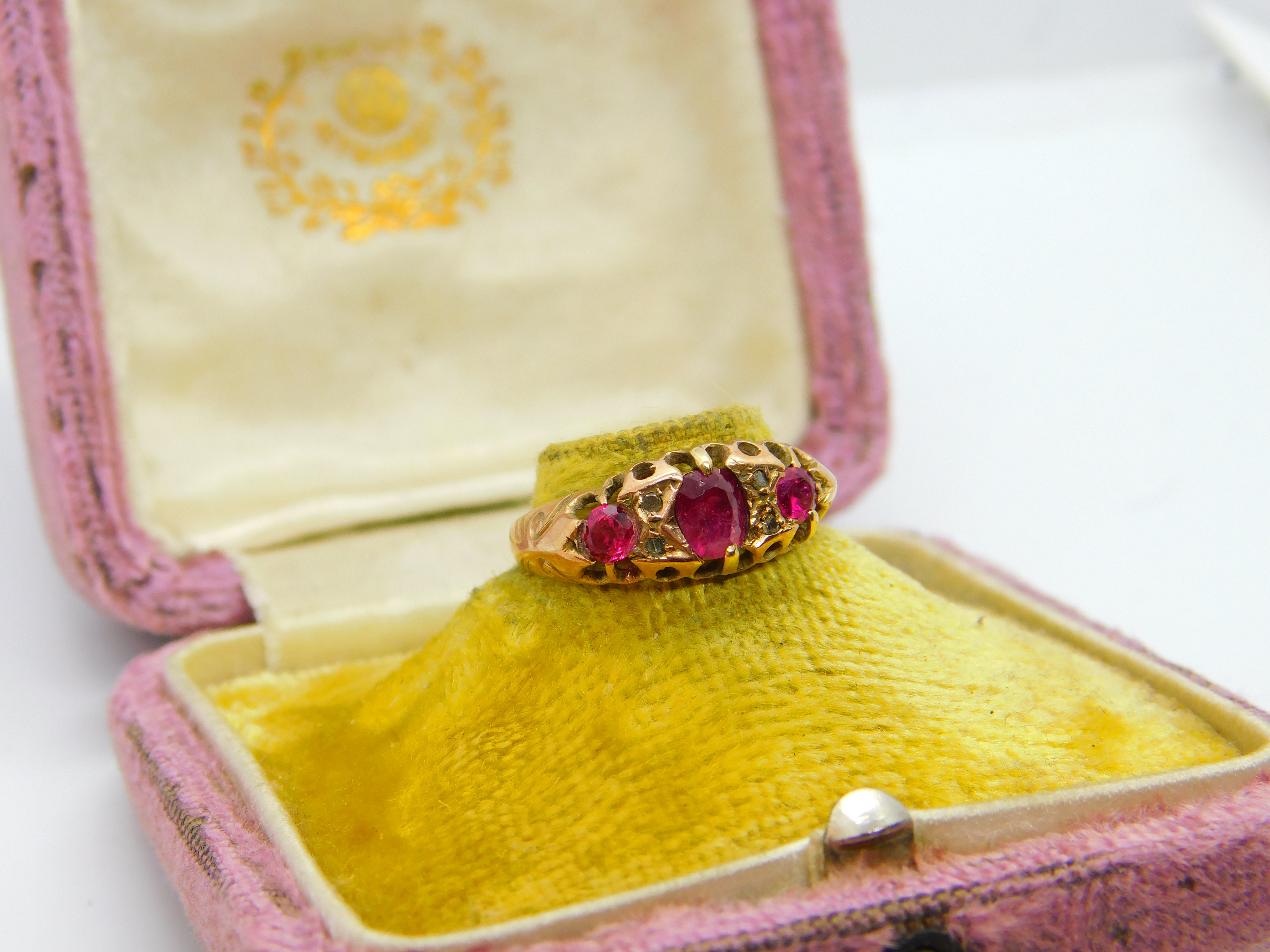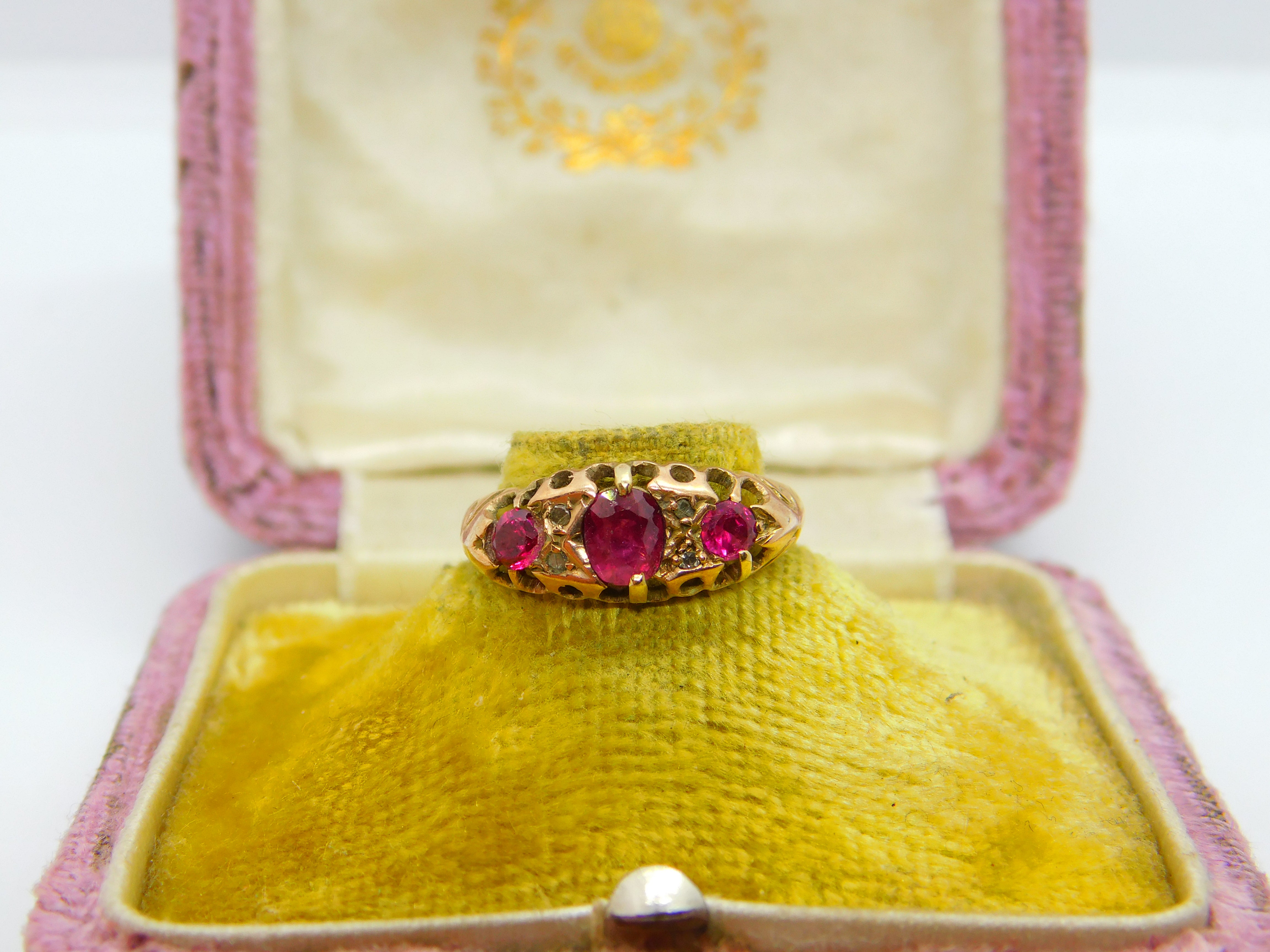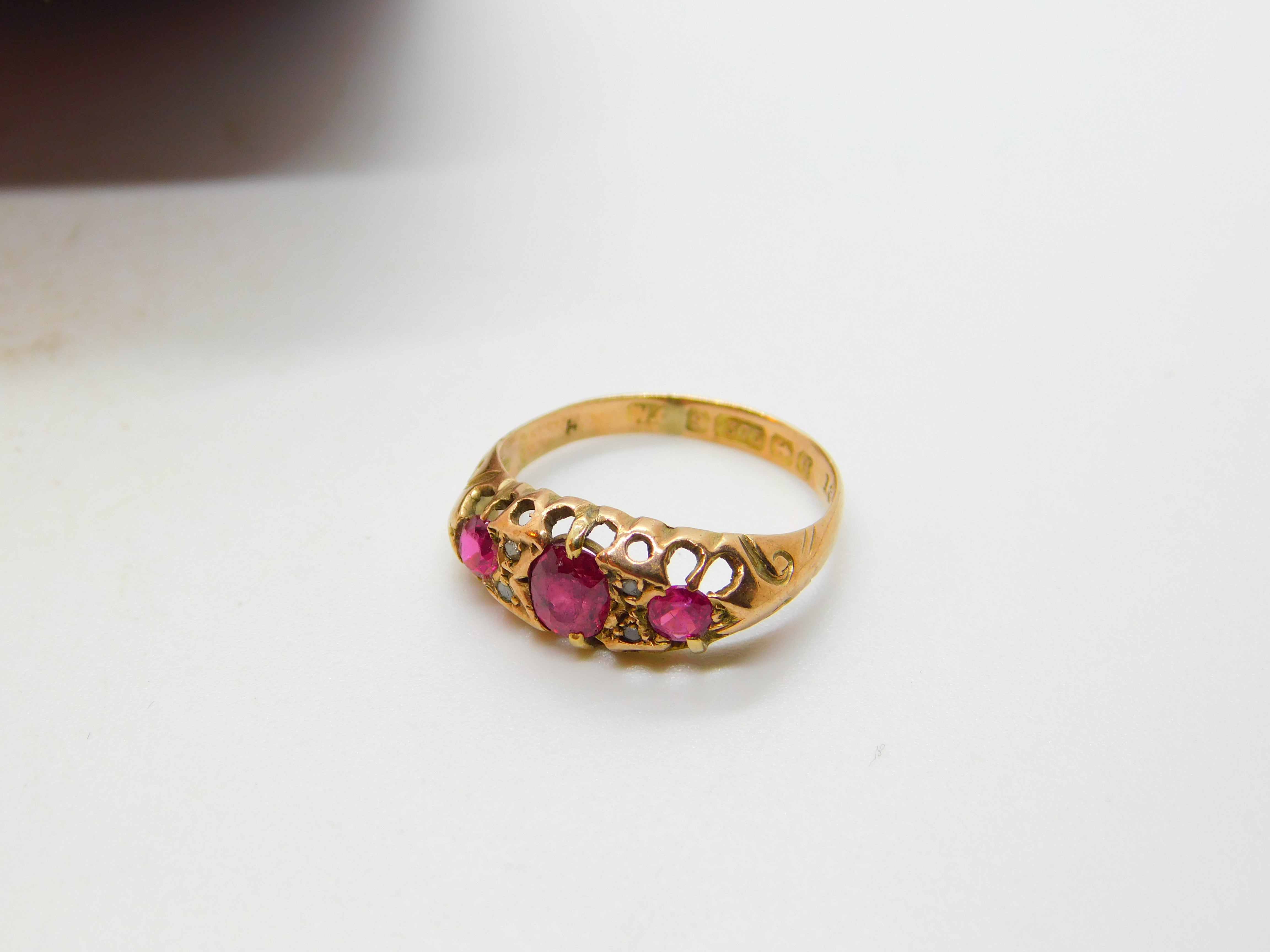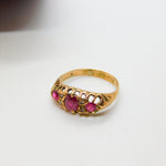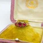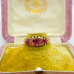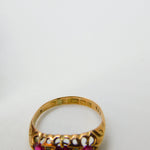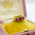 Victorian 9ct Gold, Ruby & Diamond Set Boat Ring 1890 Birmingham Antique