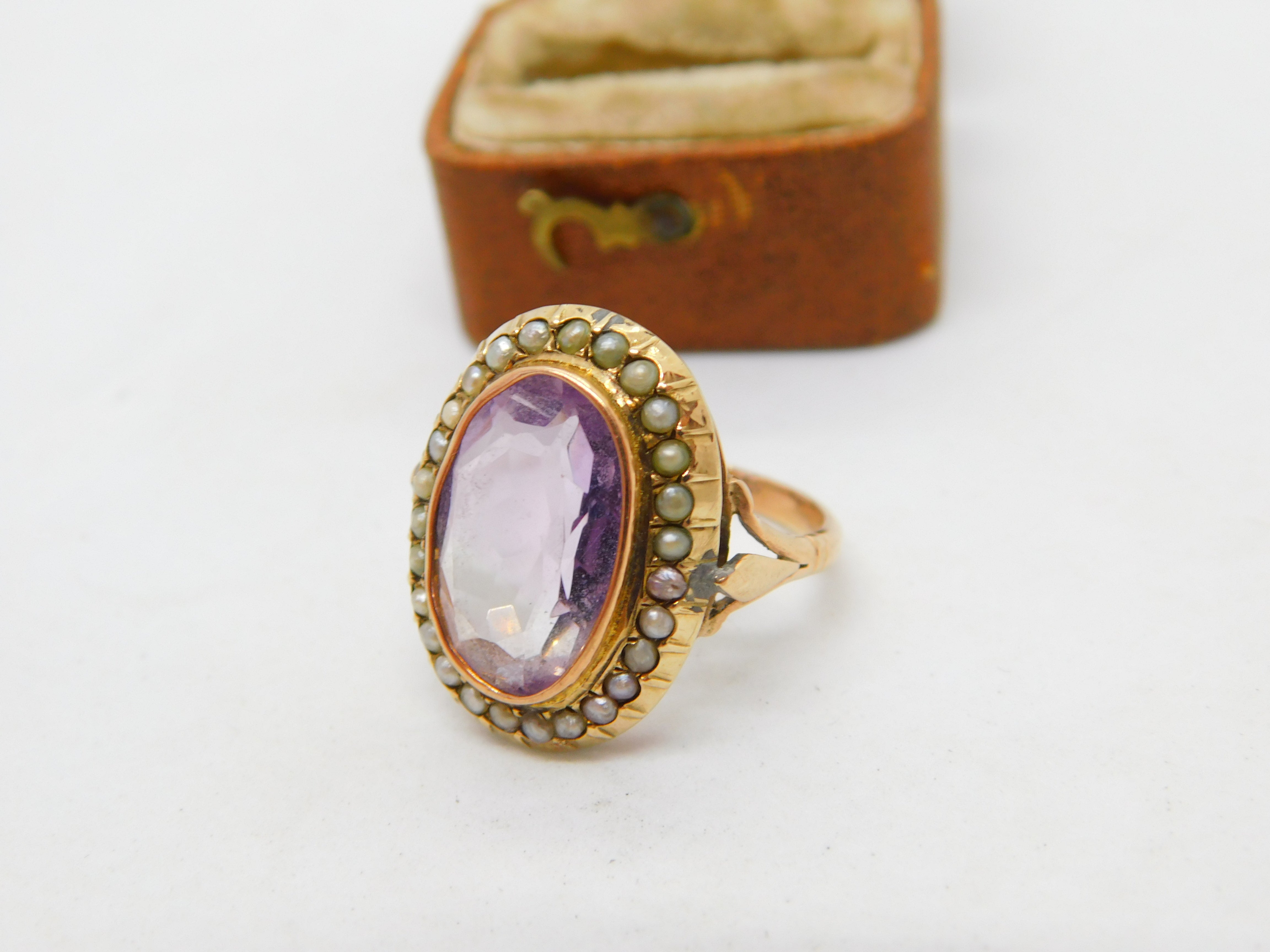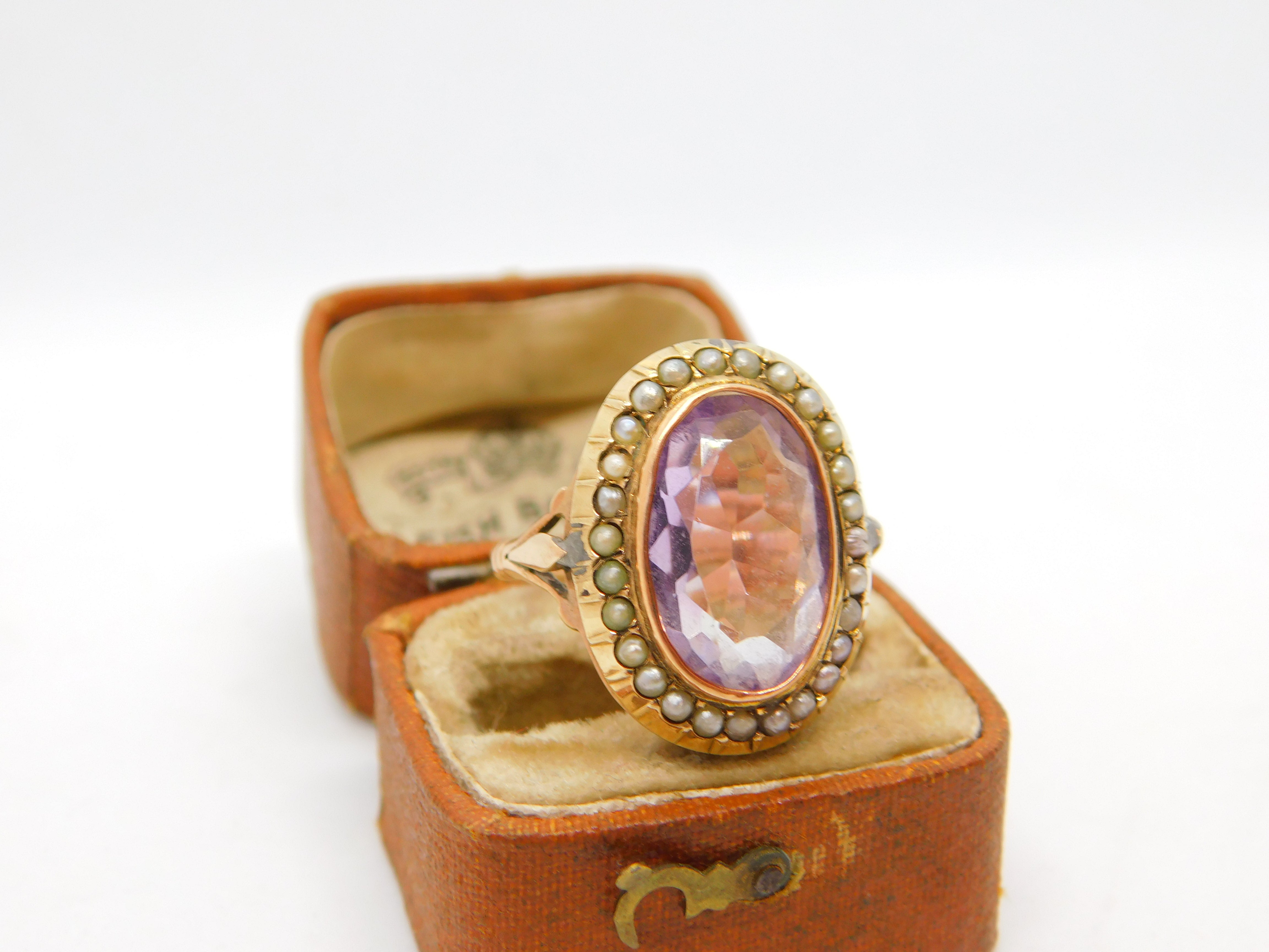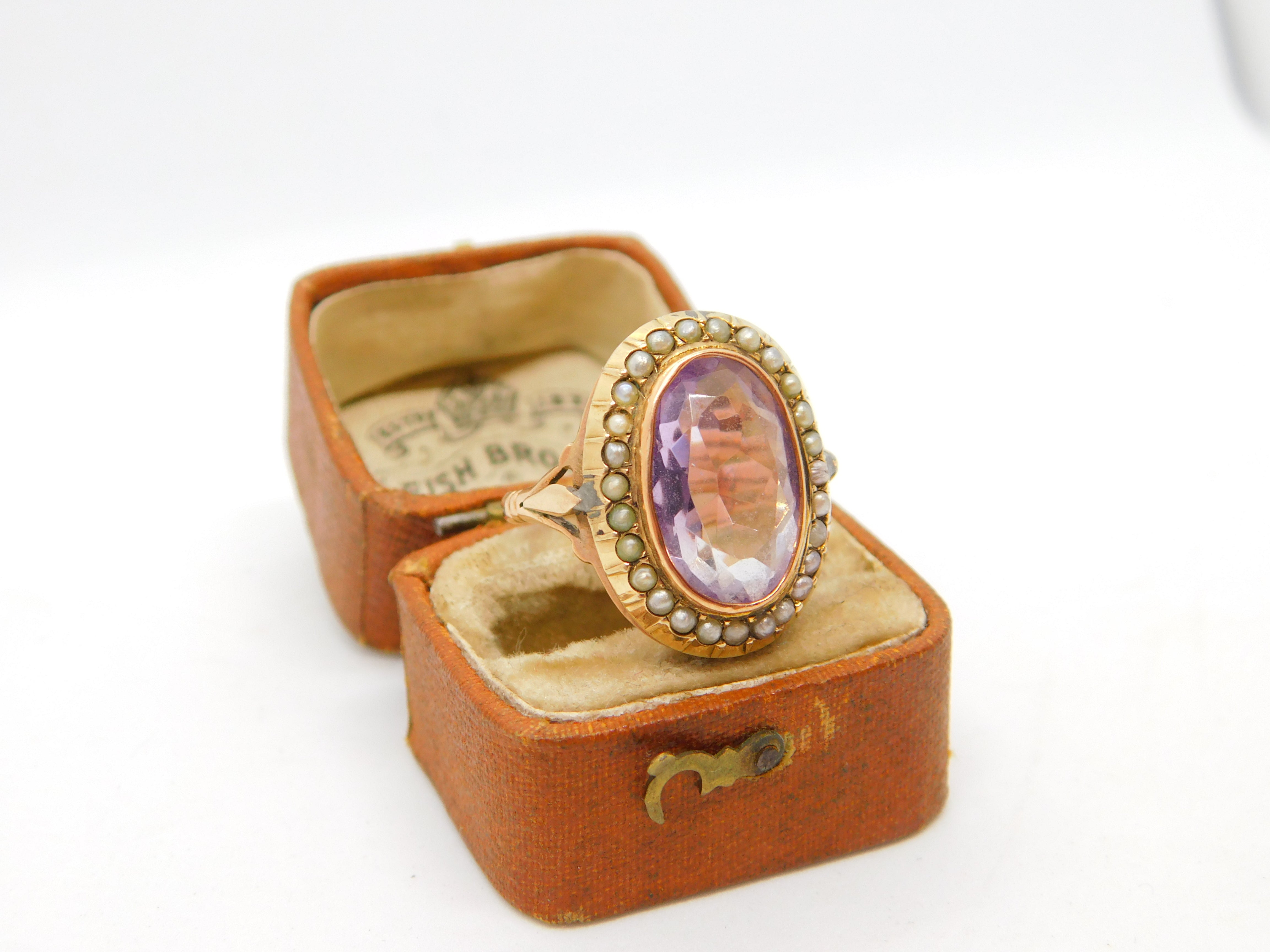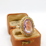 Victorian 9ct Gold, Seed Pearl & Amethyst Dress Ring Antique c1860 Size M UK