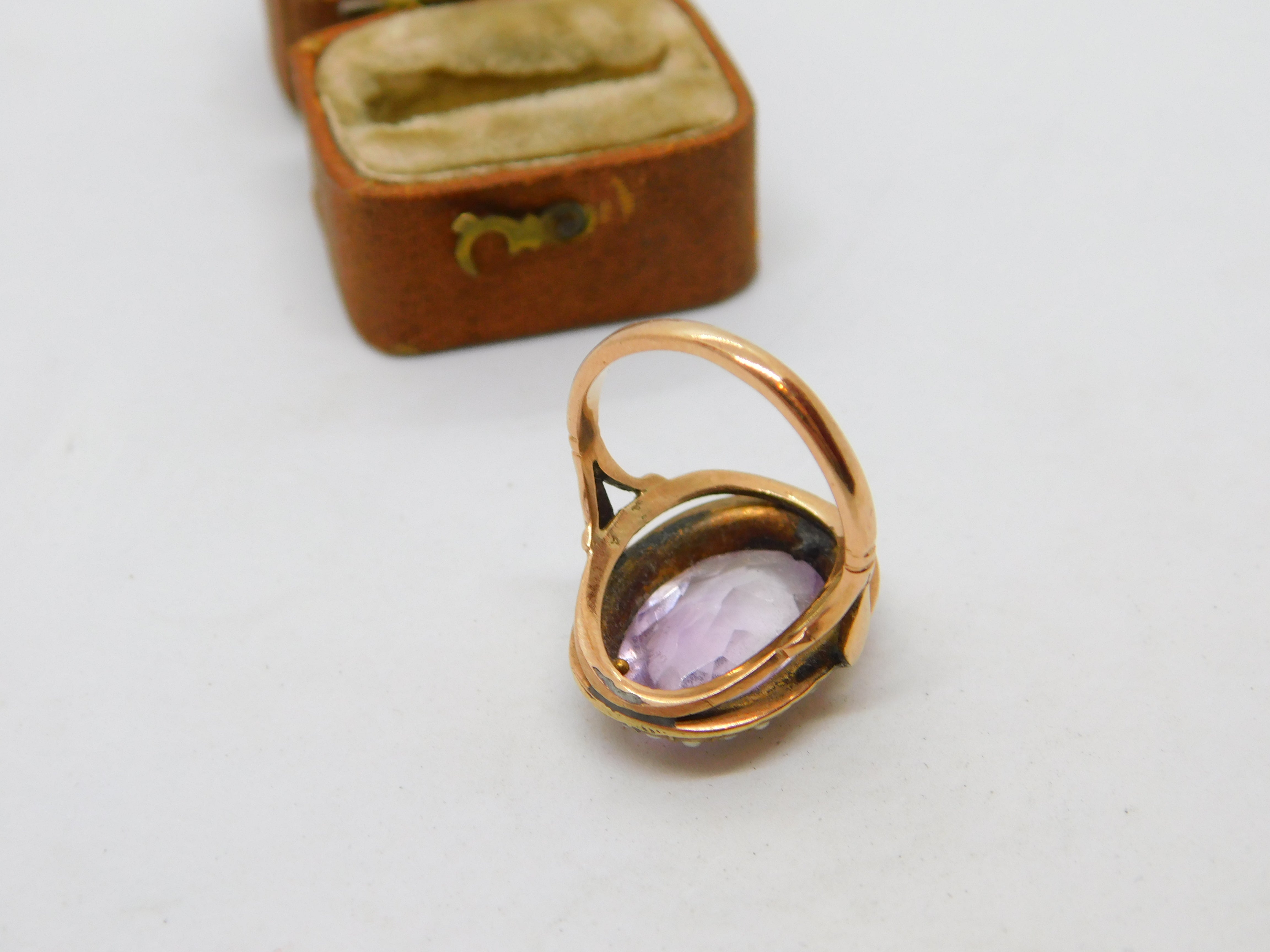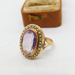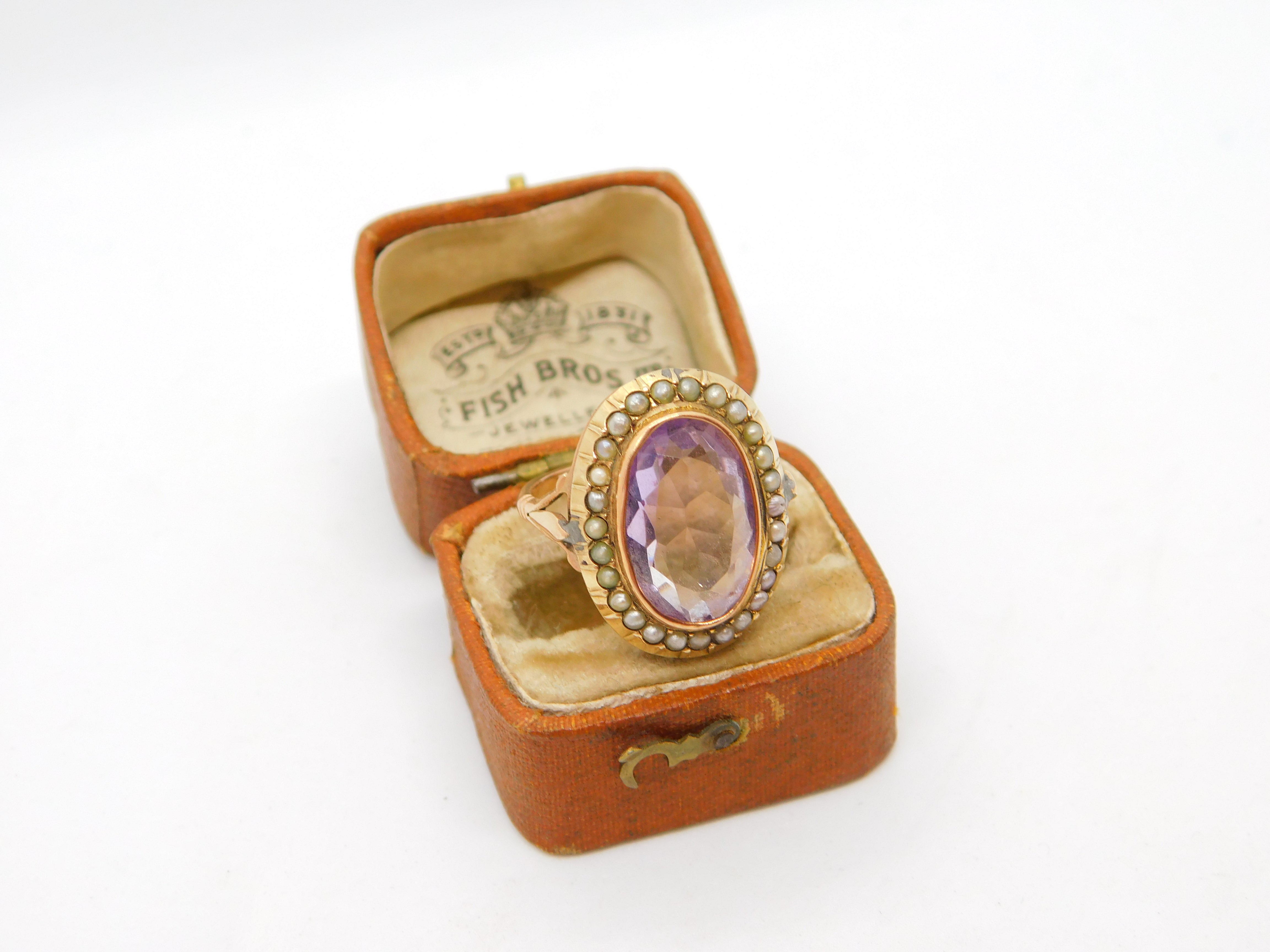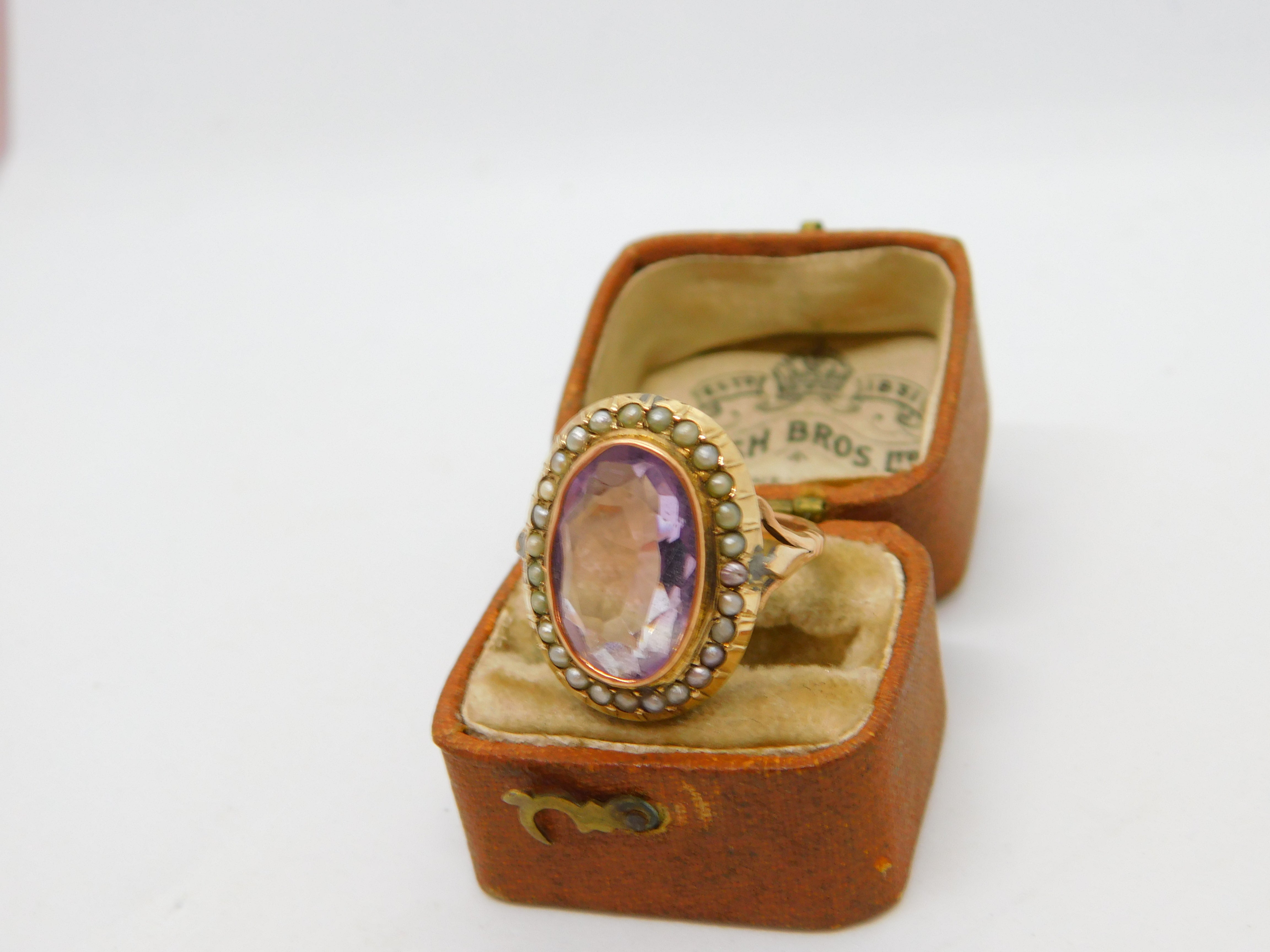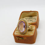 Victorian 9ct Gold, Seed Pearl & Amethyst Dress Ring Antique c1860 Size M UK