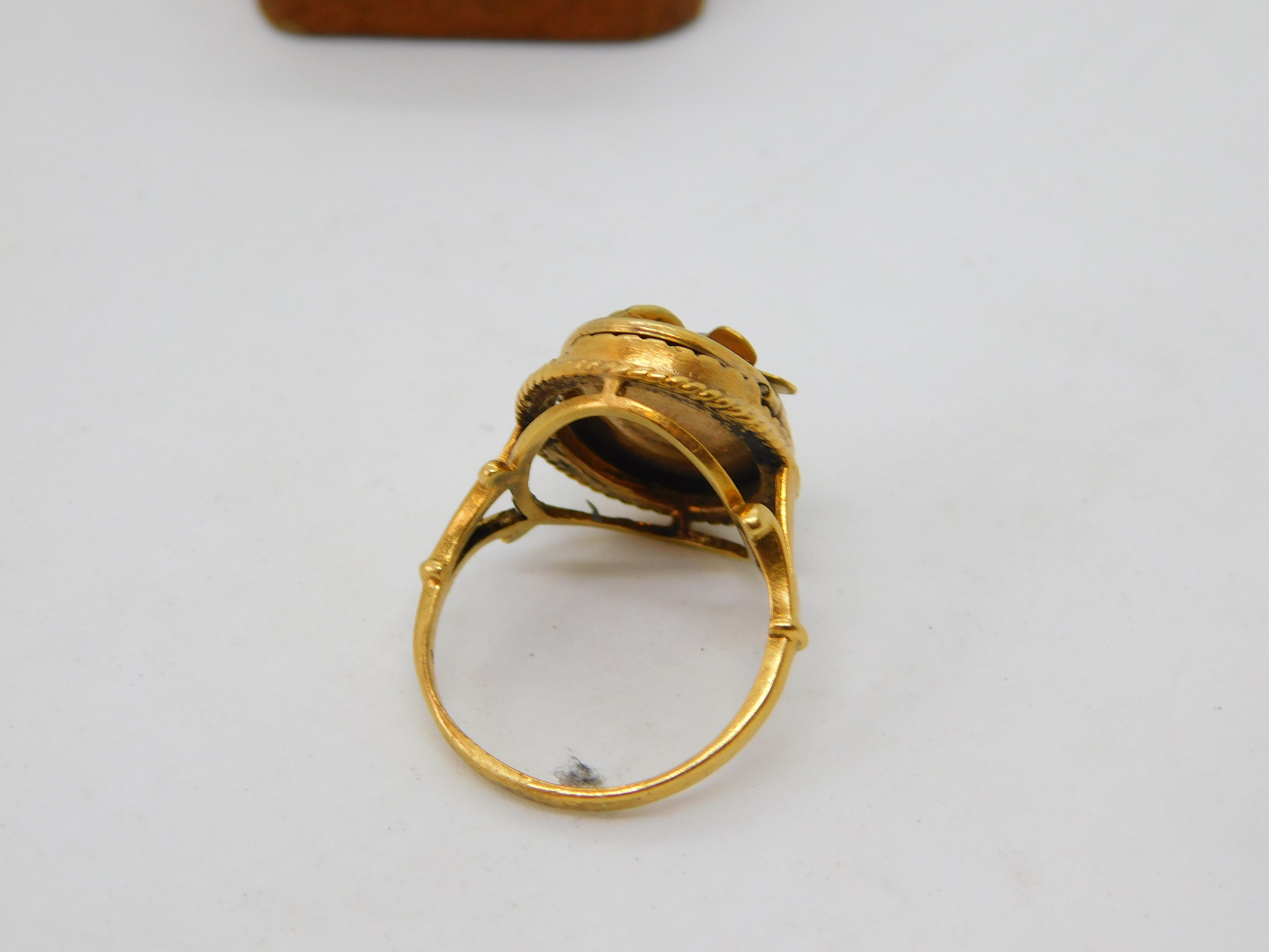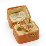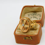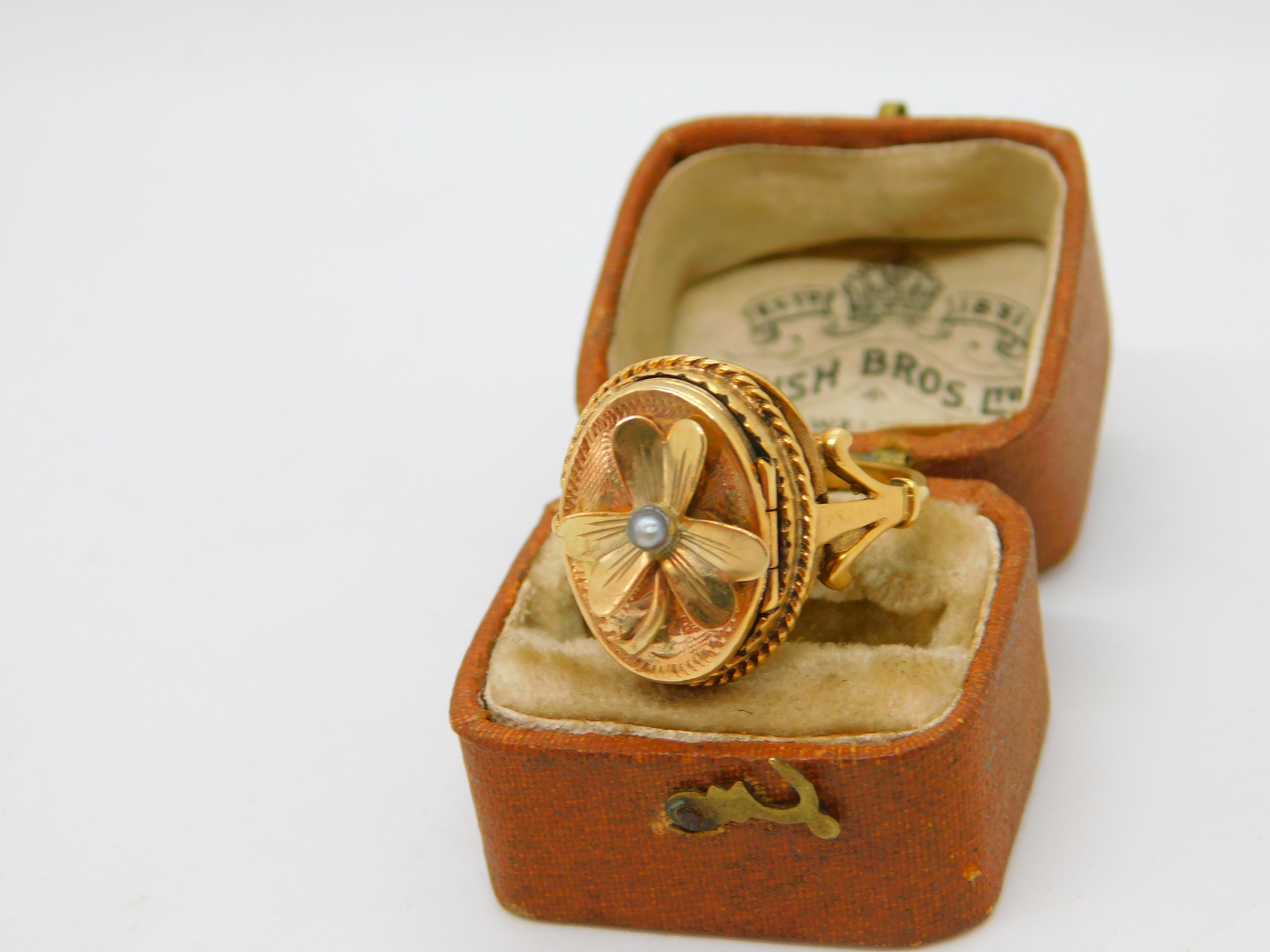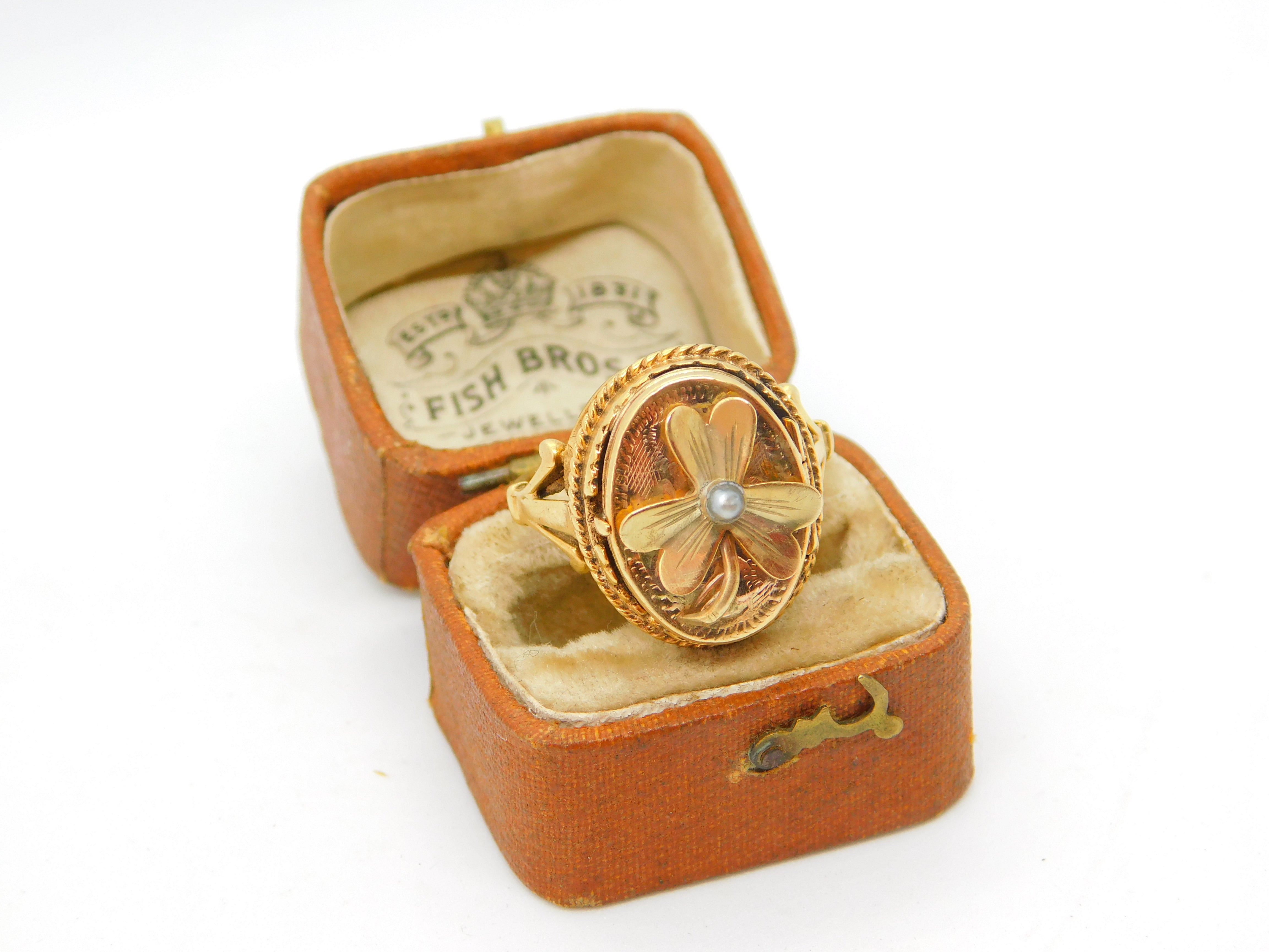Victorian 9ct Gold Seed Pearl Shamrock Locket or Poison Ring c1880 Antique