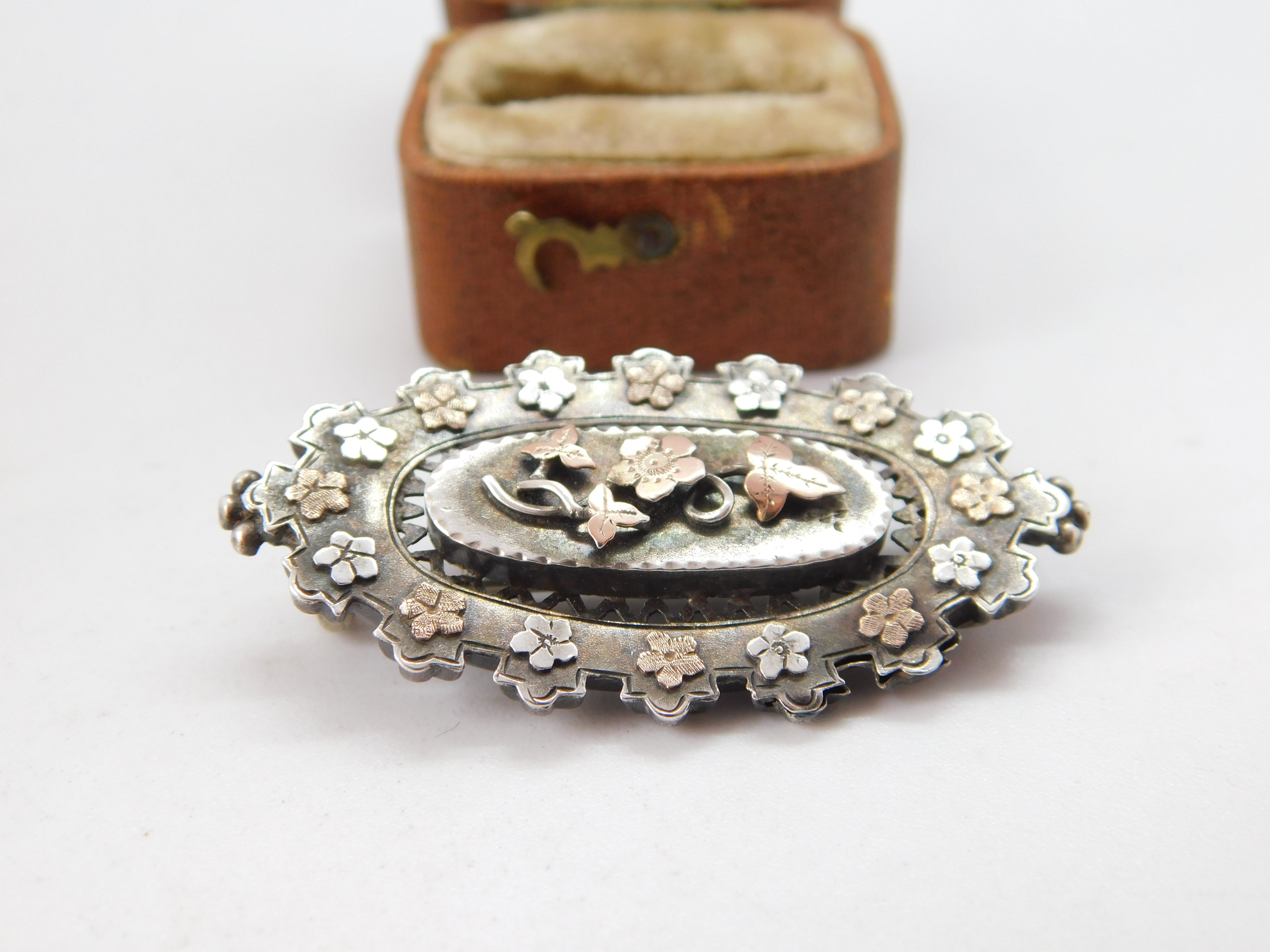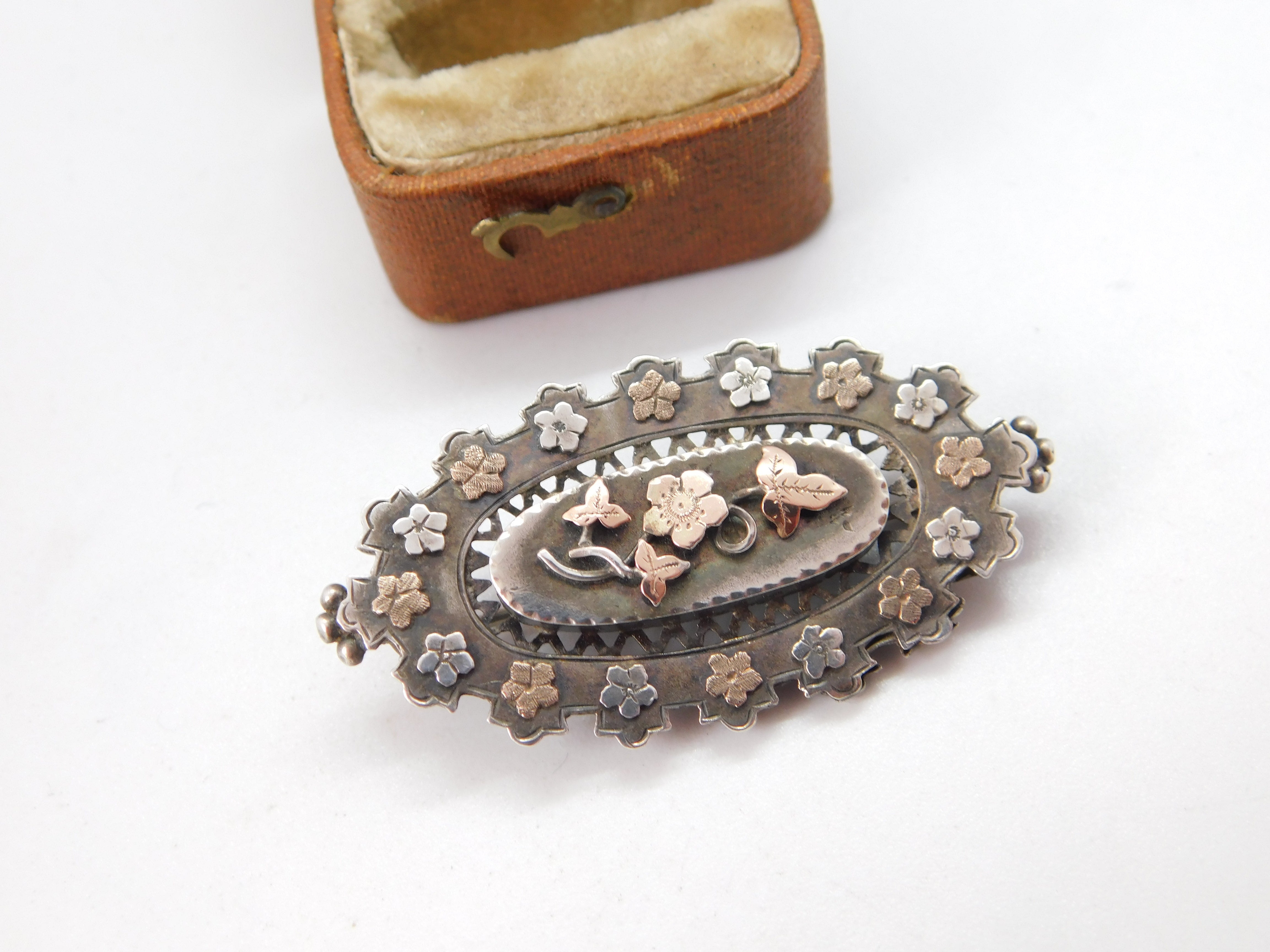 Victorian 9ct Gold & Sterling Silver Floral Sweetheart Brooch 1892 Birmingham