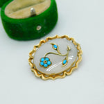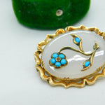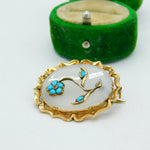 Victorian 9ct Gold, Turquoise, Seed Pearl & Chalcedony Floral Brooch Antique c1860