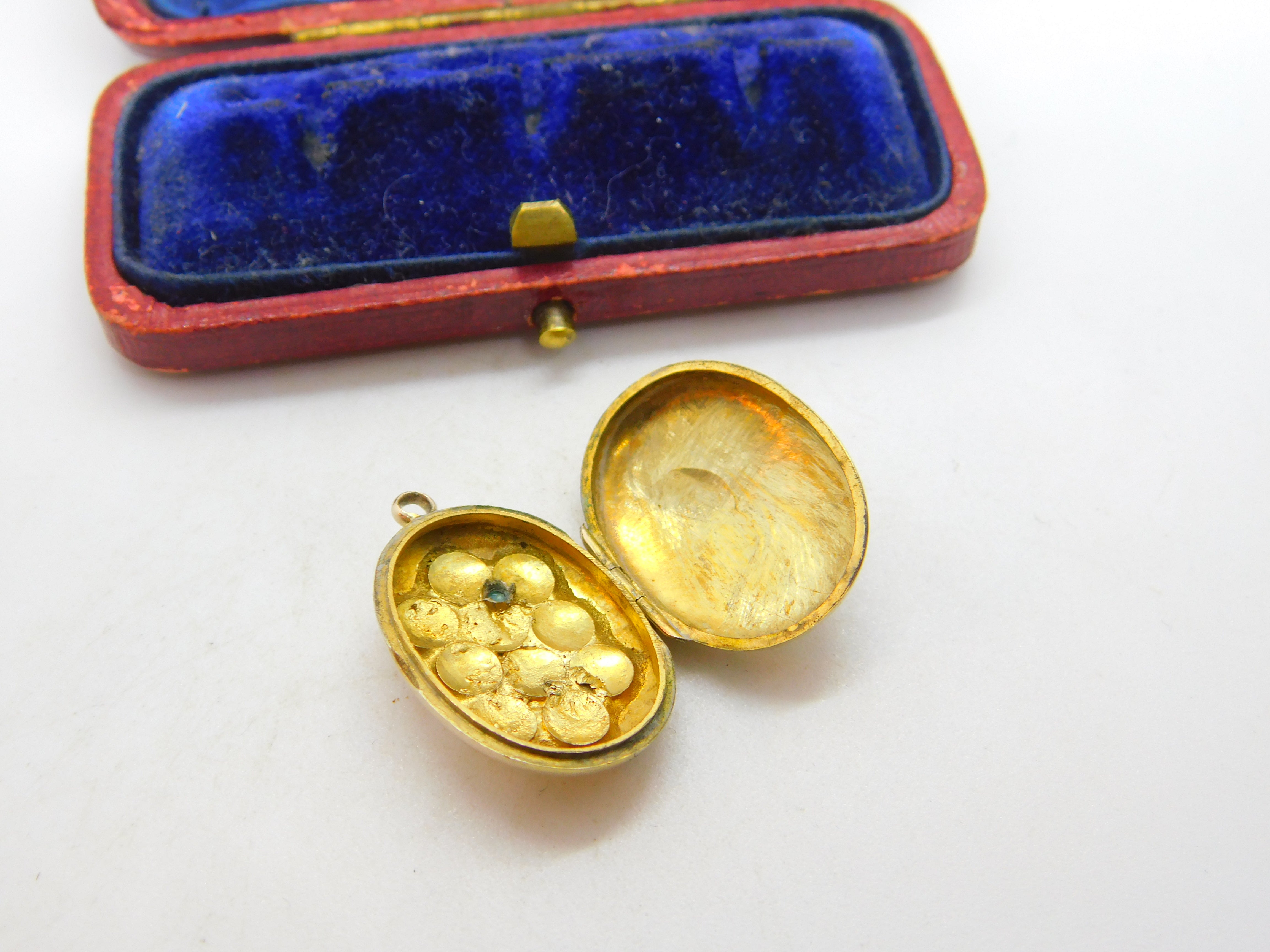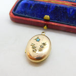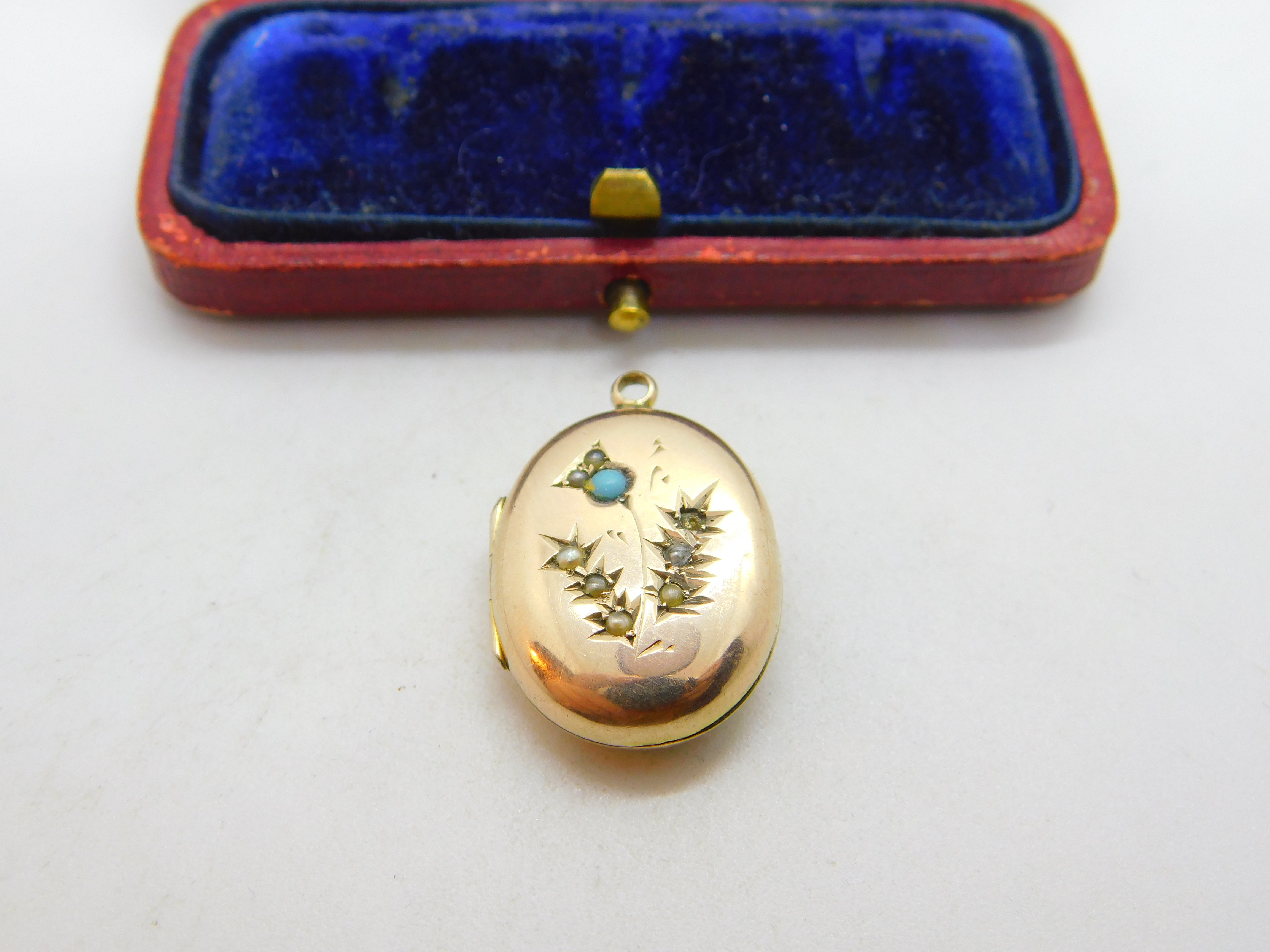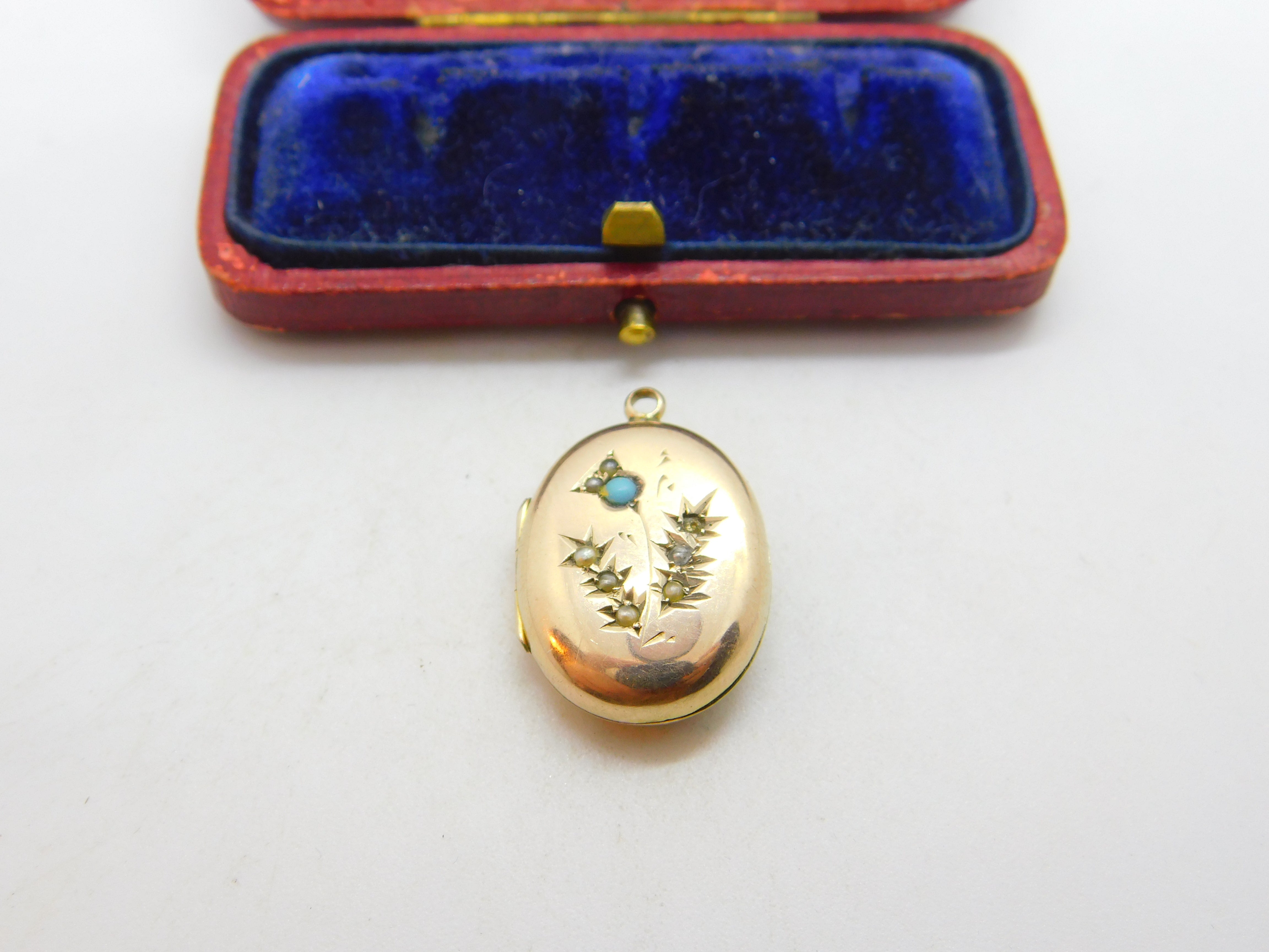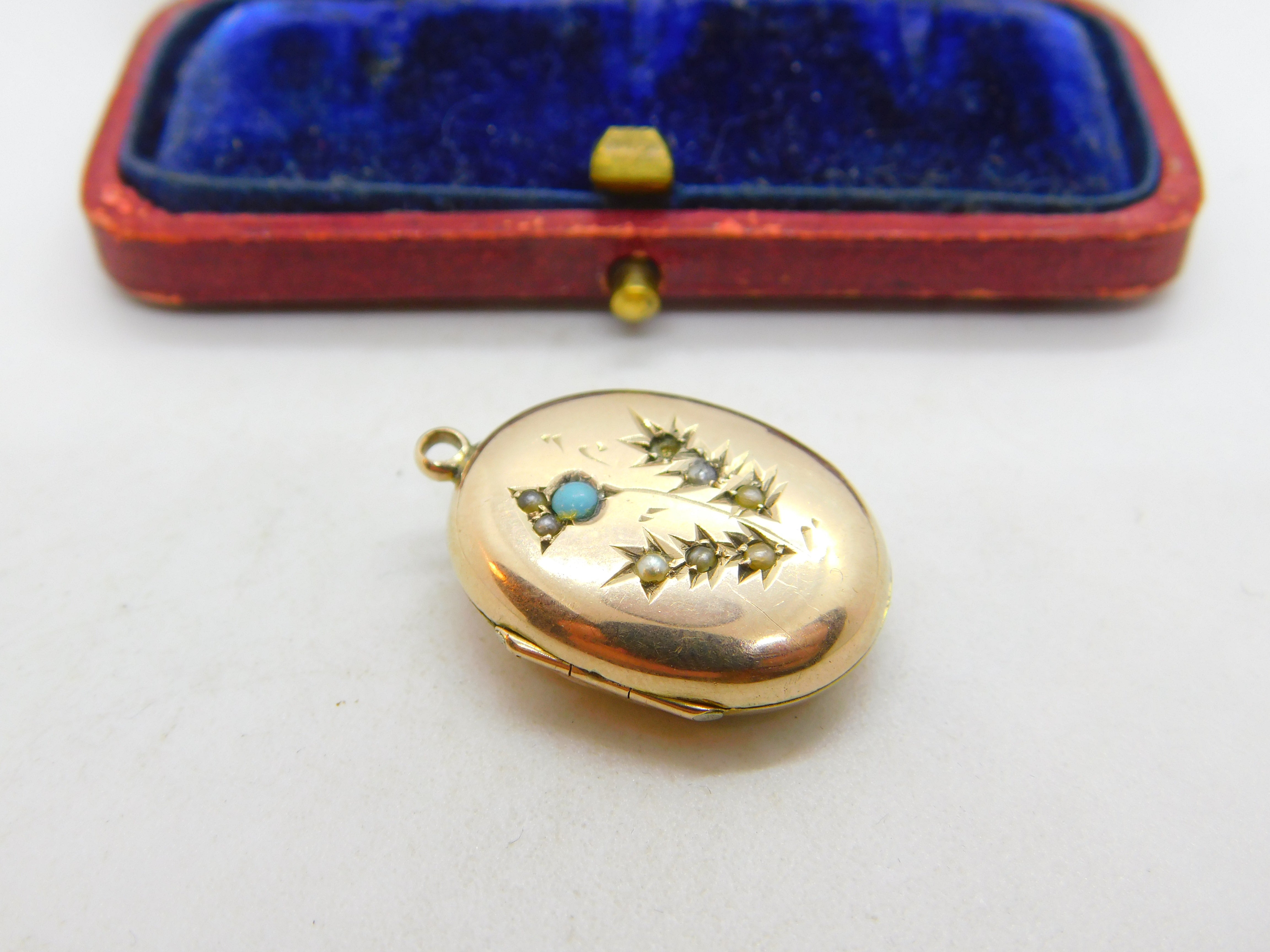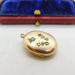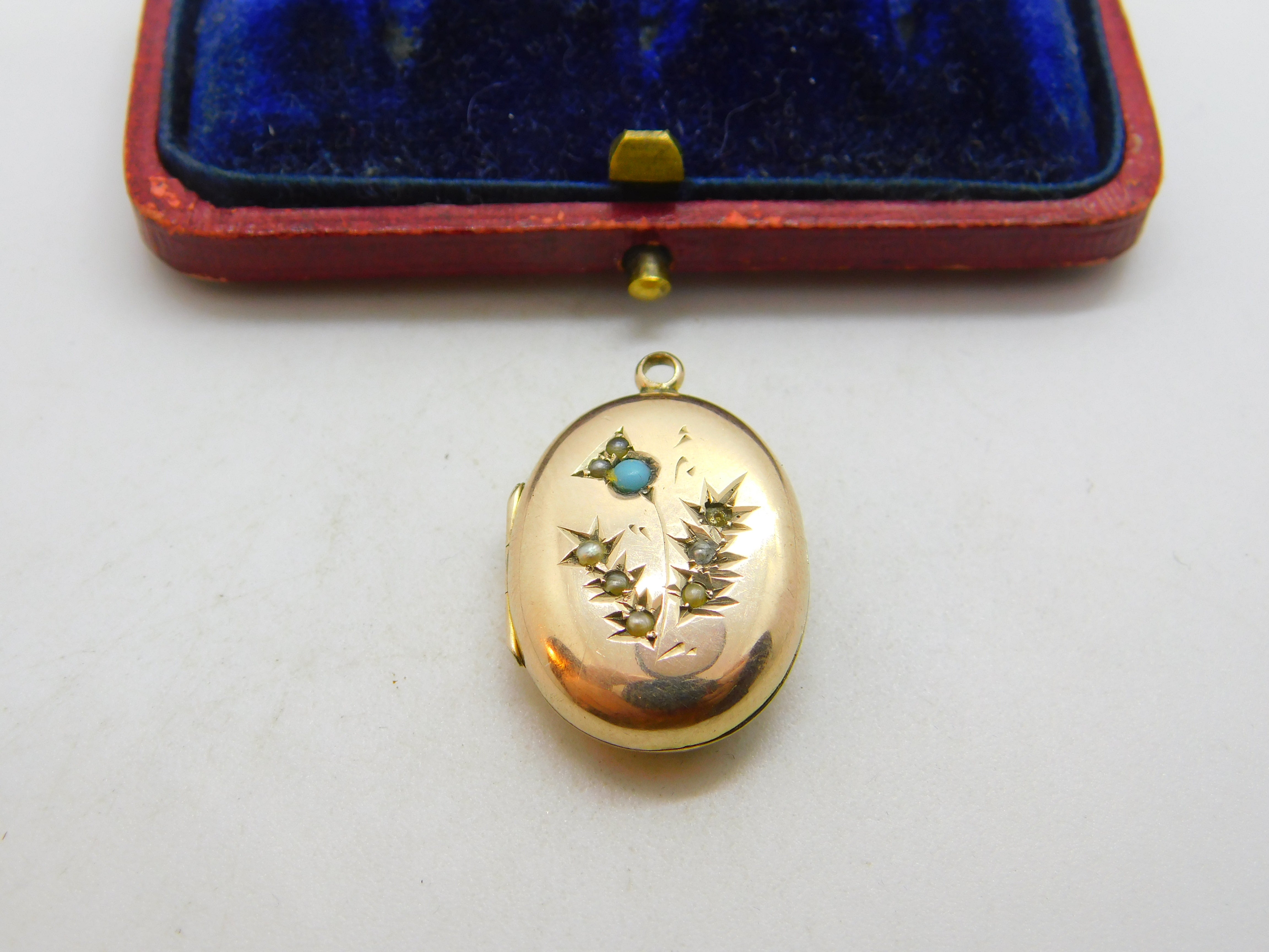 Victorian 9ct Rose Gold Back & Front, Seed Pearl & Turquoise Locket c1860