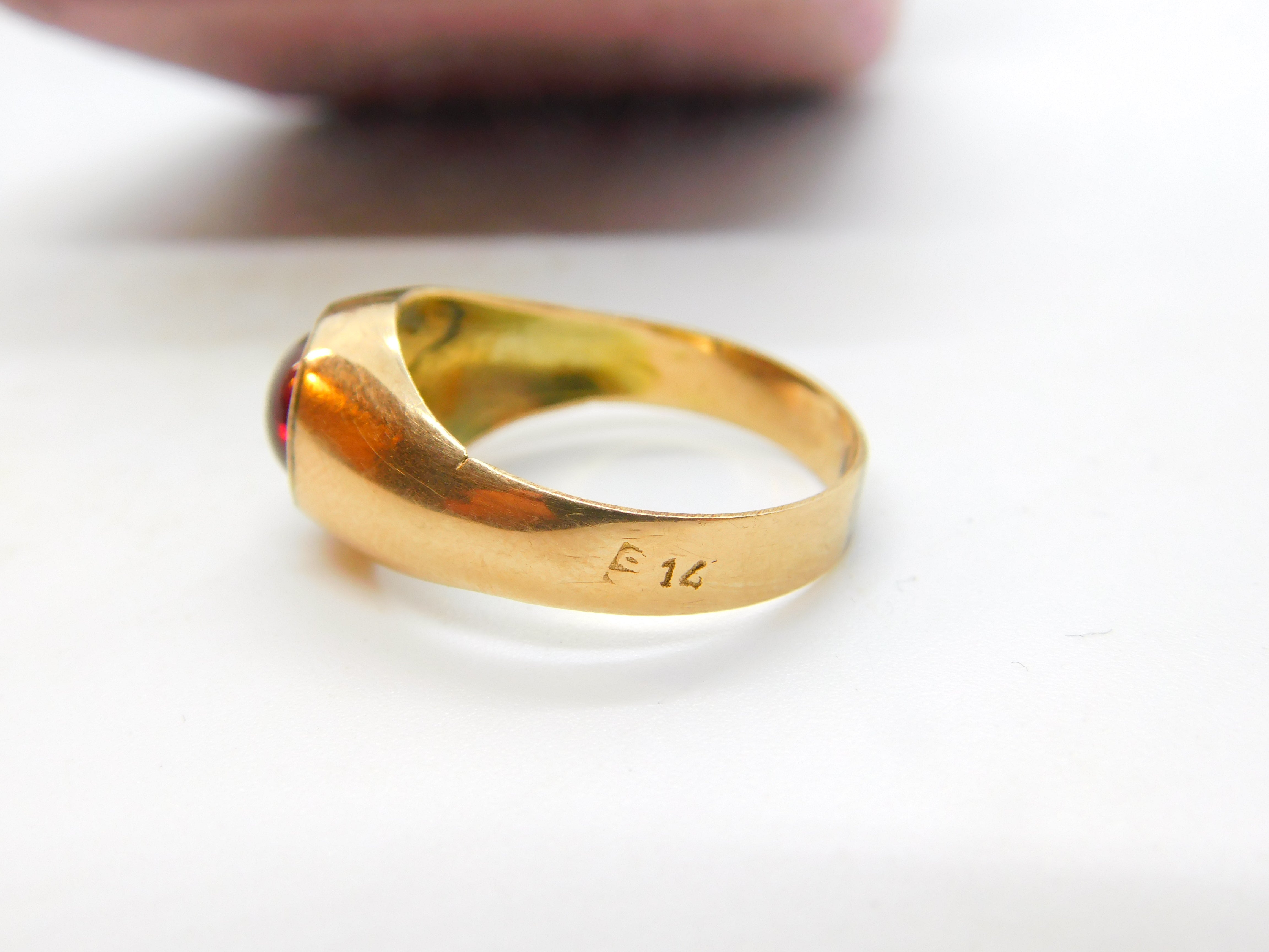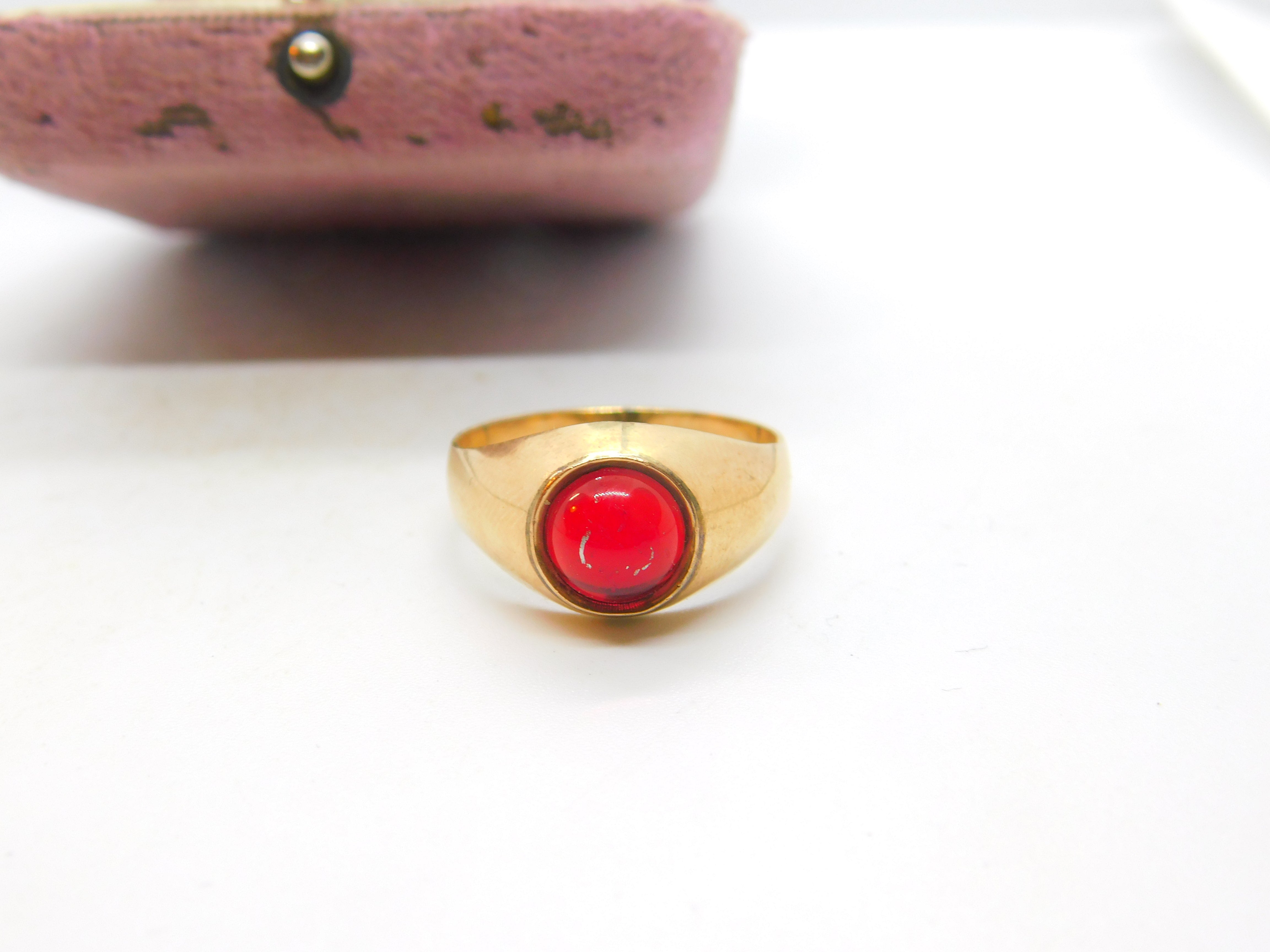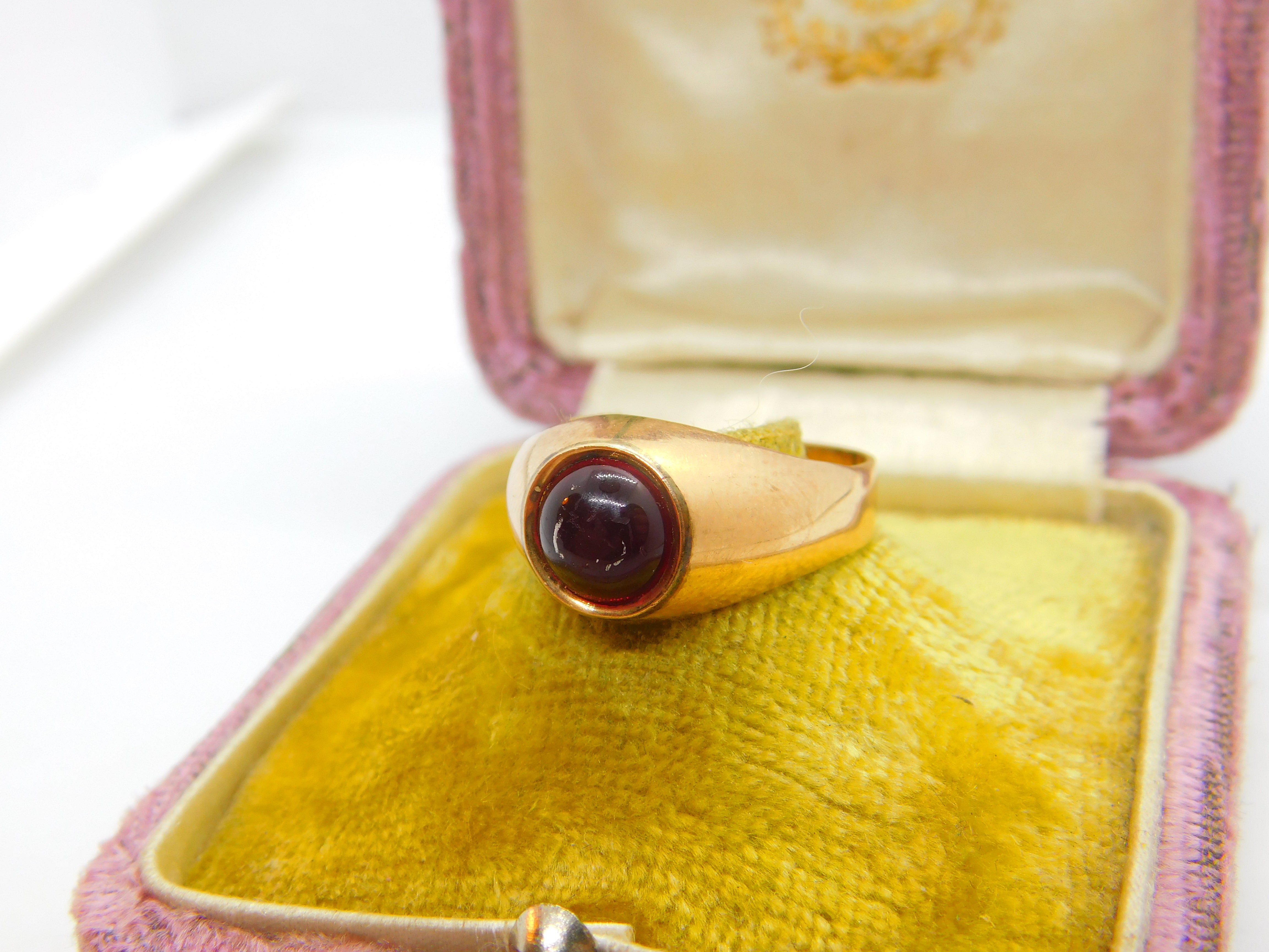 Details: A fantastic and wonderfully designed antique Victorian 9ct rose gold signet ring set with cabochon cut central garnet hallmarked to the outer band 14 and also 9 c1880. Please note the central stone has scratches. This is a wonderful item that would make a perfect gift or addition to any collection. The BOX pictured is for PRESENTATION ONLY and is NOT included in the listings but used to frame the pictures unless specifically stated otherwise.