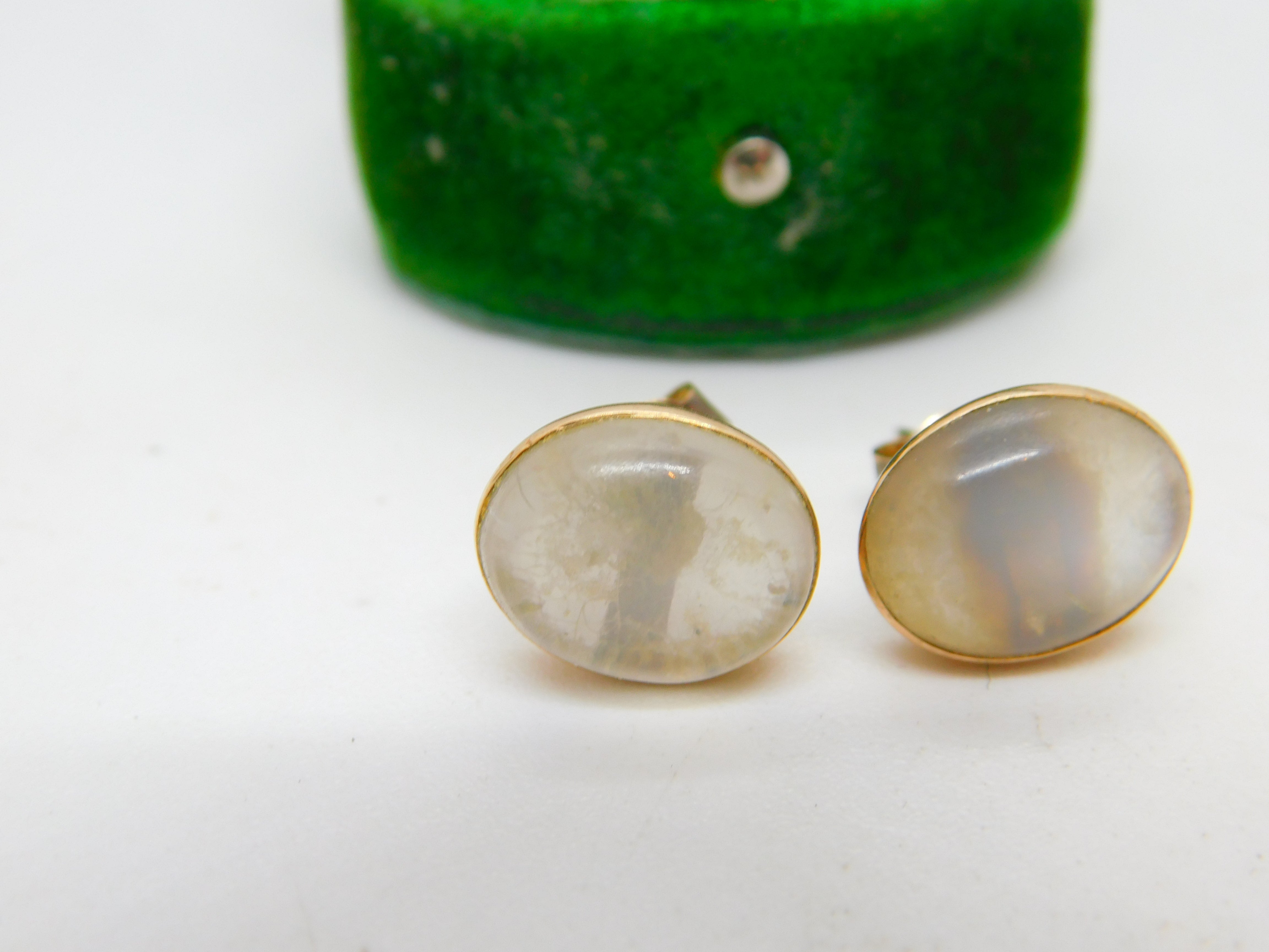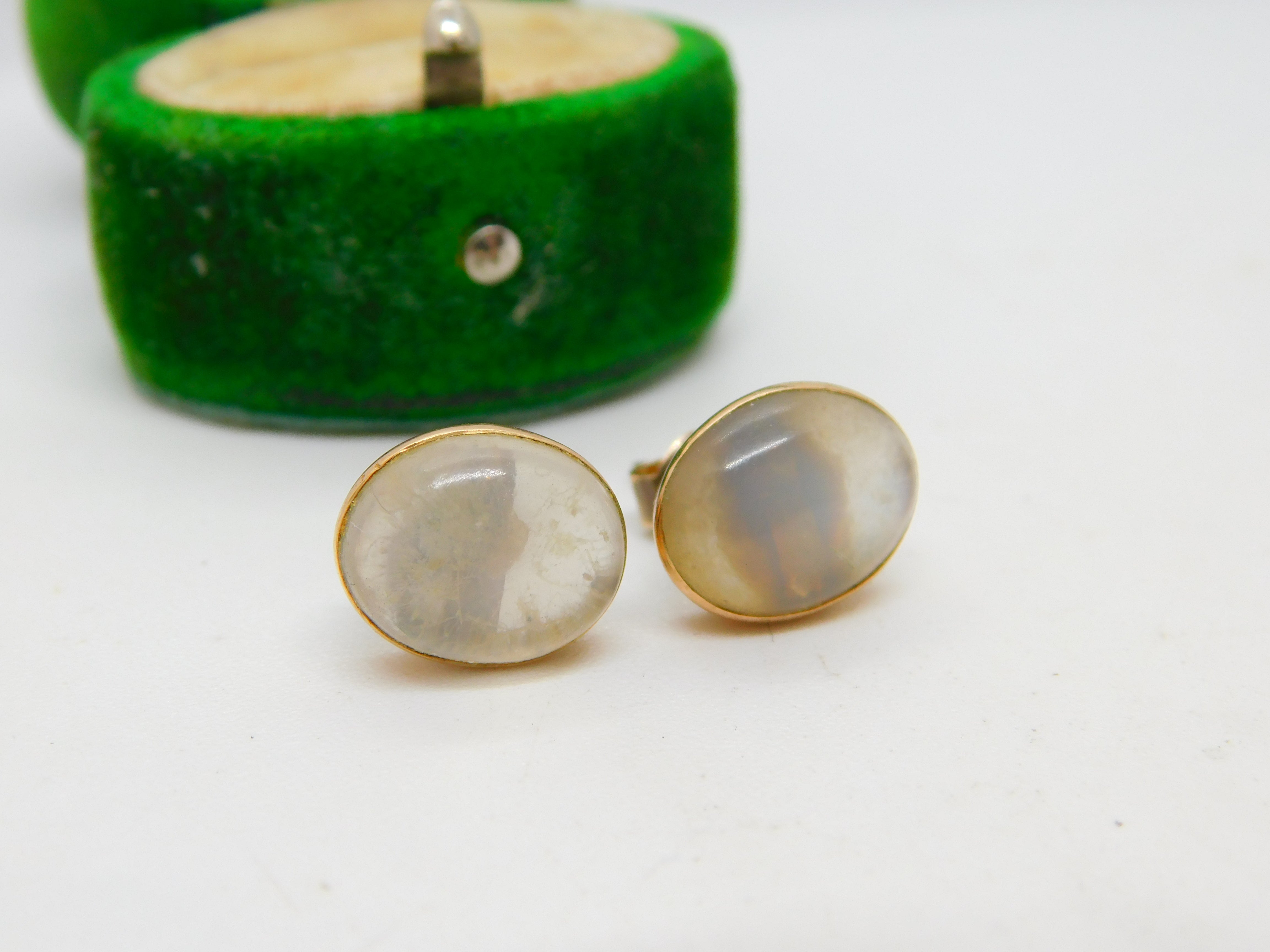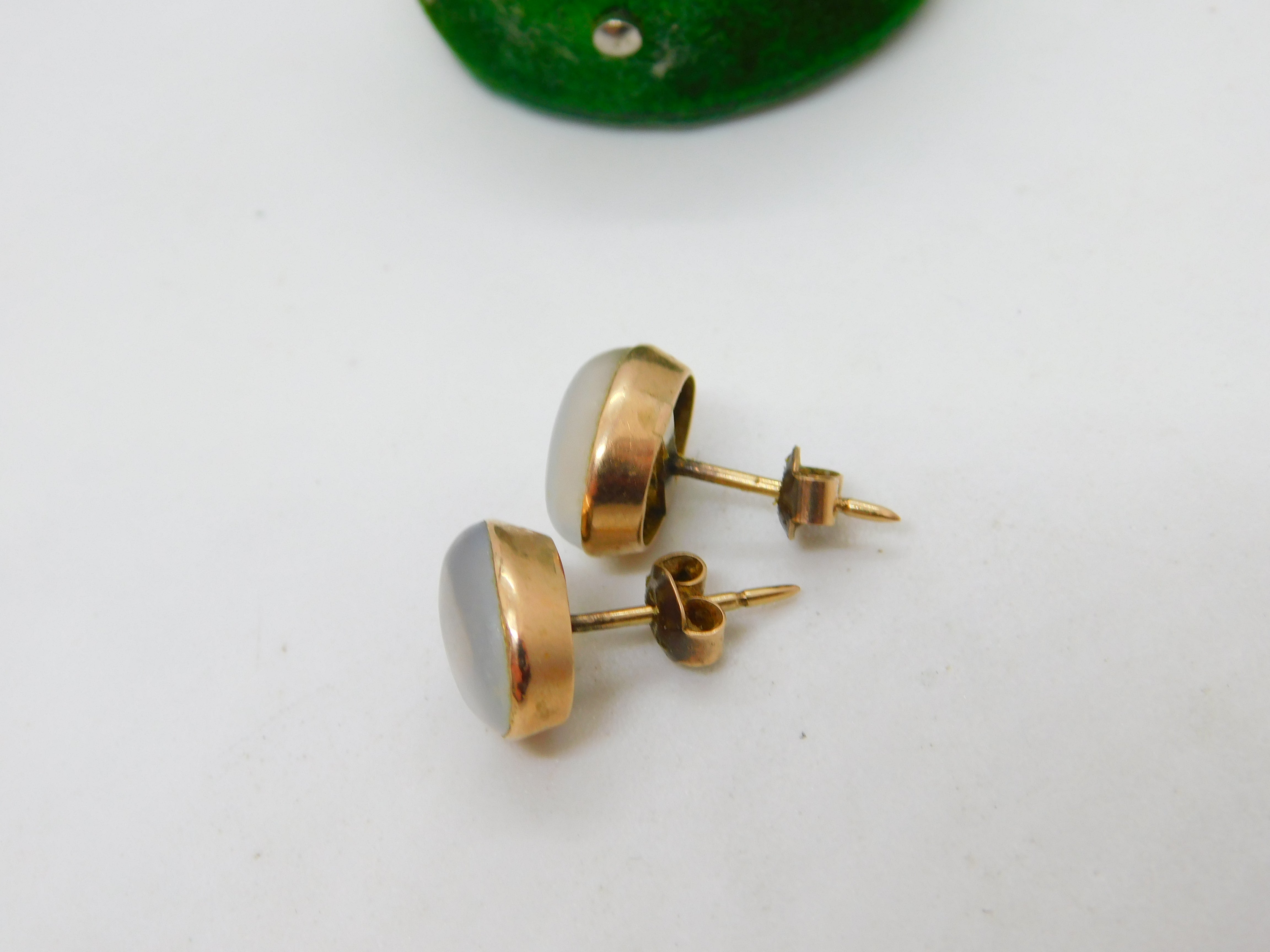 Victorian 9ct Rose Gold & Cabochon Moonstone Stud Earrings Antique c1880