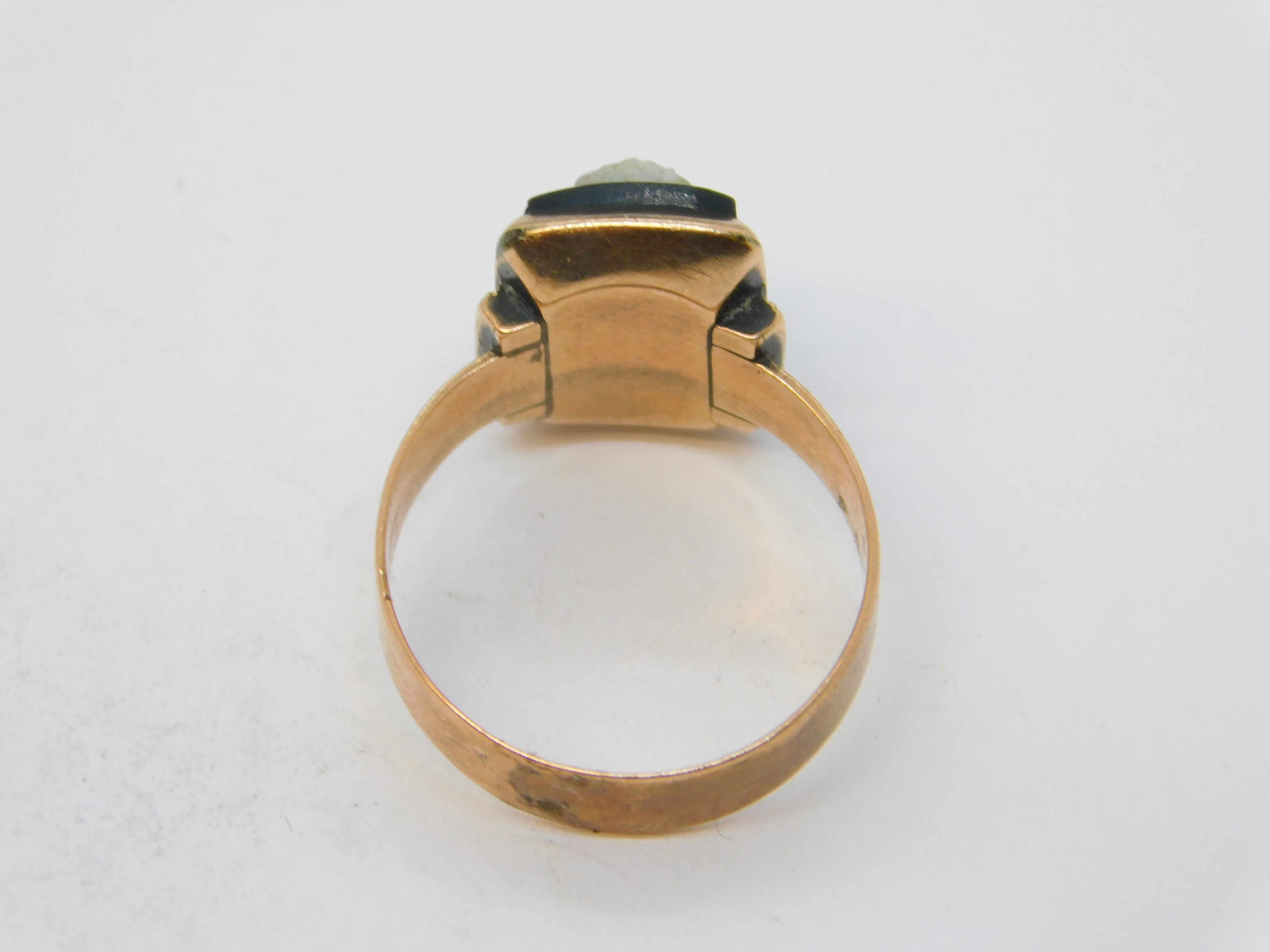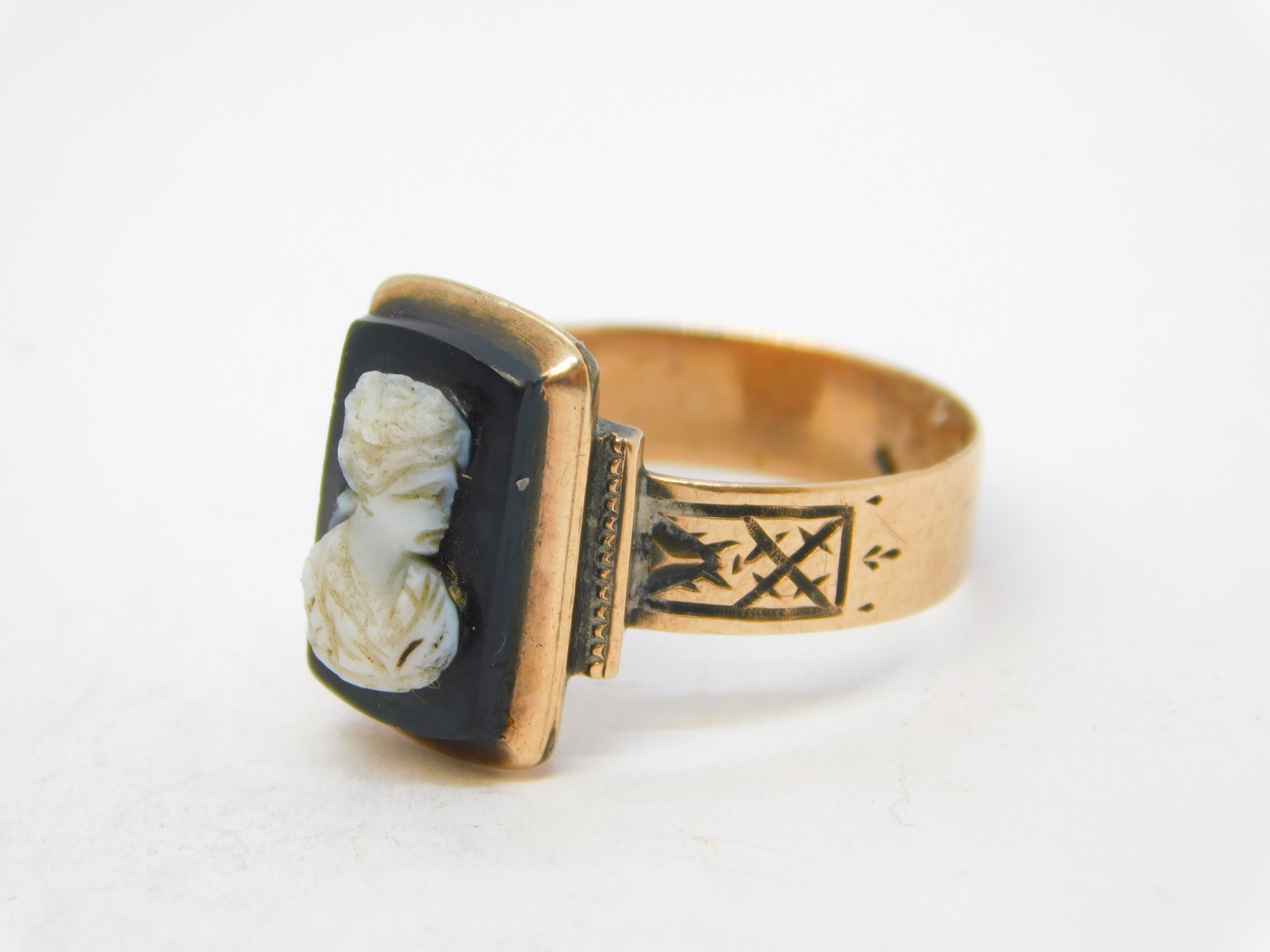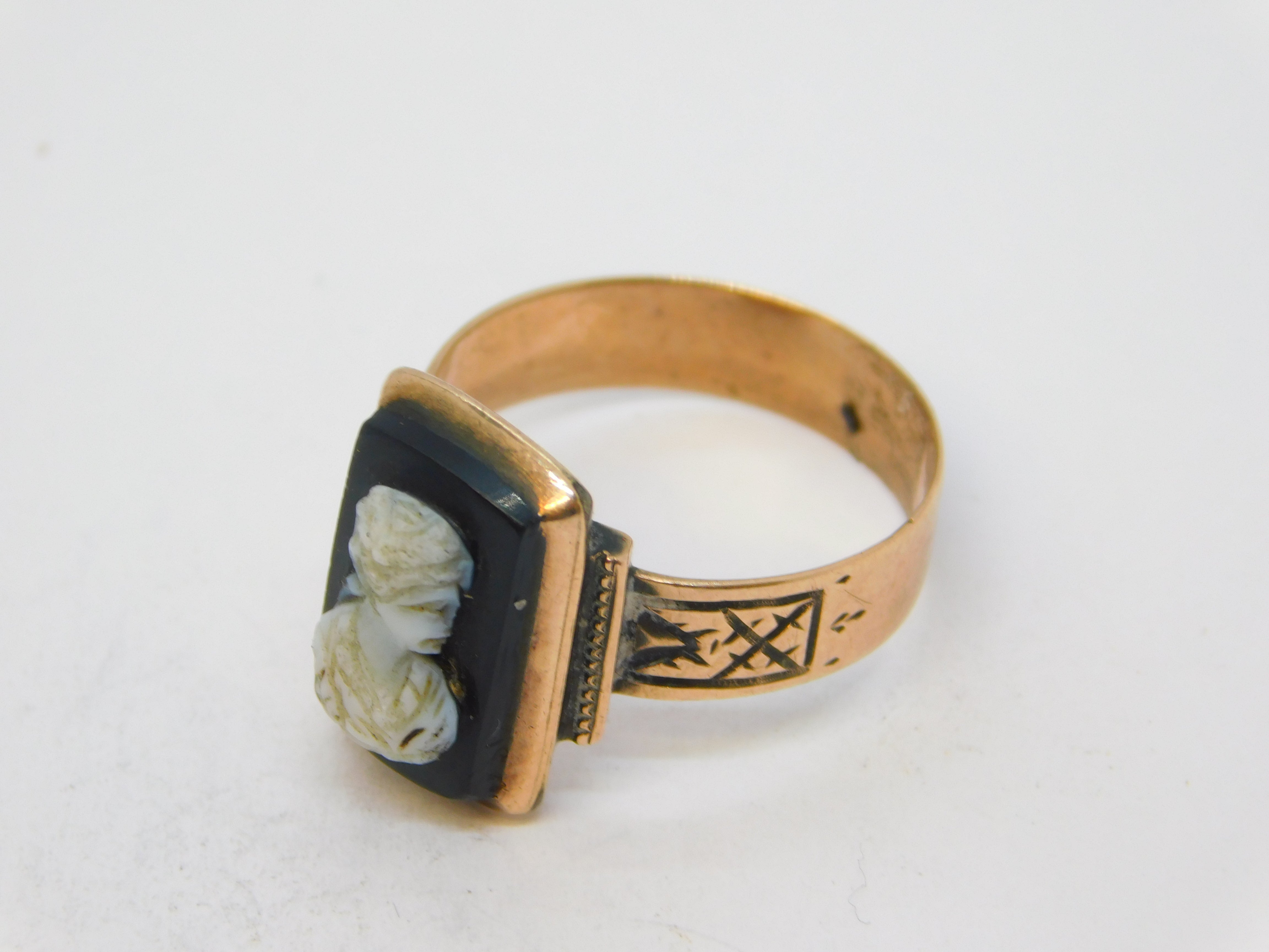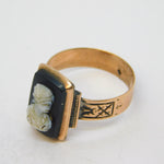 Victorian 9ct Rose Gold Carved Hardstone Cameo Mourning Ring Antique c1850s
