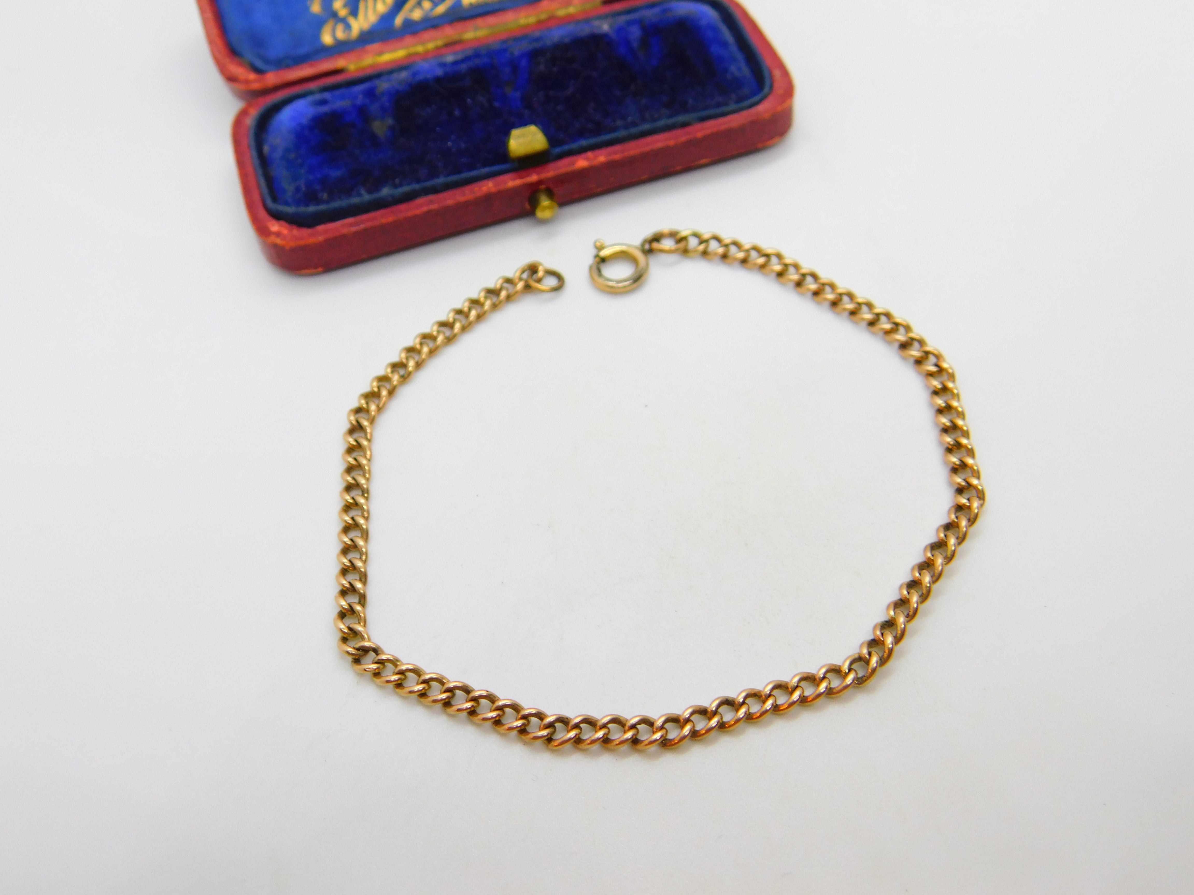Victorian 9ct Rose Gold Curb Link Chain Bracelet Antique c1890 7.5" Length