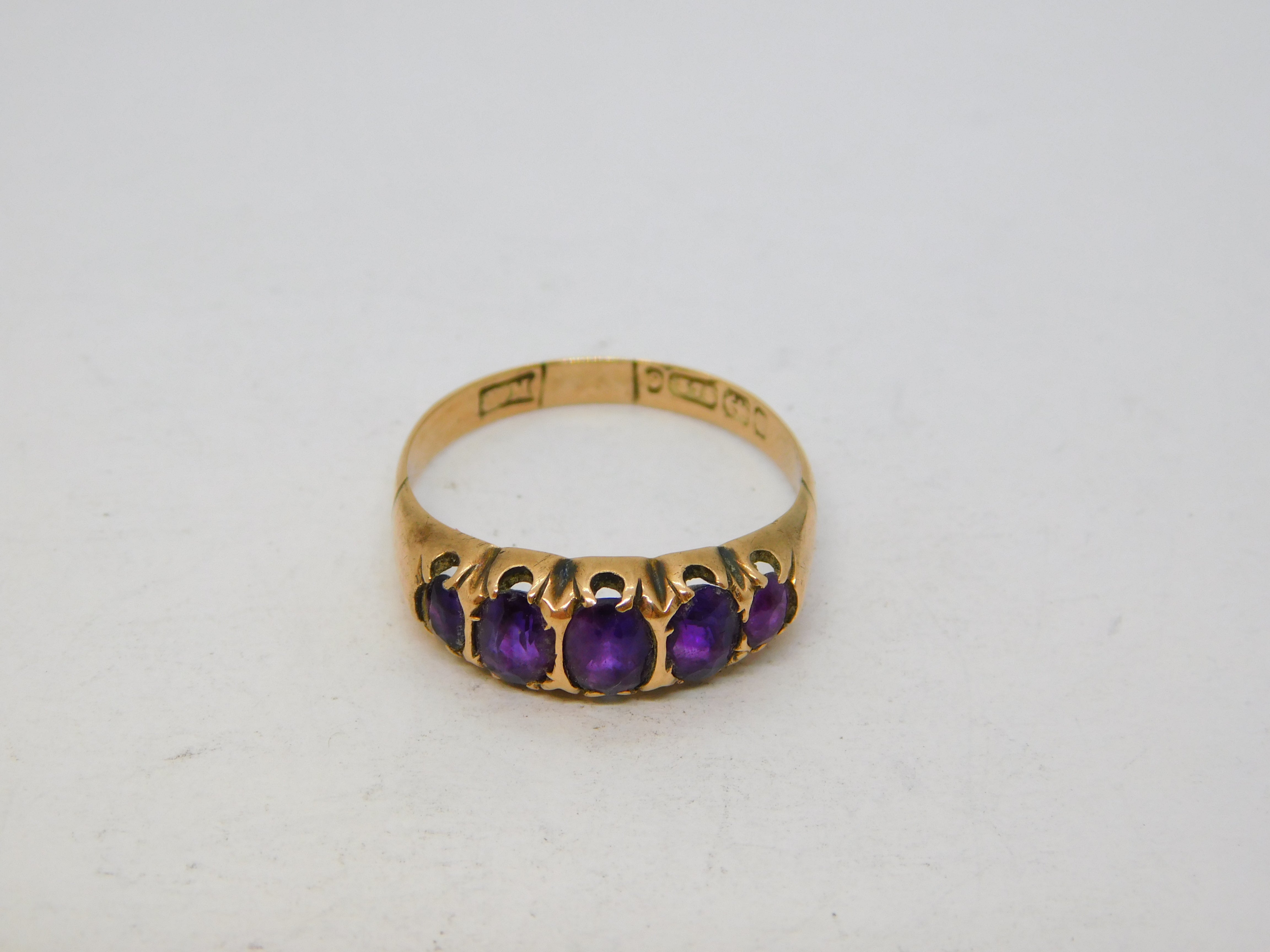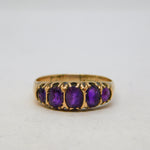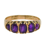 Victorian 9ct Rose Gold Five-Stone Amethyst Boat Ring Antique 1899 Birmingham