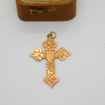 Victorian 9ct Rose Gold Floral Pattern Cross Pendant Antique c1880