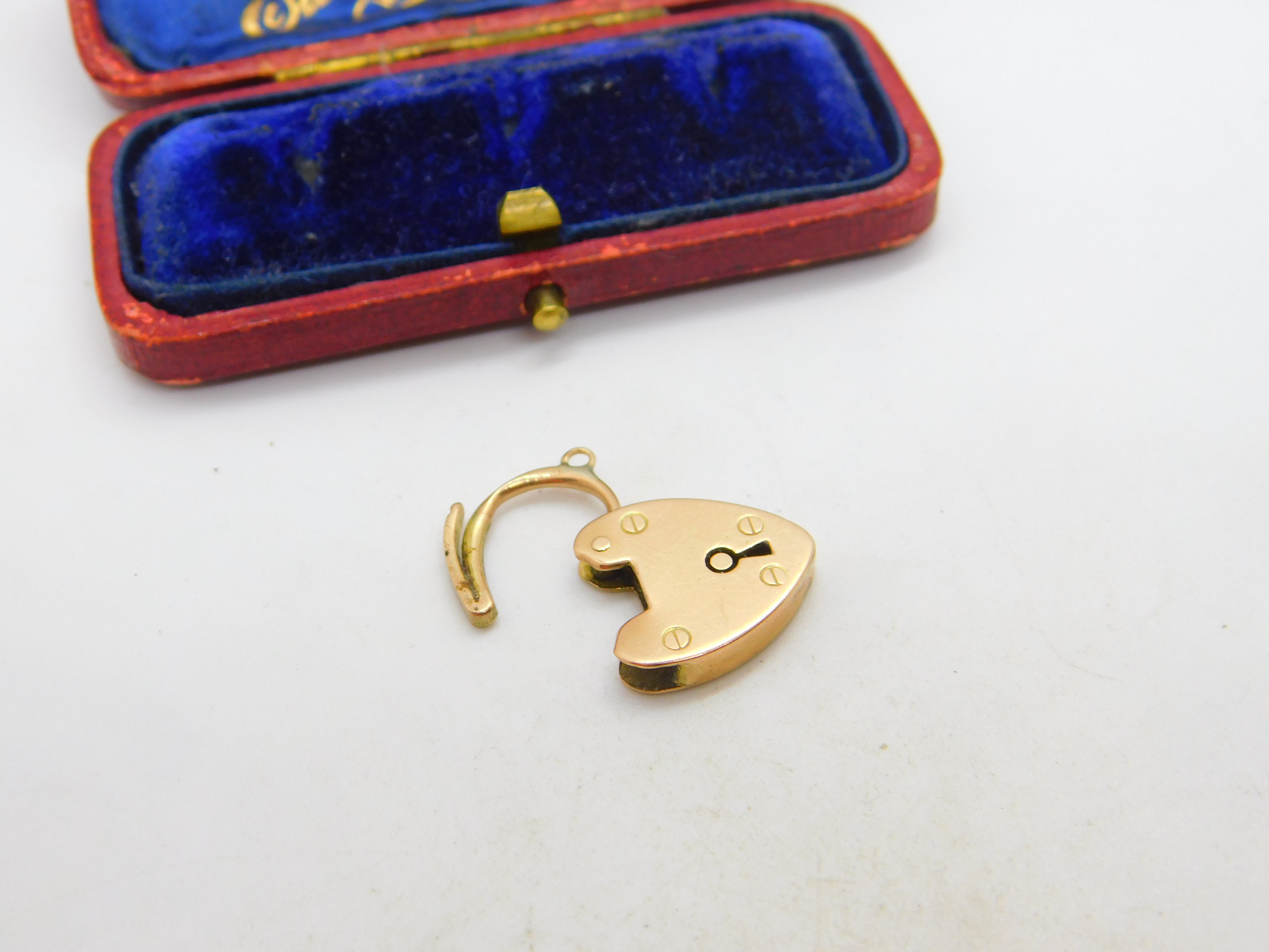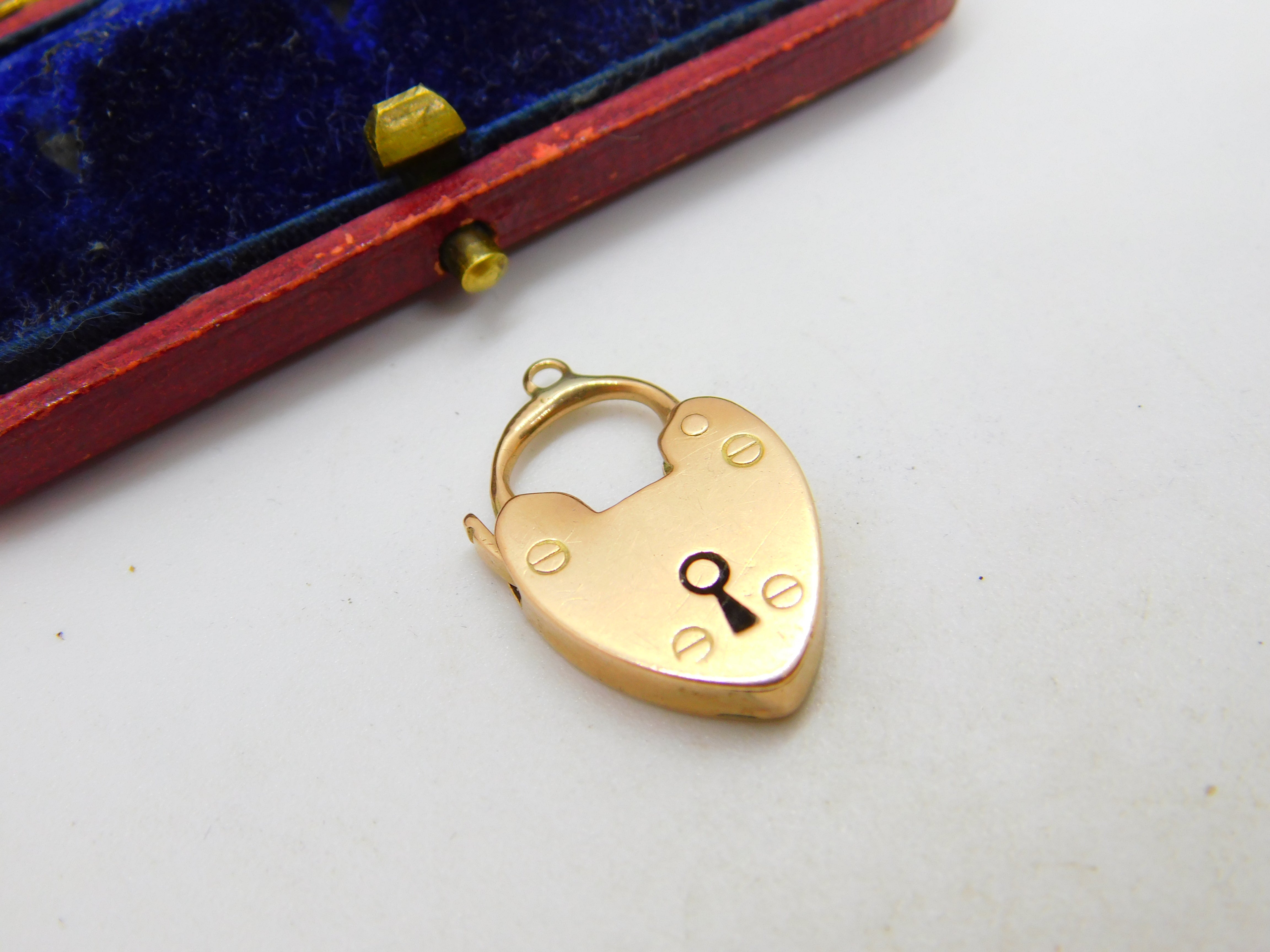 Victorian 9ct Rose Gold Heart Lock Charm Bracelet Clasp 1900 Birmingham