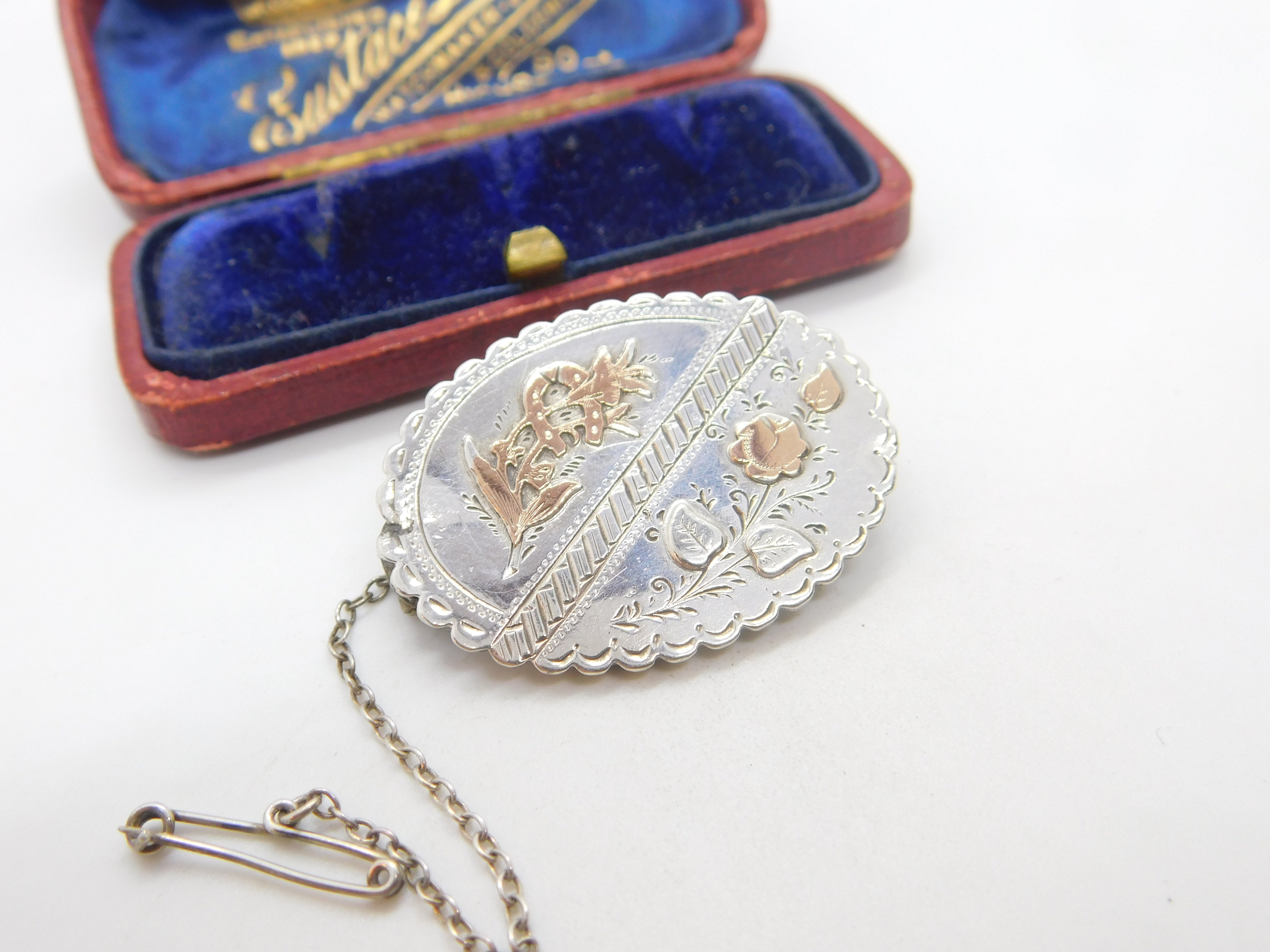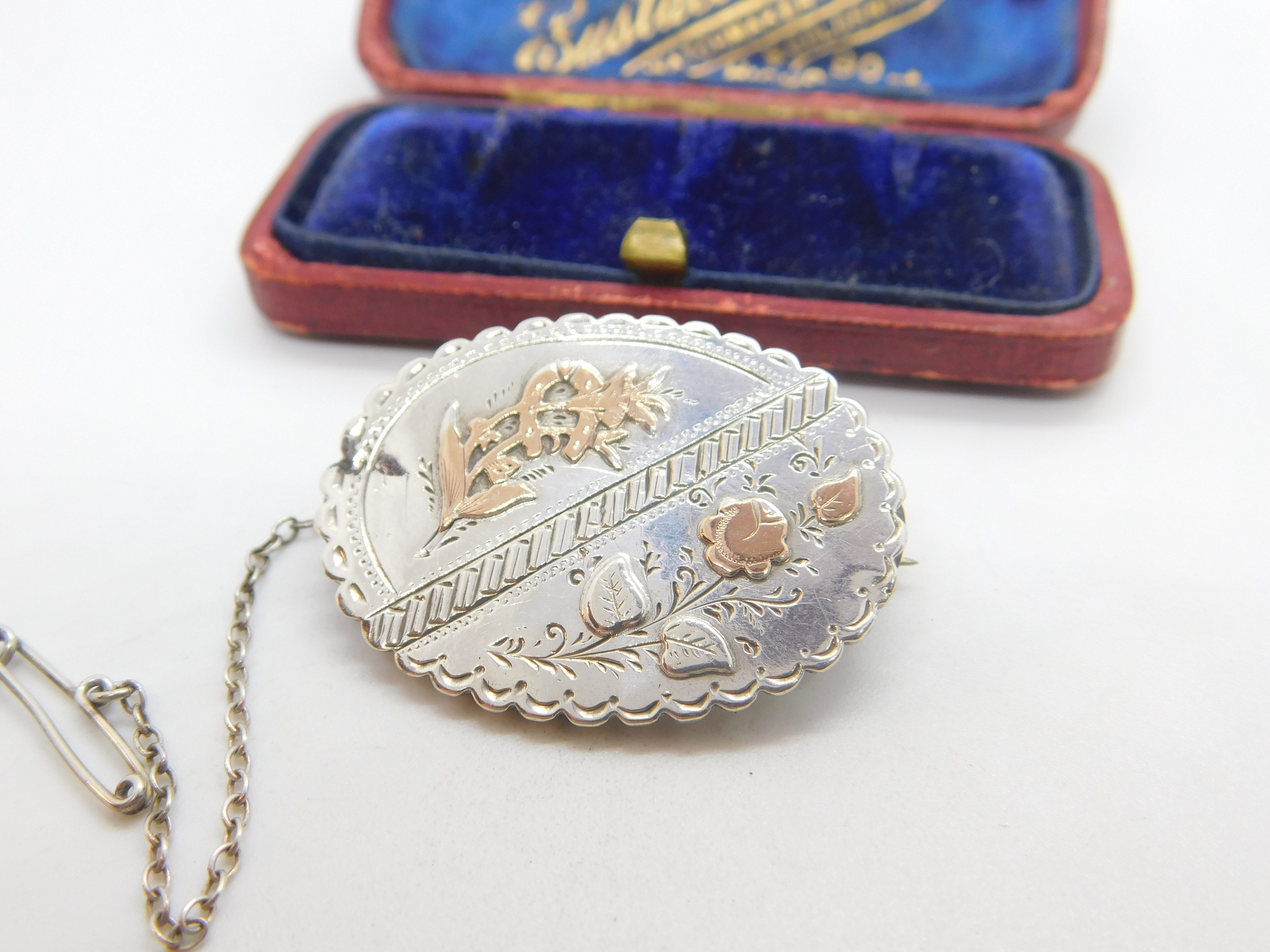 Victorian 9ct Rose Gold on Sterling Silver Floral Sweetheart Brooch 1888 Antique