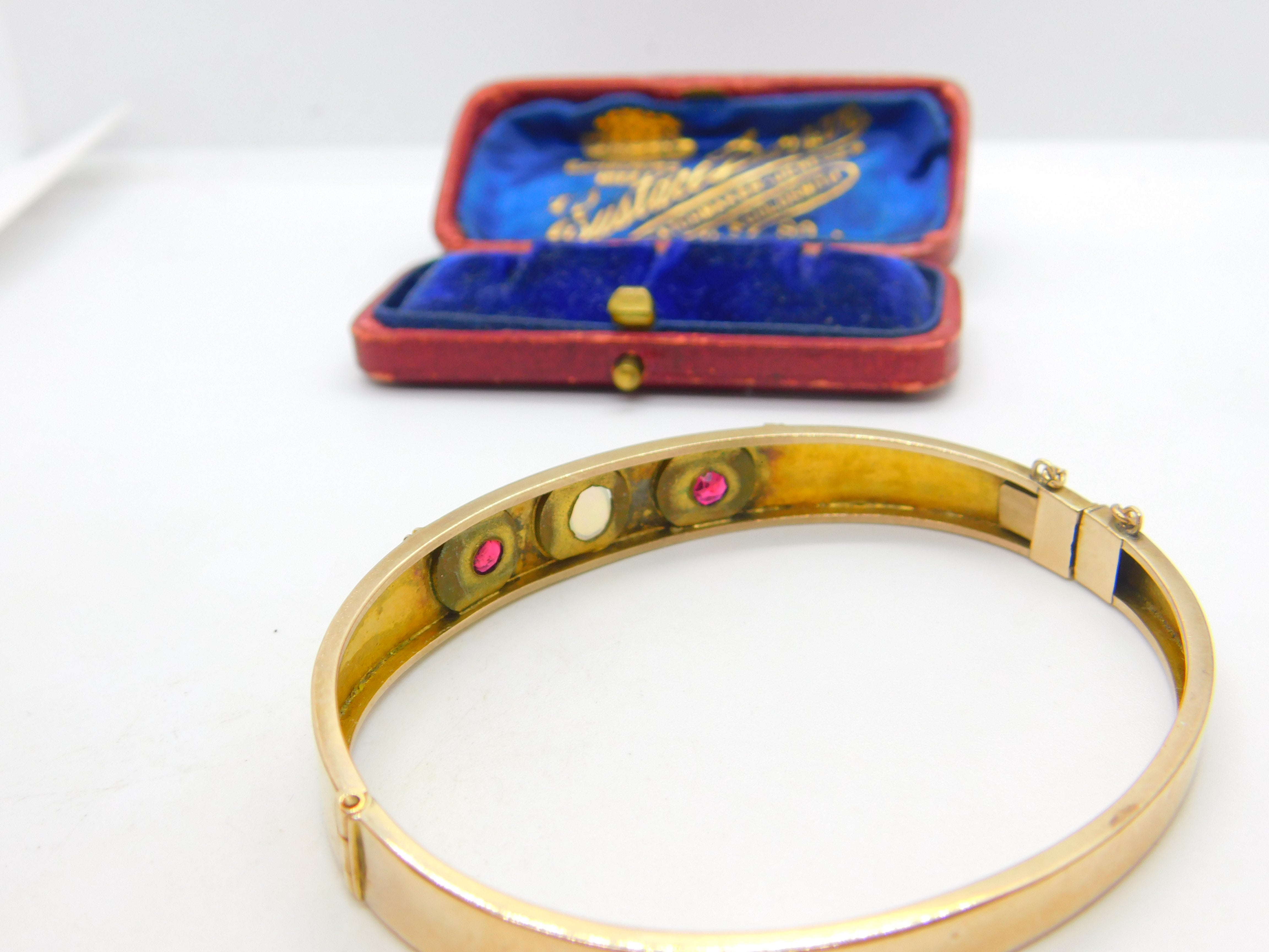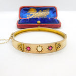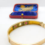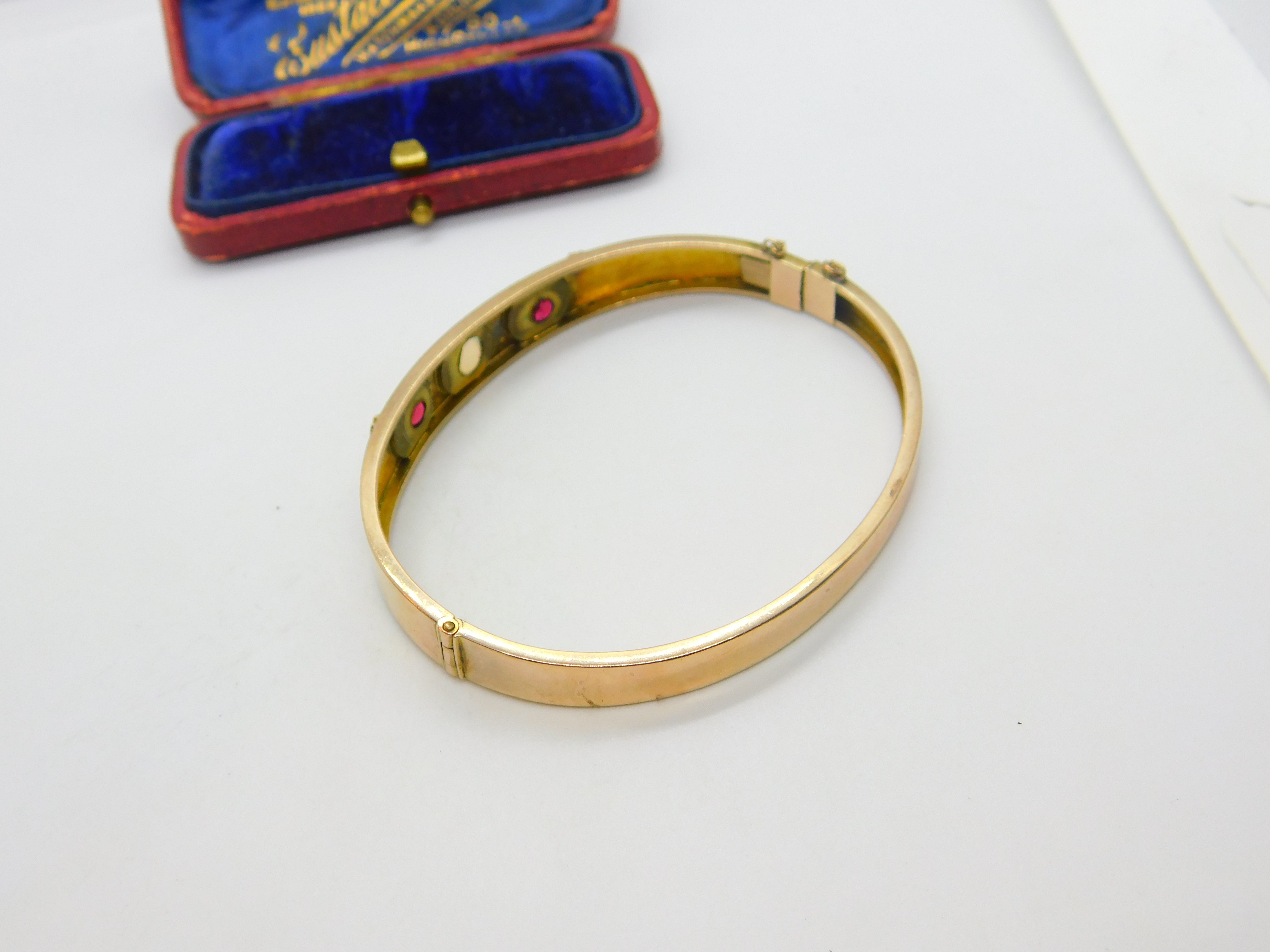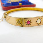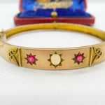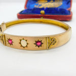 Victorian 9ct Rose Gold, Opal & Garnet Set Bangle Bracelet Antique c1880