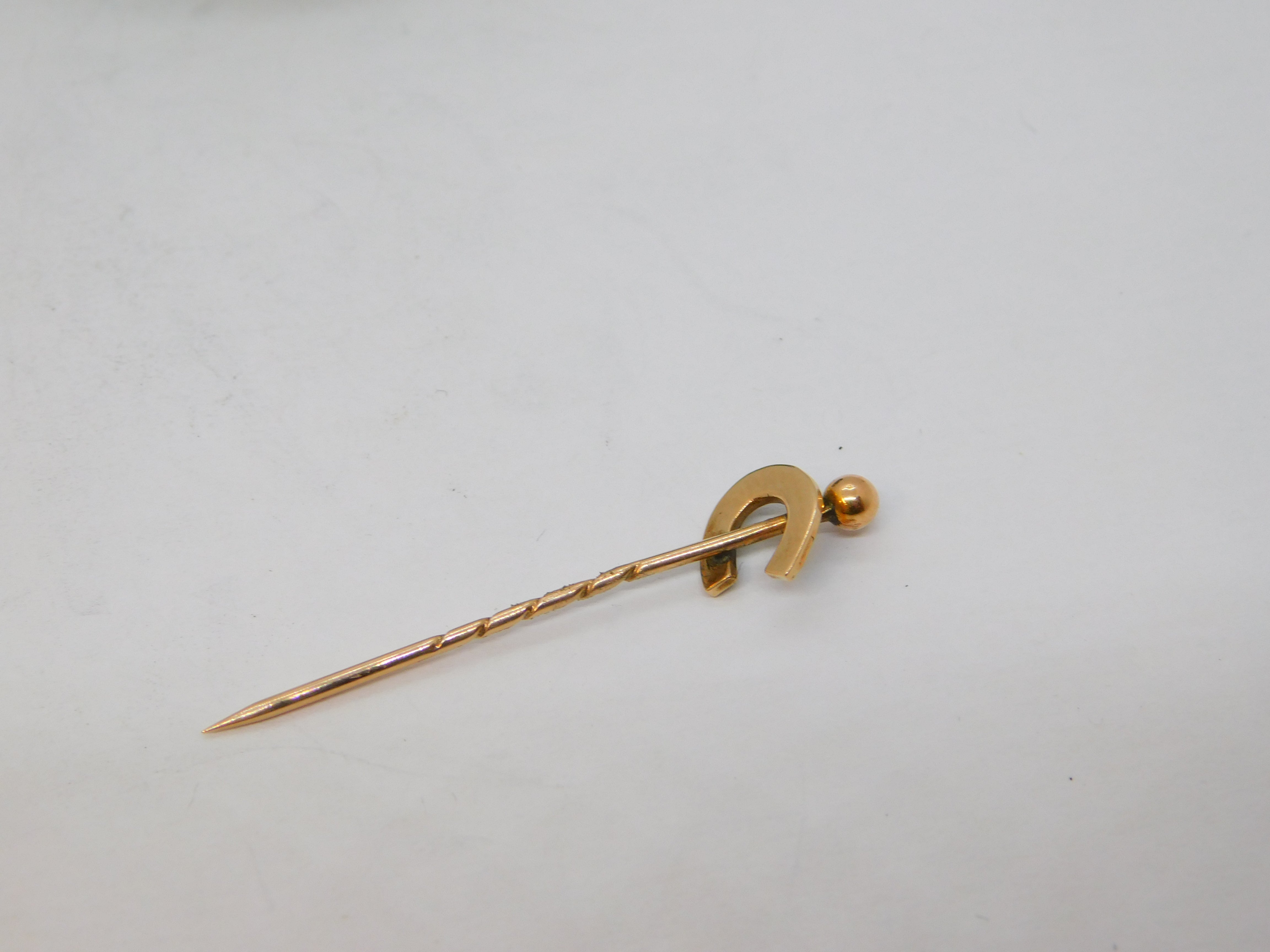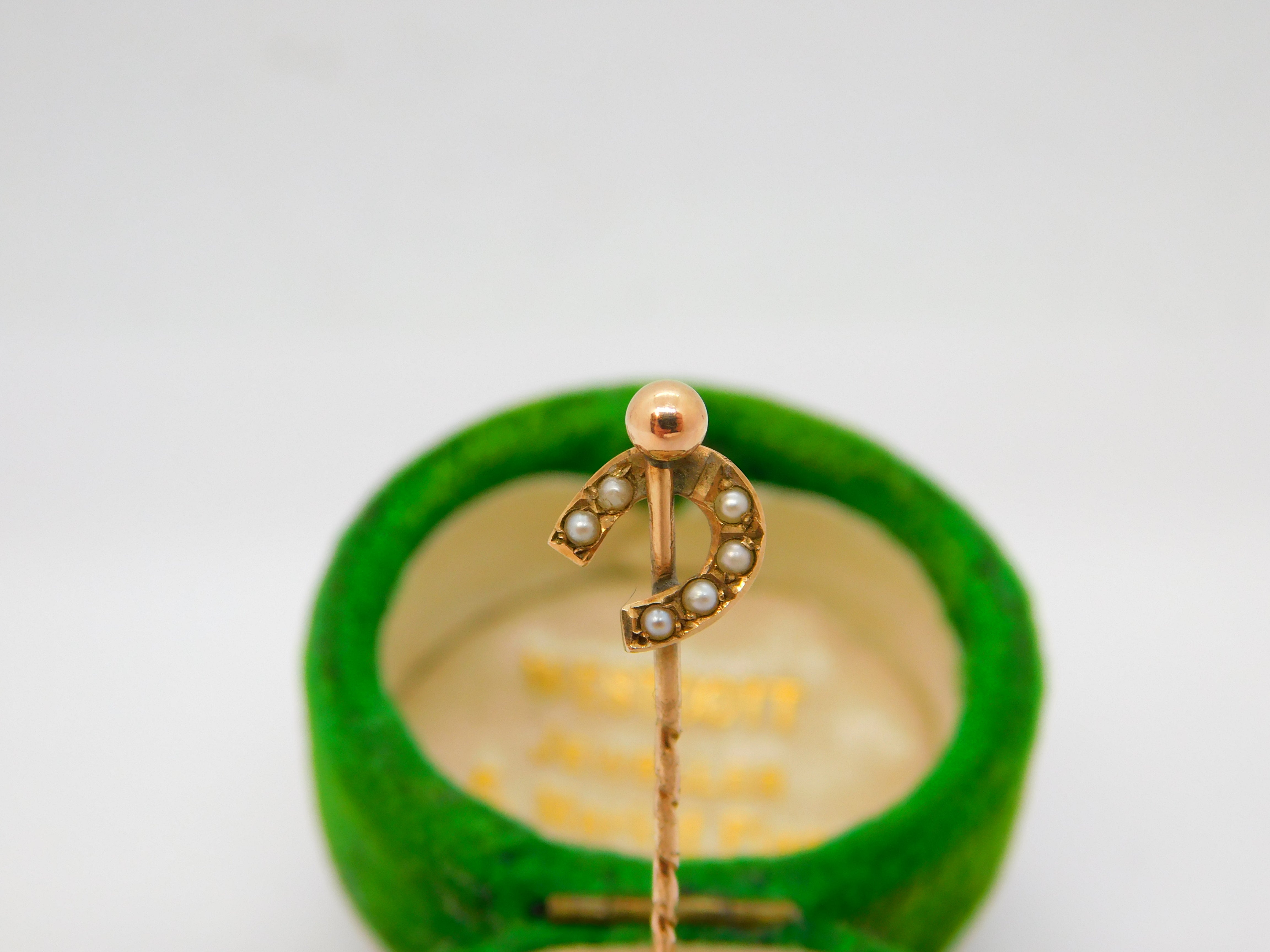 Victorian 9ct Rose Gold & Seed Pearl Lucky Horseshoe Stick Pin Antique c1890