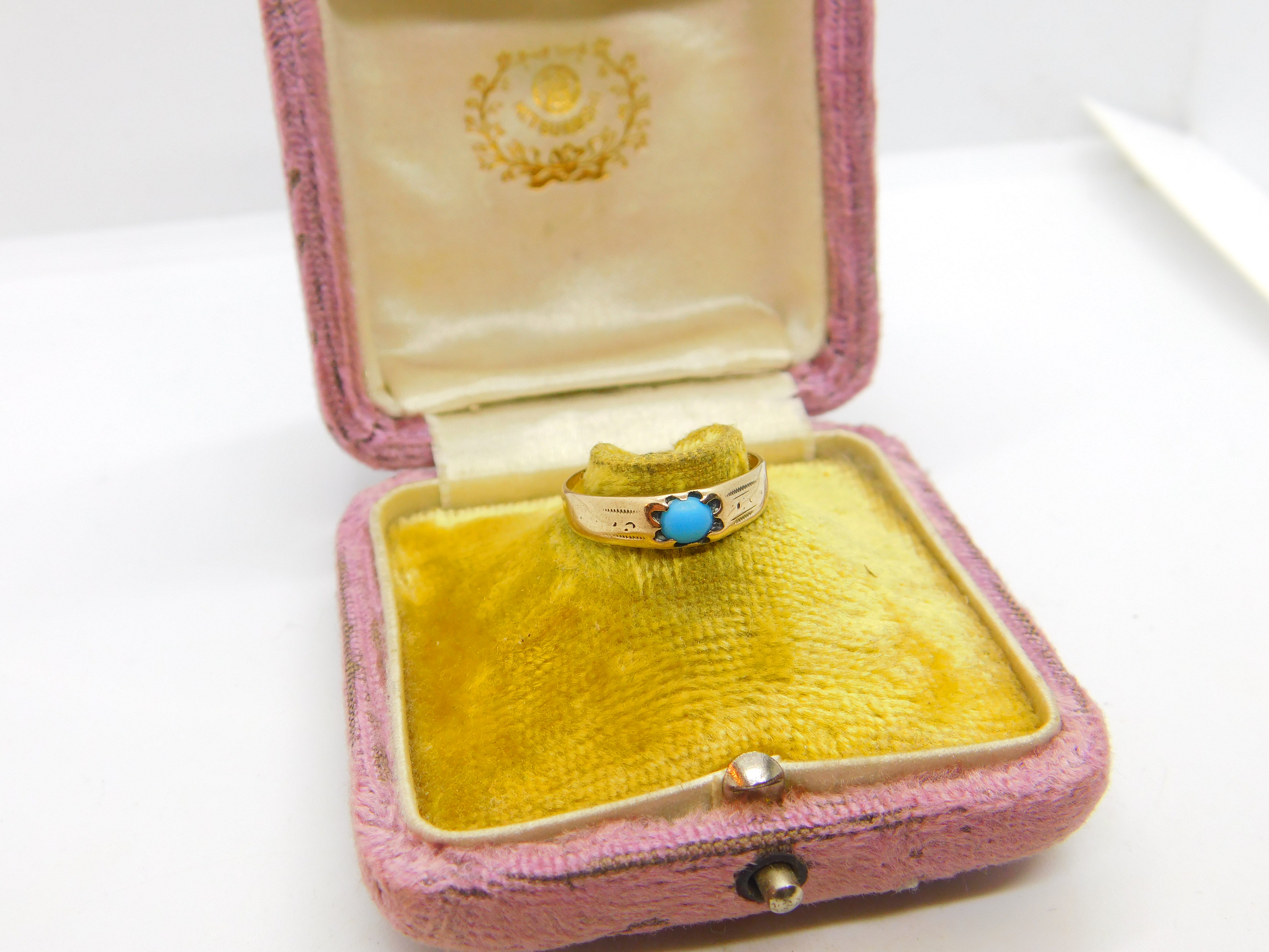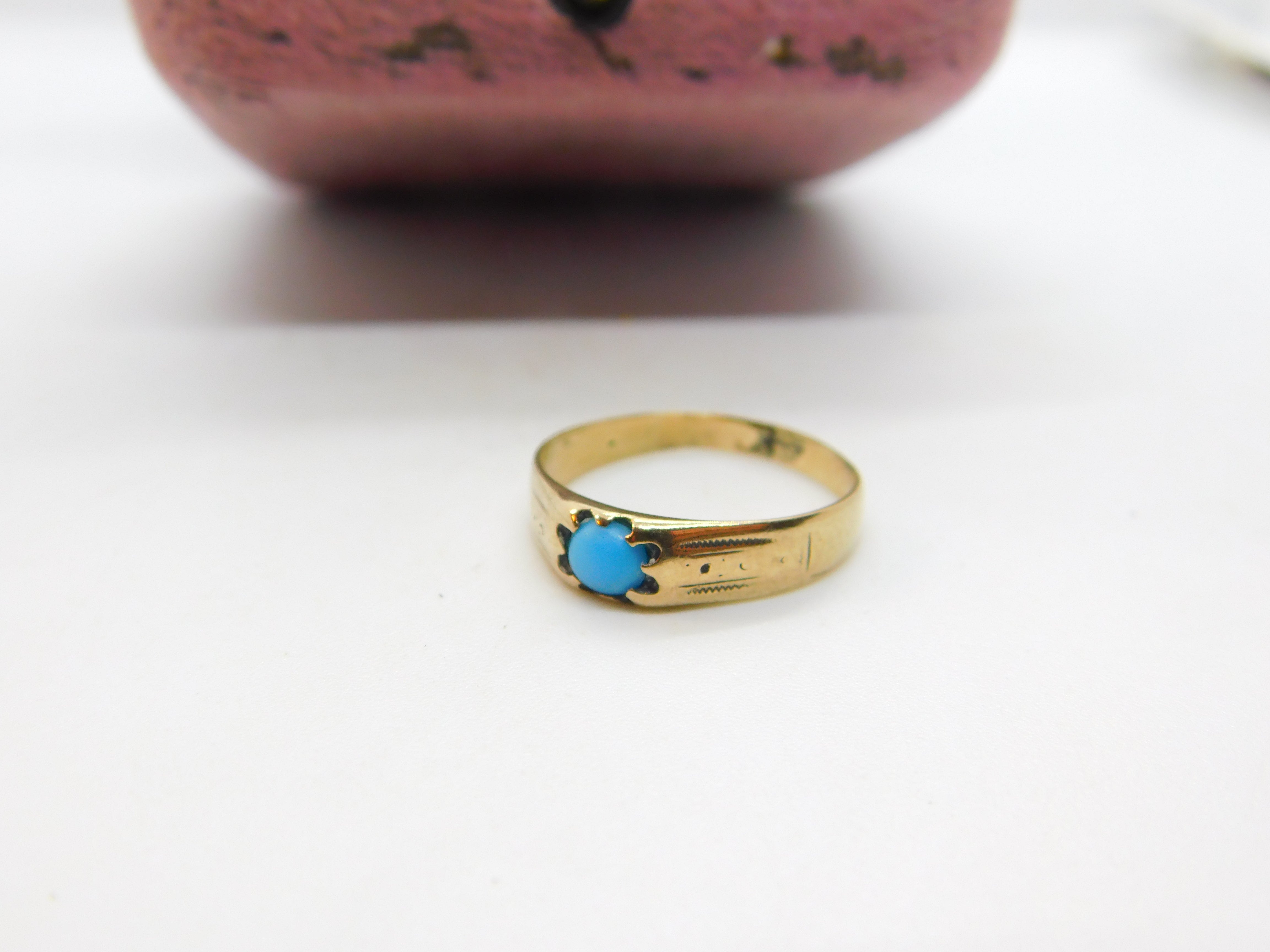 Victorian 9ct Rose Gold & Turquoise Set Band Ring Antique c1880