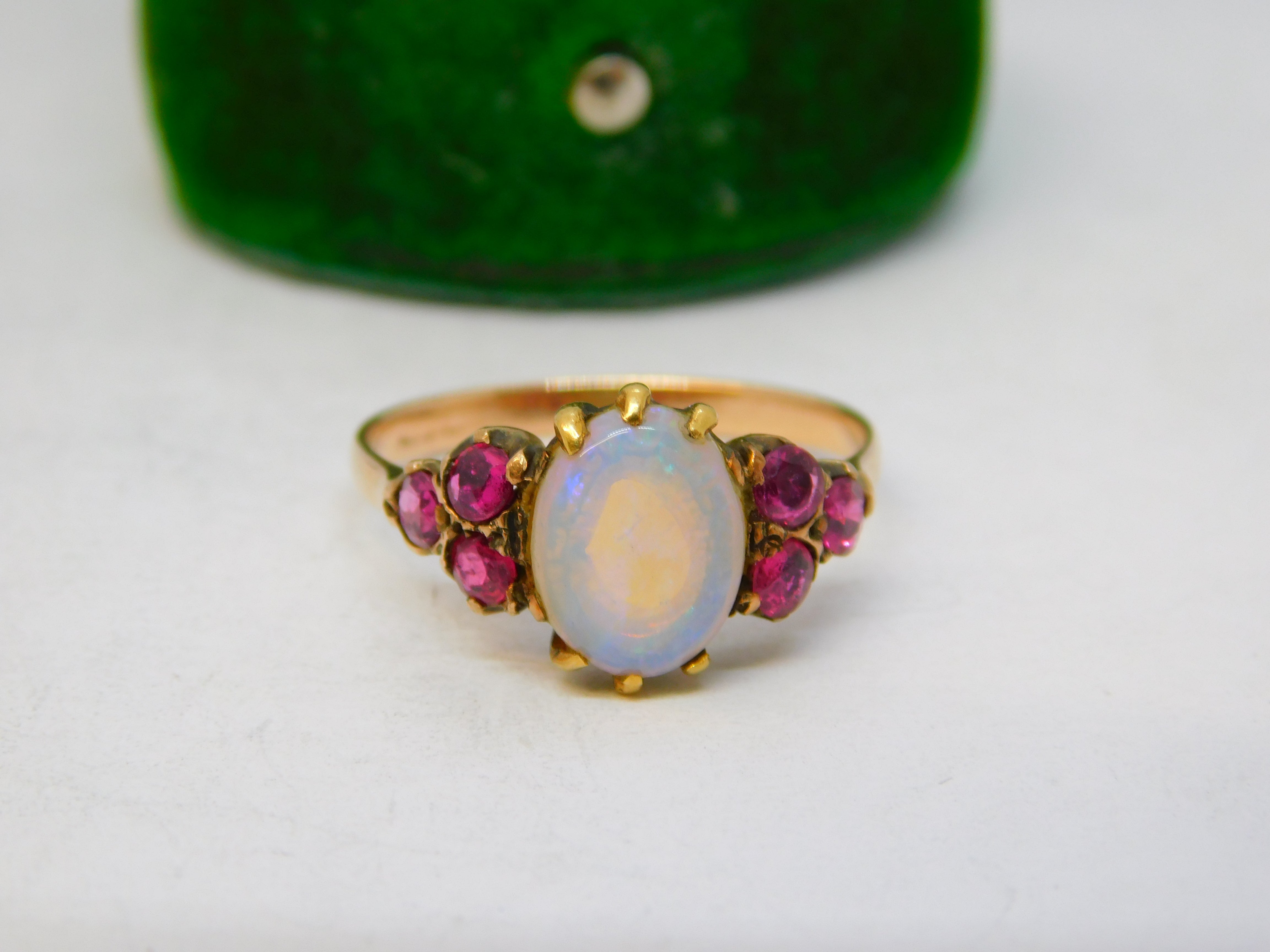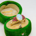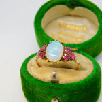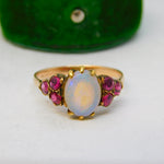 Victorian 9ct Rose Gold, White Opal & Ruby Set Dress Ring Antique c1900