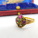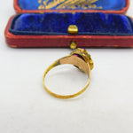 Victorian 9ct Yellow Gold, Amethyst, Seed Pearl & Paste Sweetheart Ring 1871 Birmingham