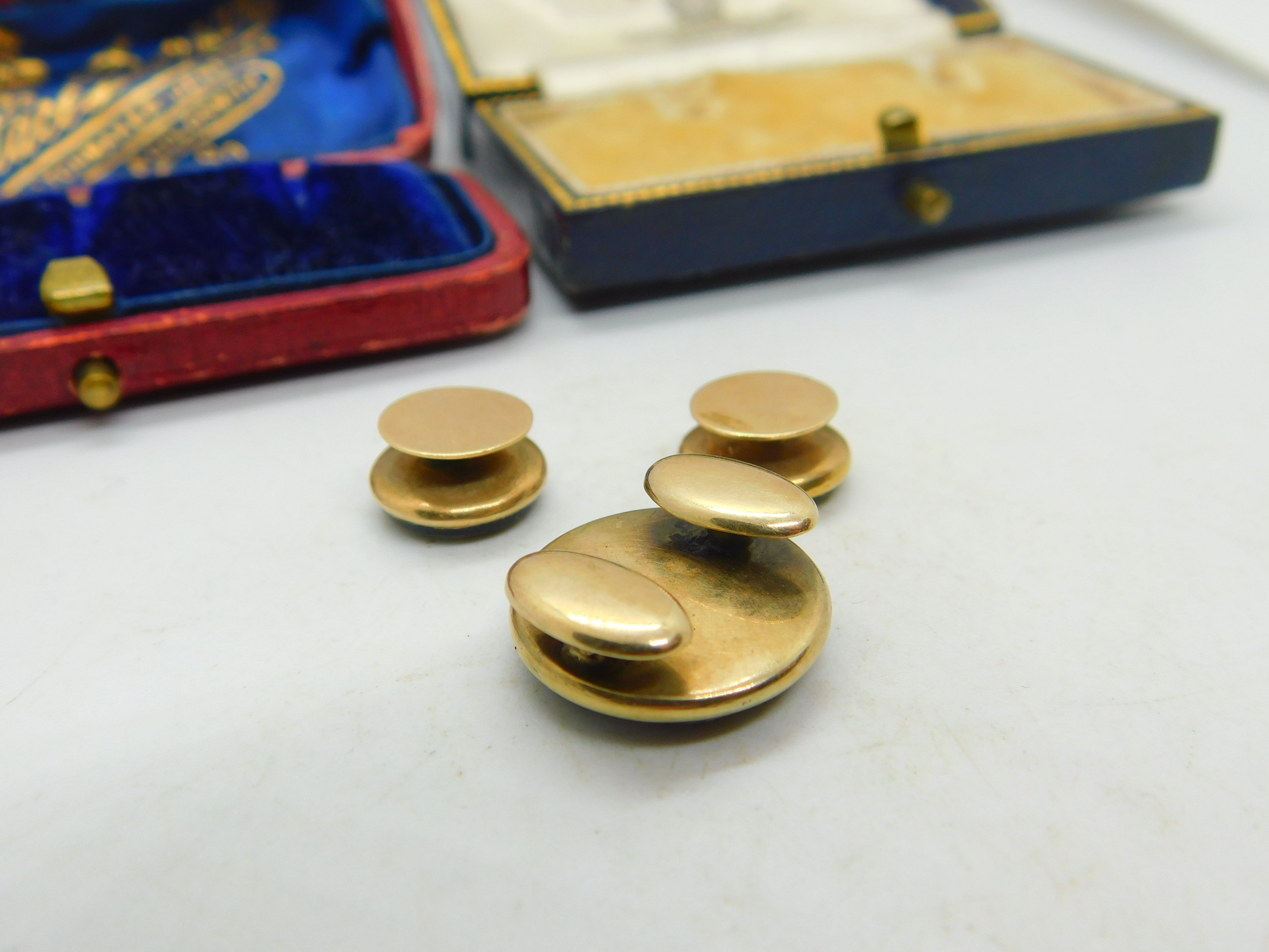 Victorian 9ct Yellow Gold & Carved Sardonyx Collar Stud Button Collection c1860