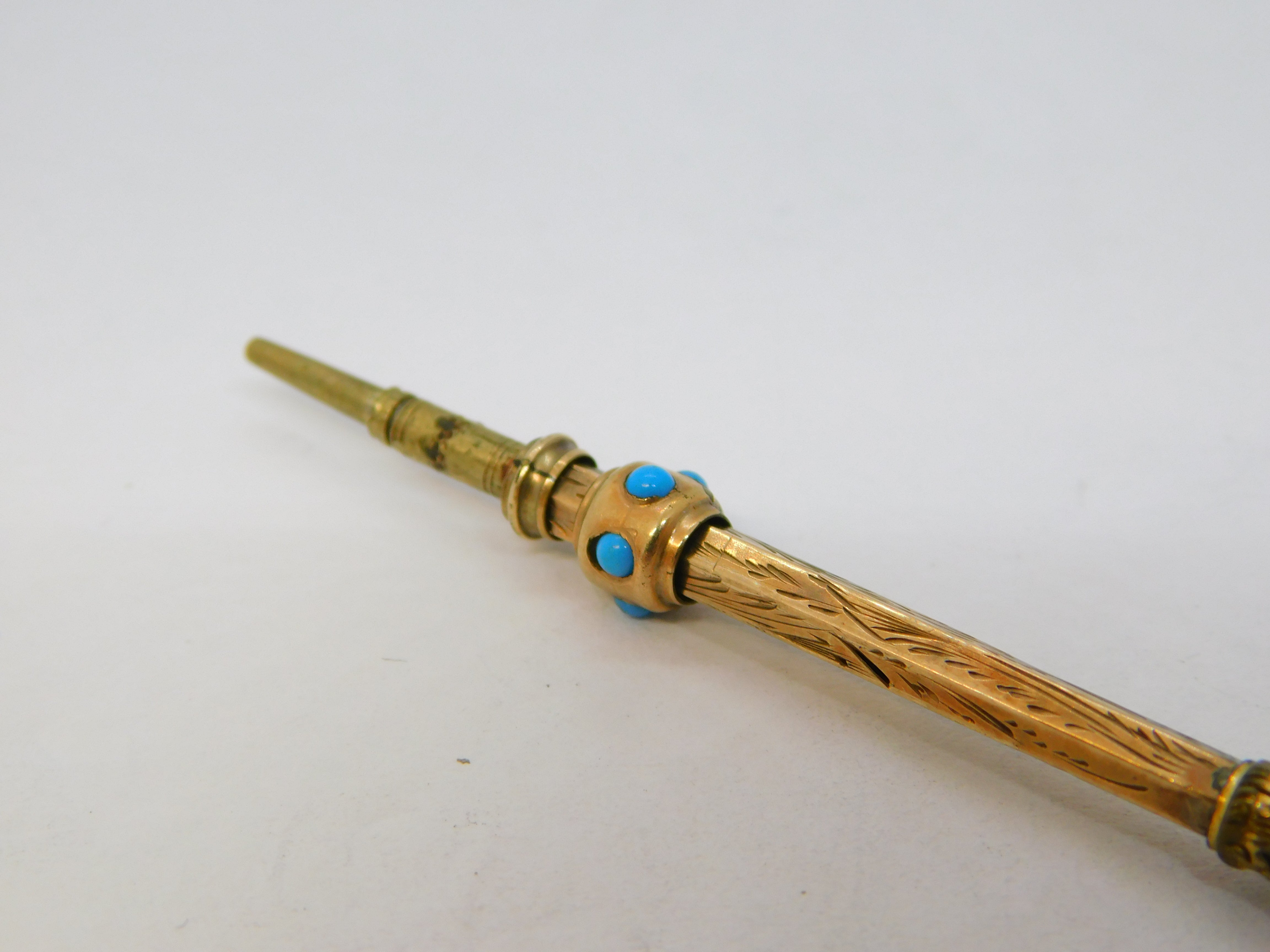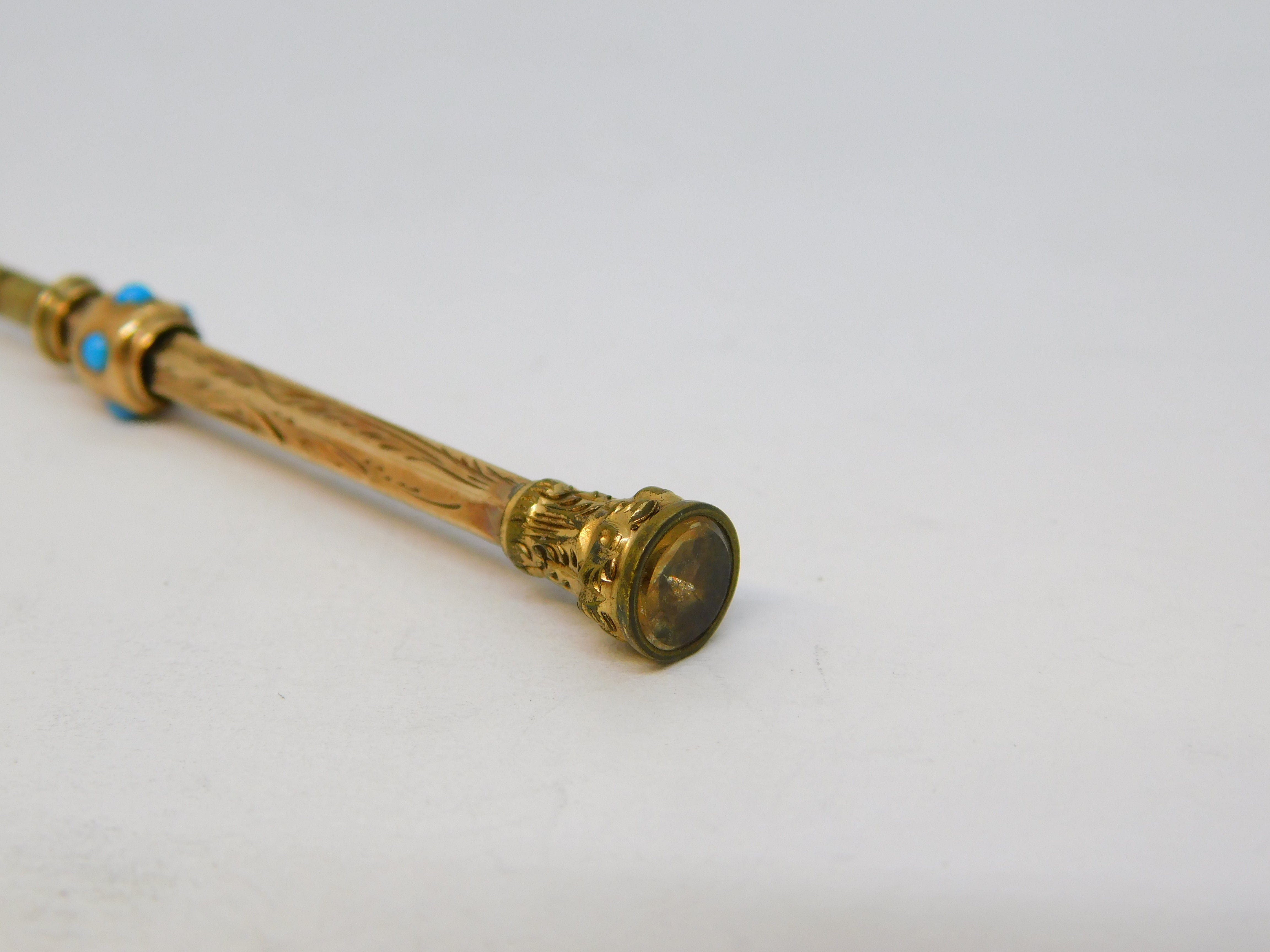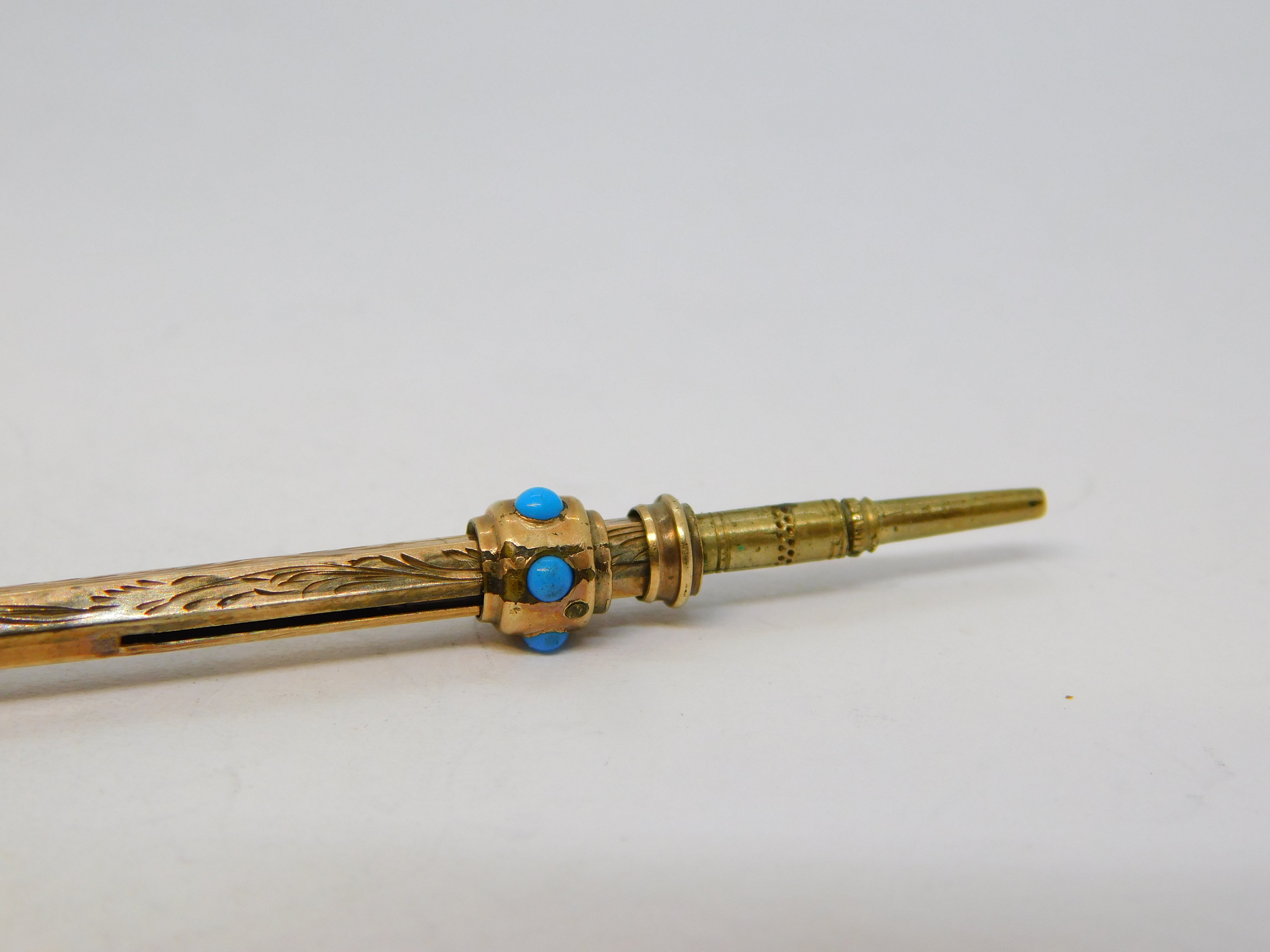 Victorian 9ct Yellow Gold Cased & Turquoise Set Propelling Pencil Antique c1860