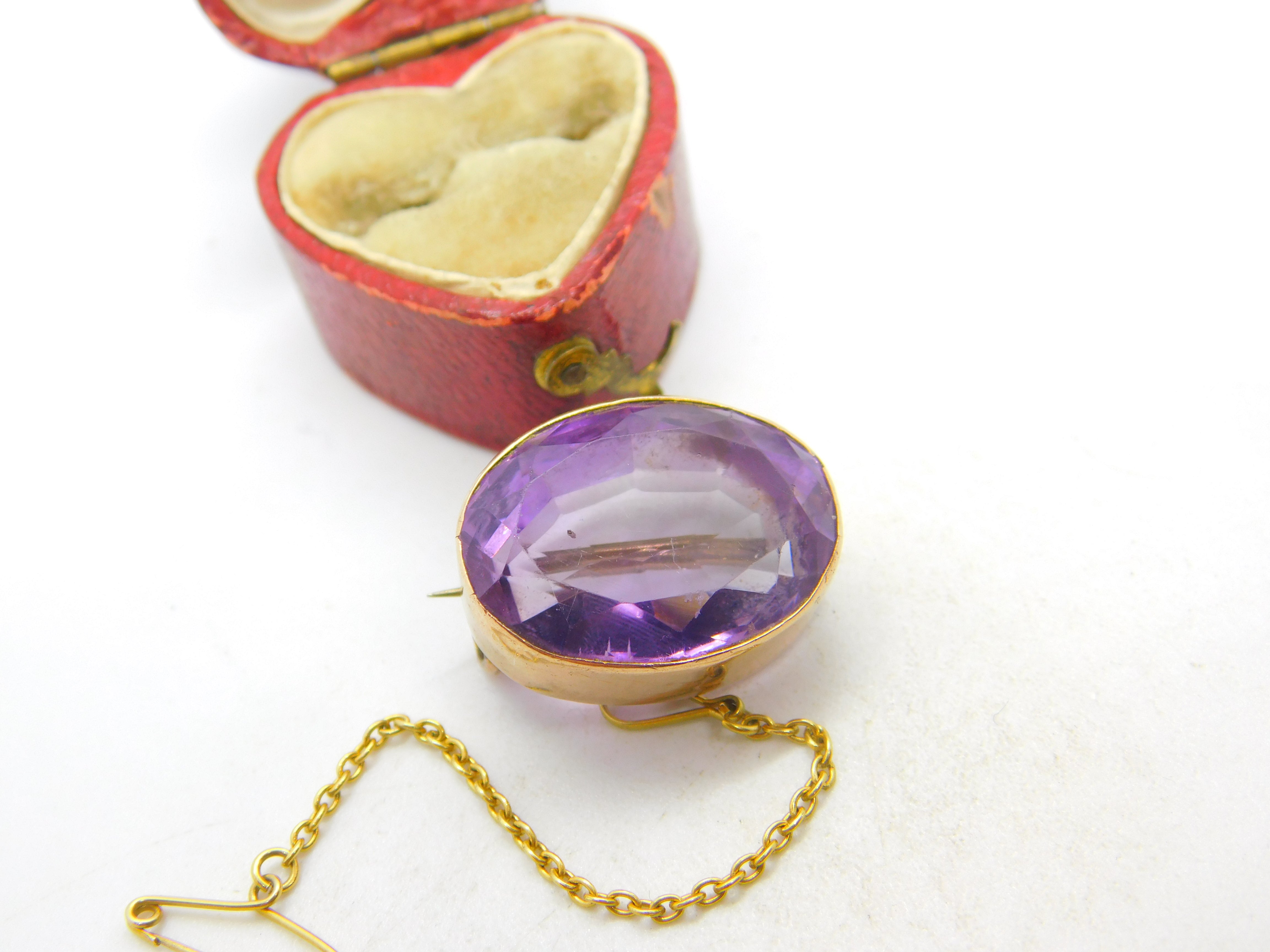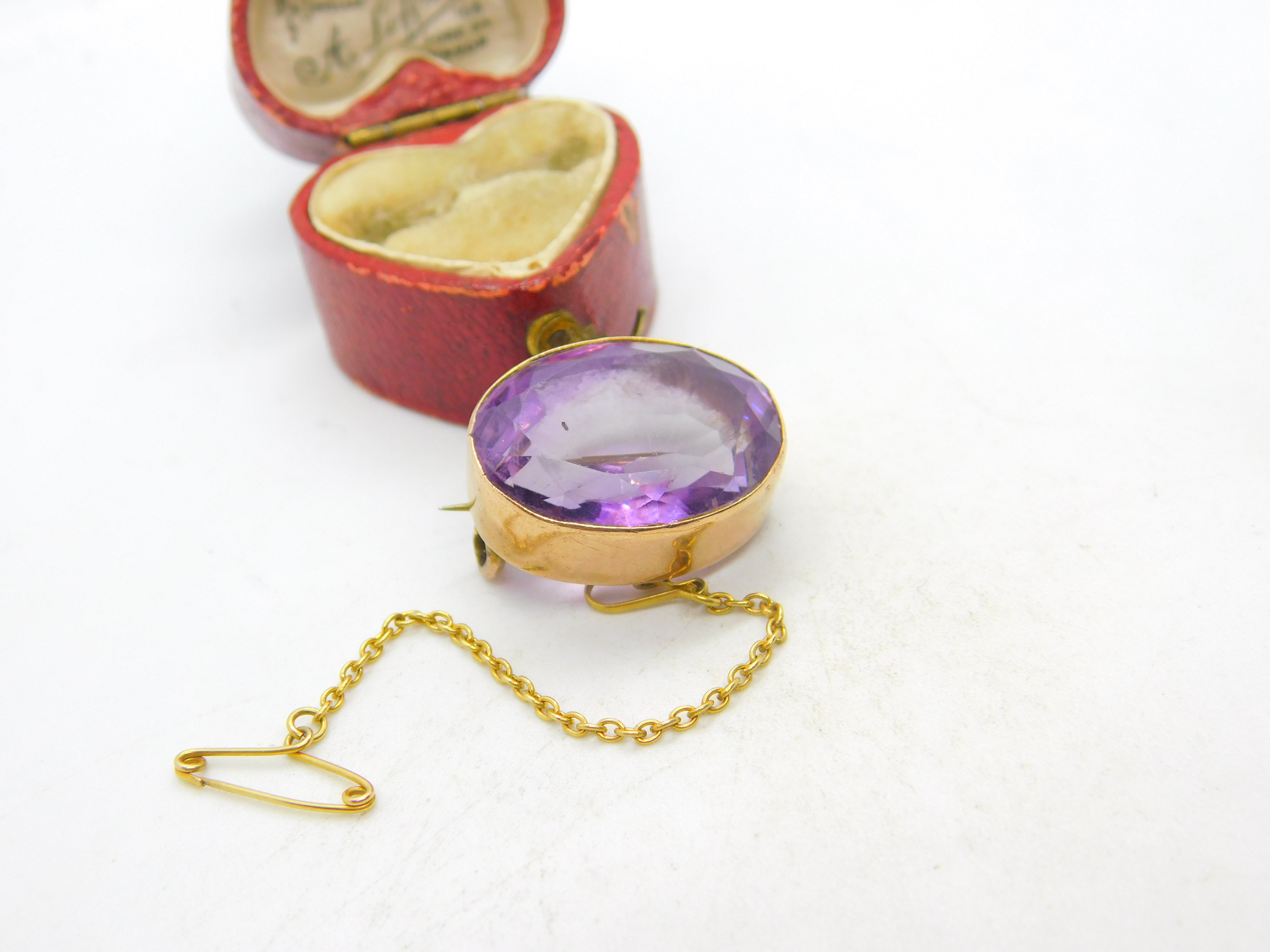 Details: A fantastic and wonderfully designed antique Victorian 9ct yellow gold and faceted amethyst button brooch c1850 - the gold has been XRF tested. This is a wonderful item that would make a perfect gift or addition to any collection. The BOX pictured is for PRESENTATION ONLY and is NOT included in the listings but used to frame the pictures unless specifically stated otherwise.