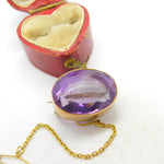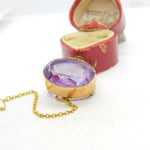 Victorian 9ct Yellow Gold & Faceted Amethyst Button Brooch Antique c1850