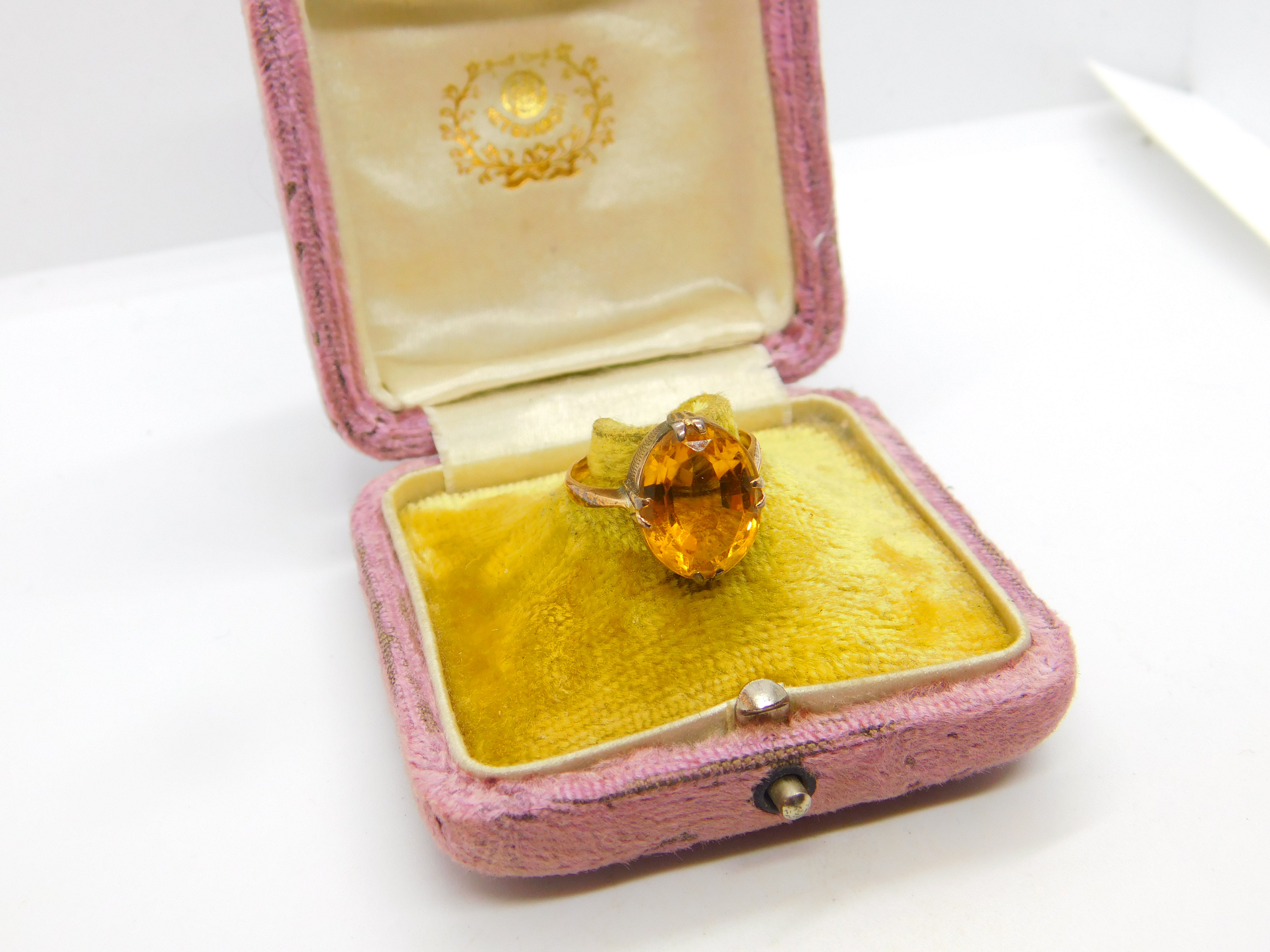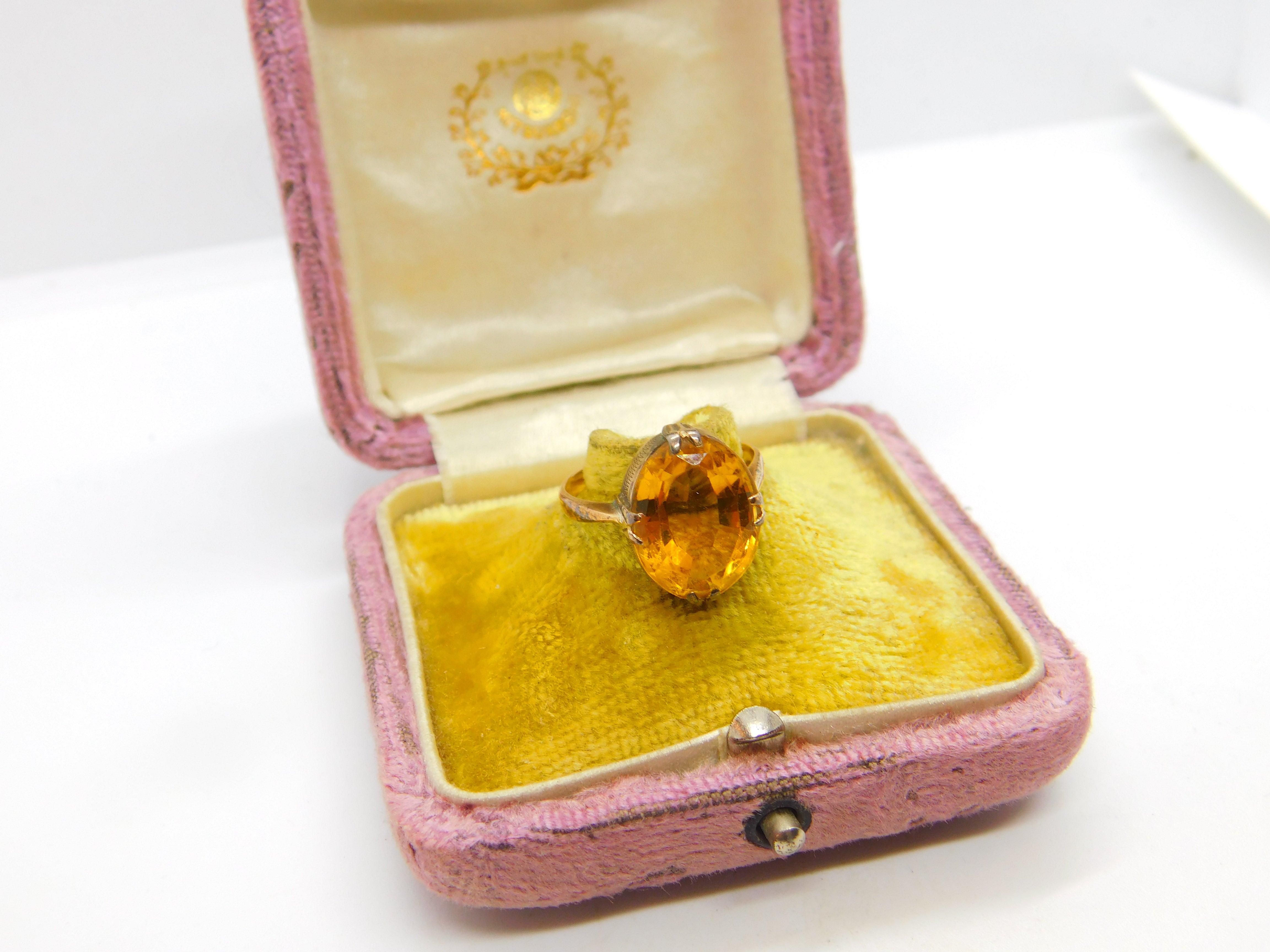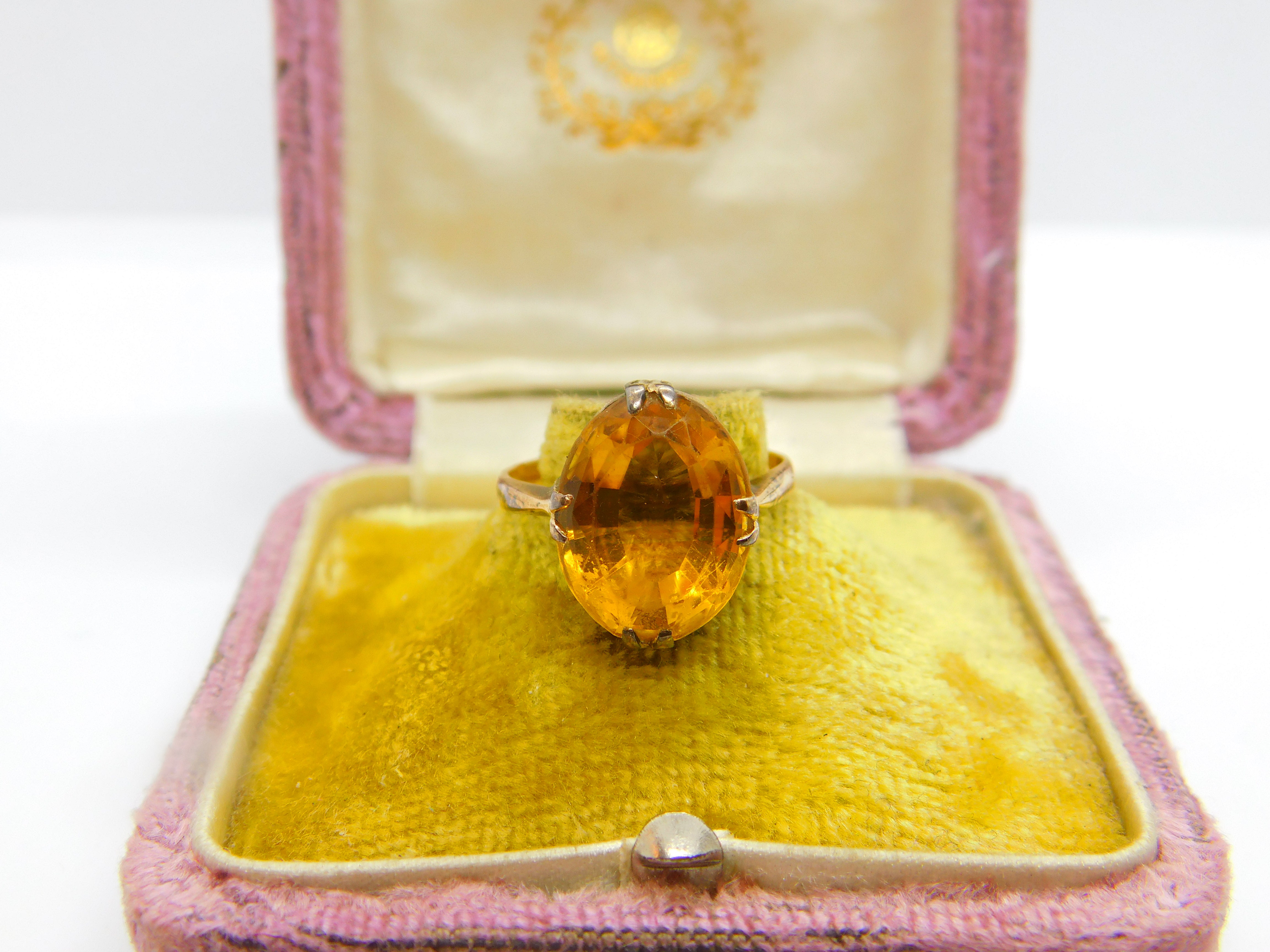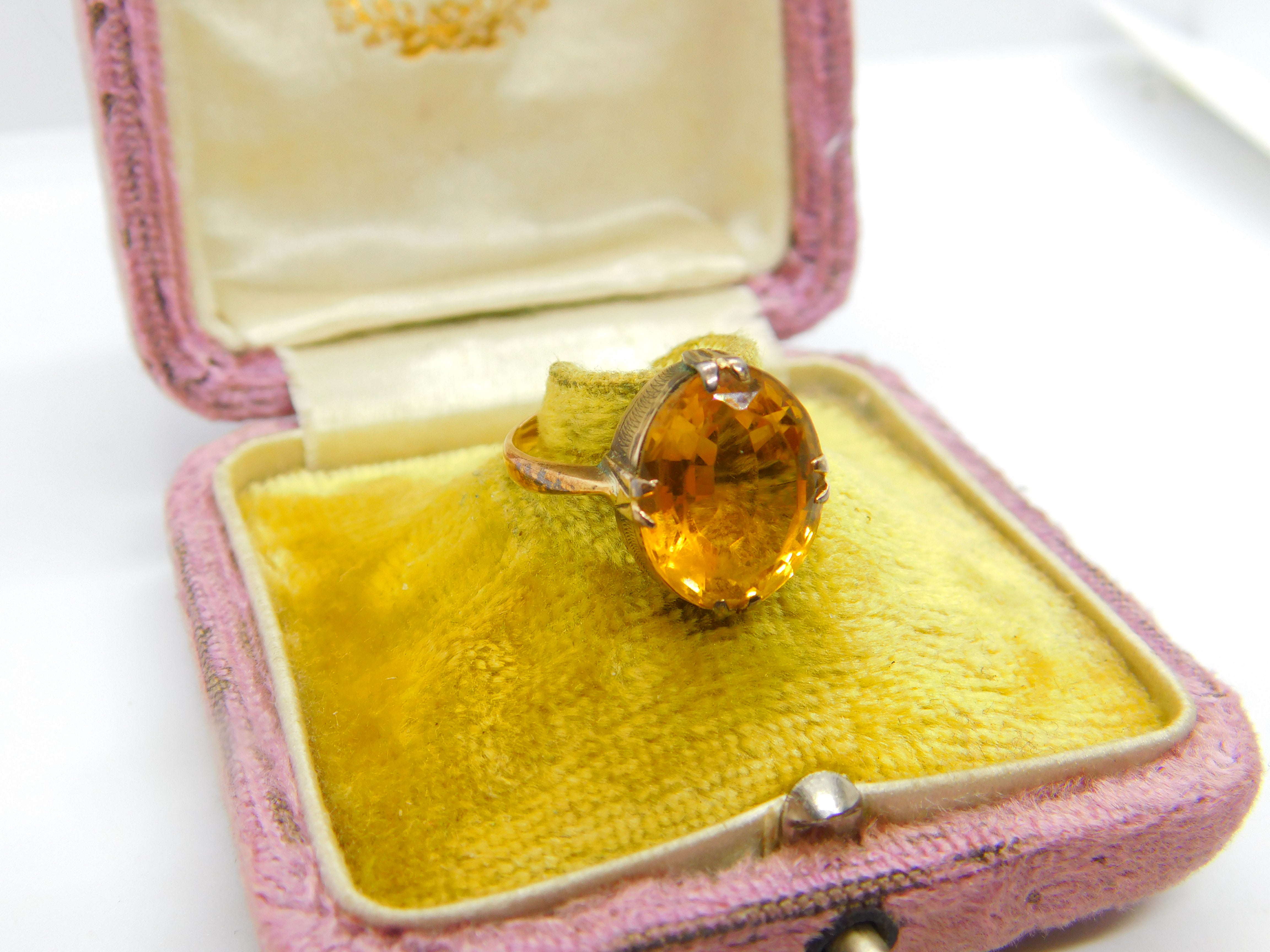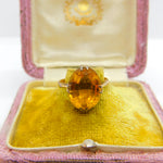 Victorian 9ct Yellow Gold Faceted Citrine Set Cocktail Ring c1890 Antique