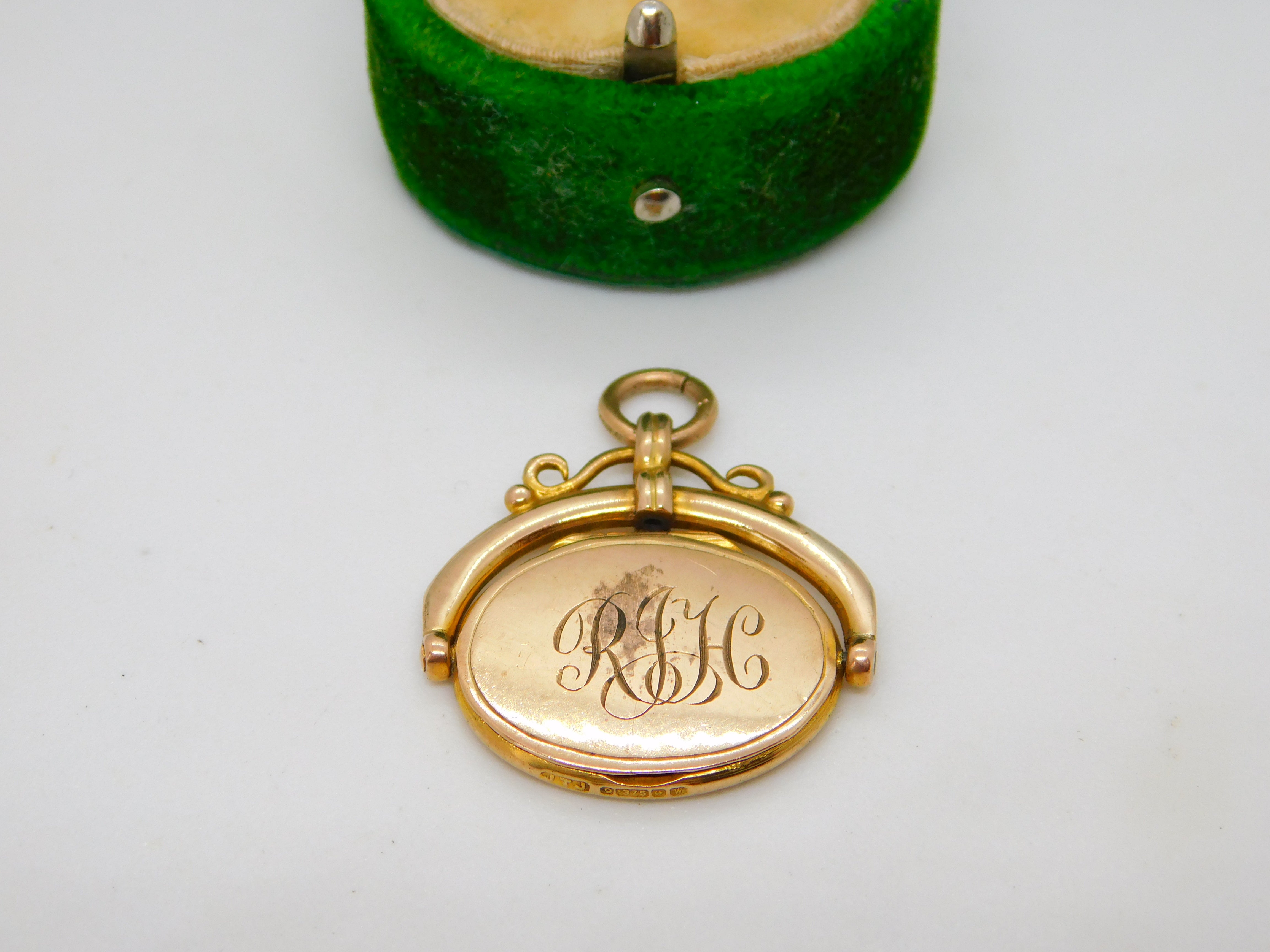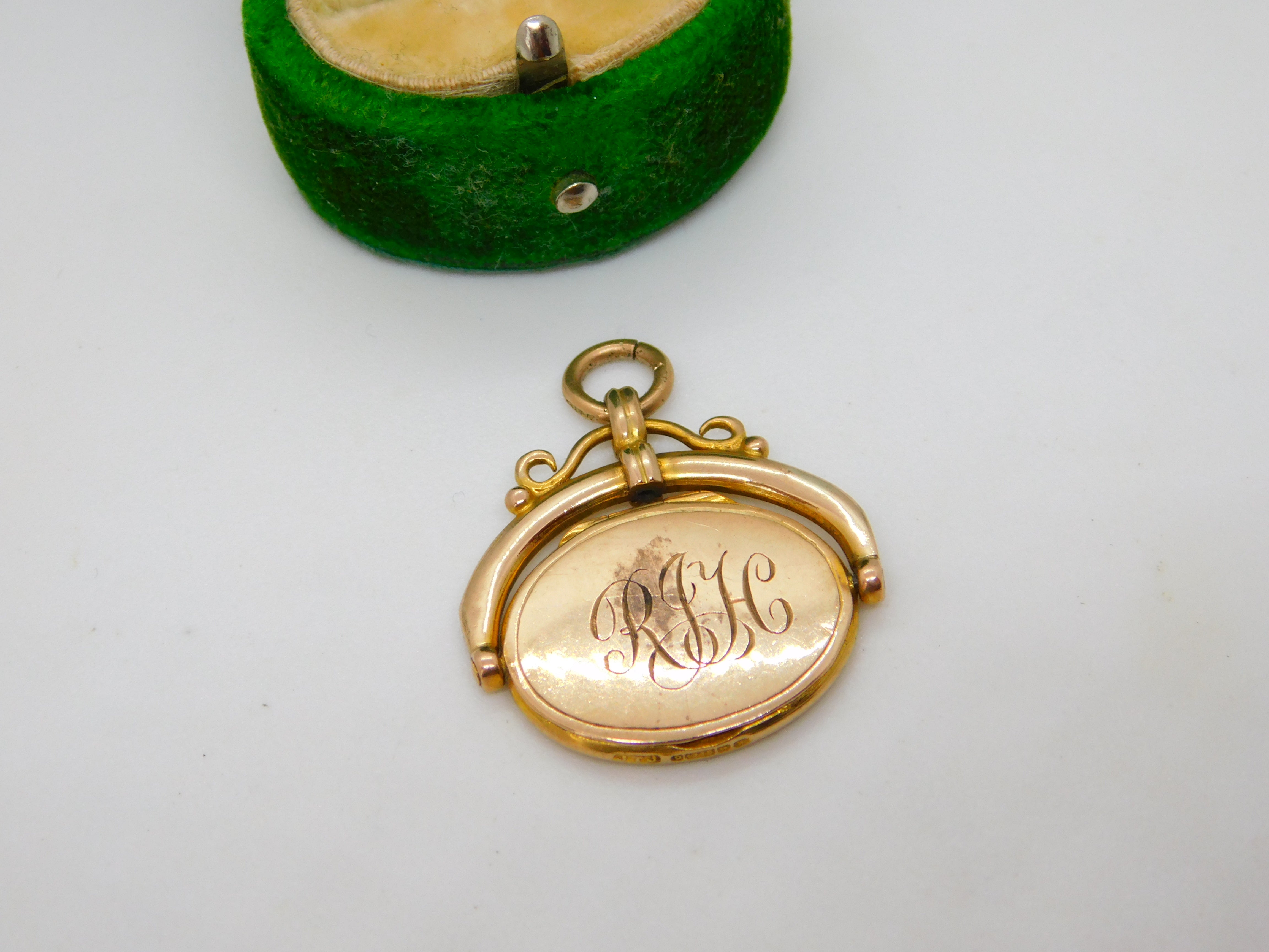 Victorian 9ct Yellow Gold Monogram Swivel Locket Pendant Antique 1871 Birmingham