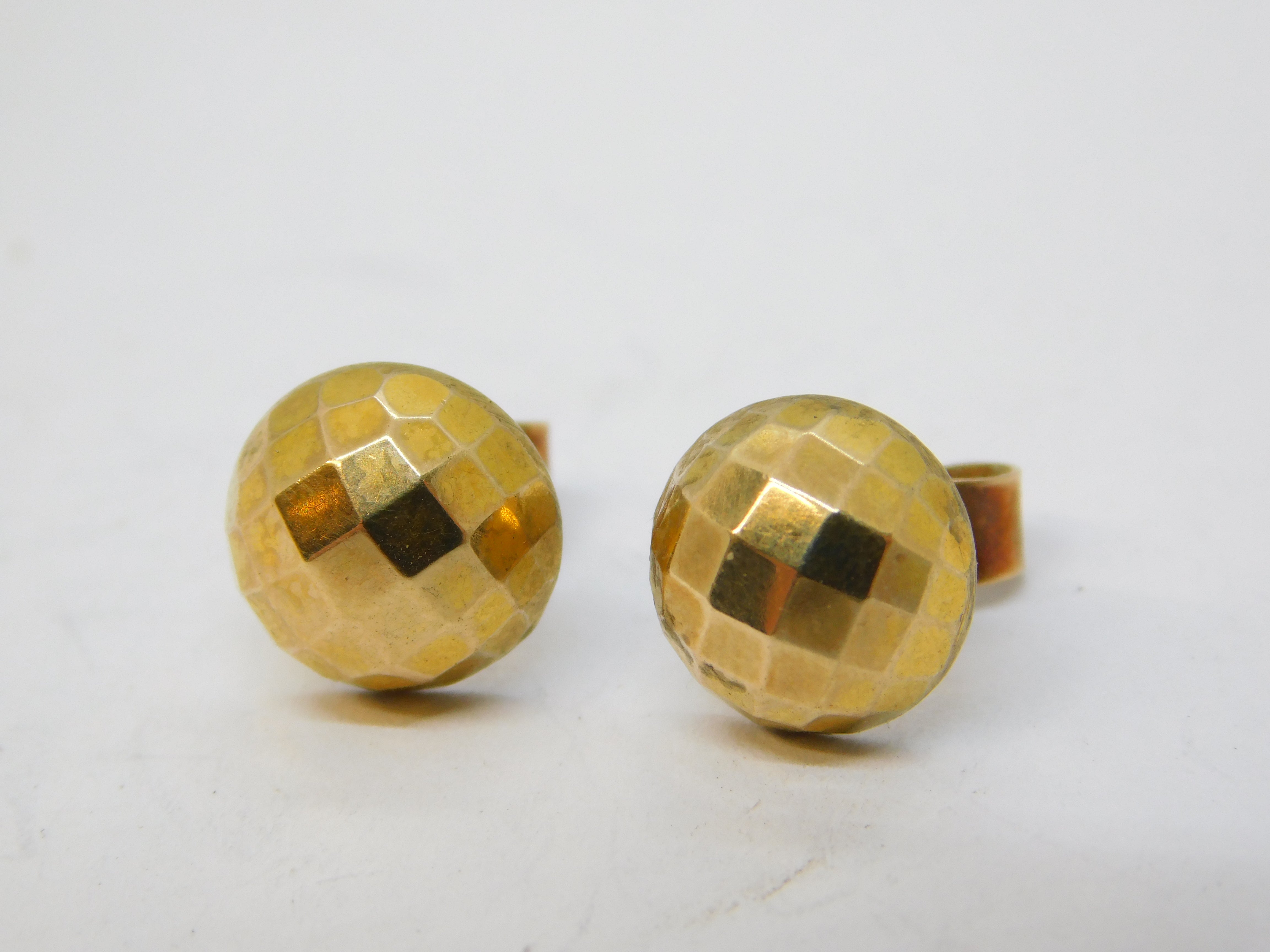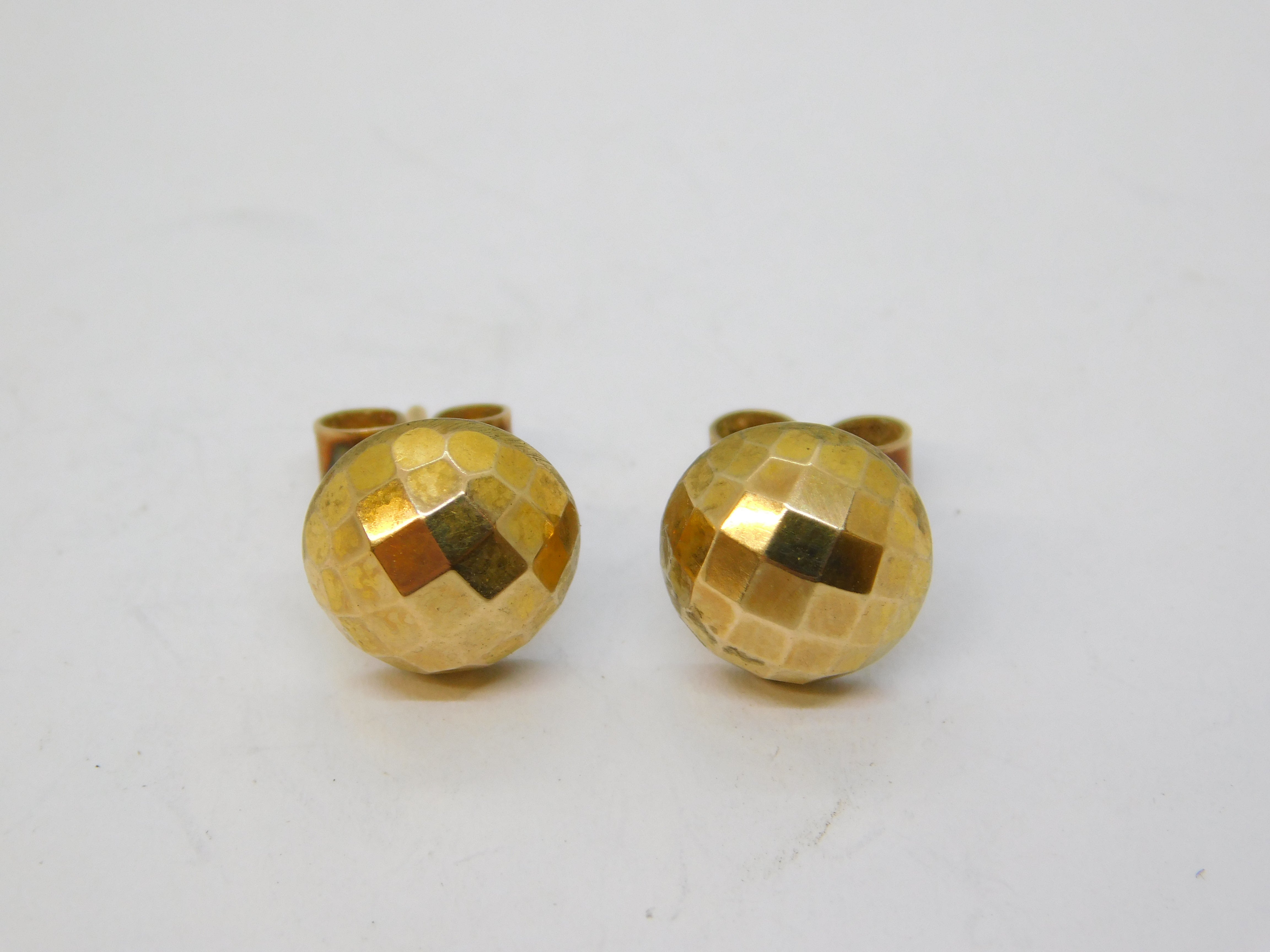 Victorian 9ct Yellow Gold Planished Stud Earrings Antique c1880