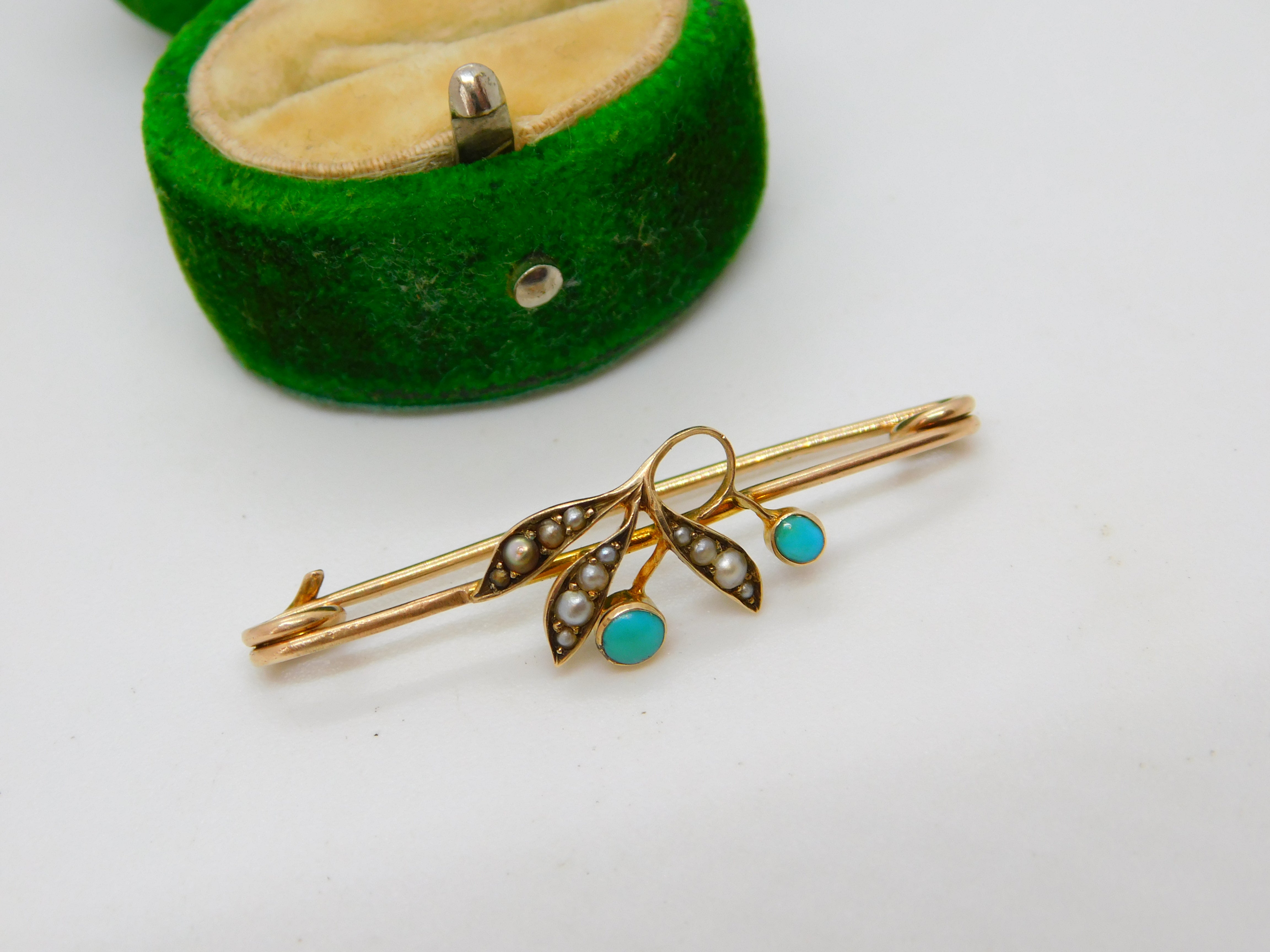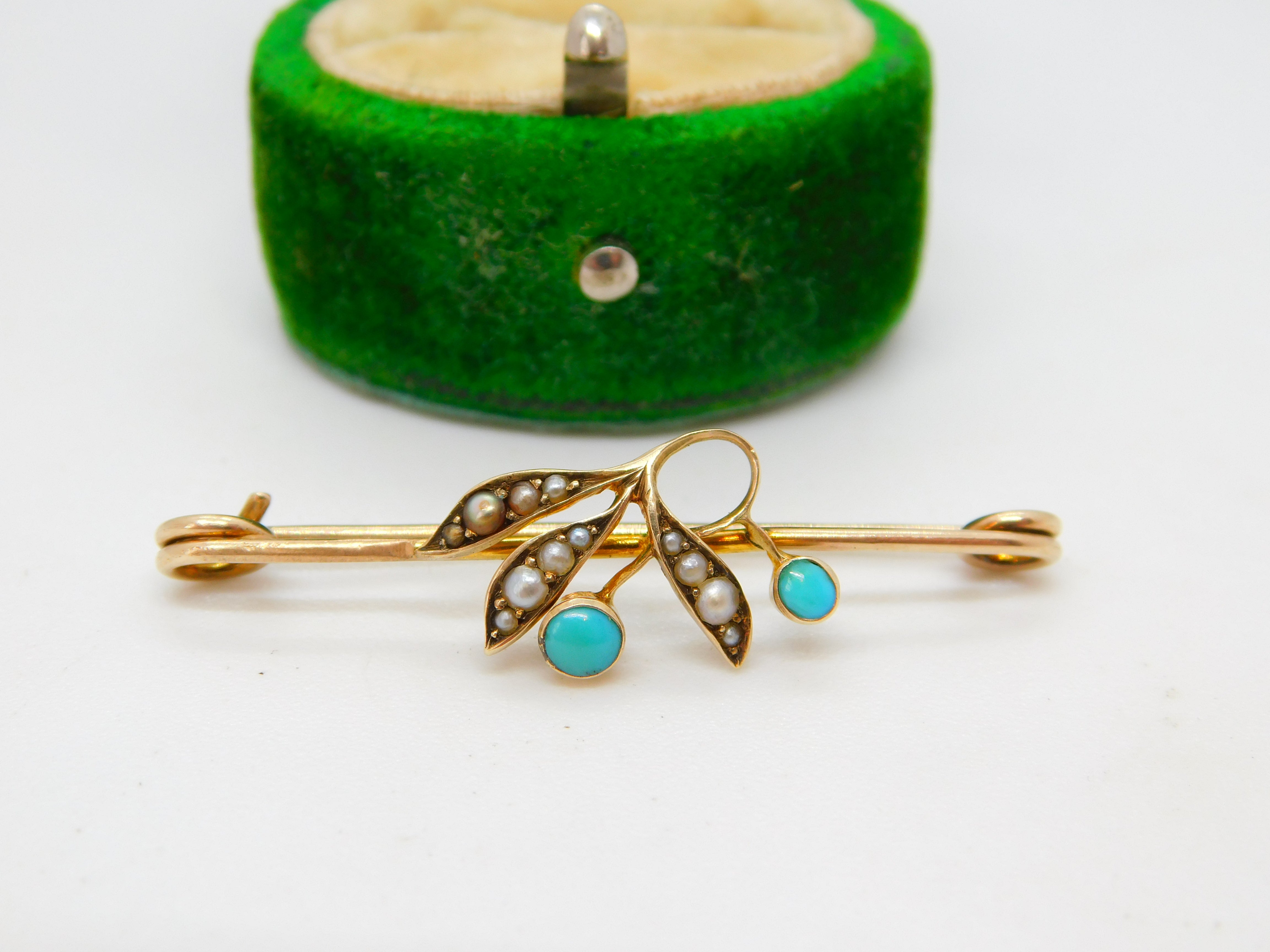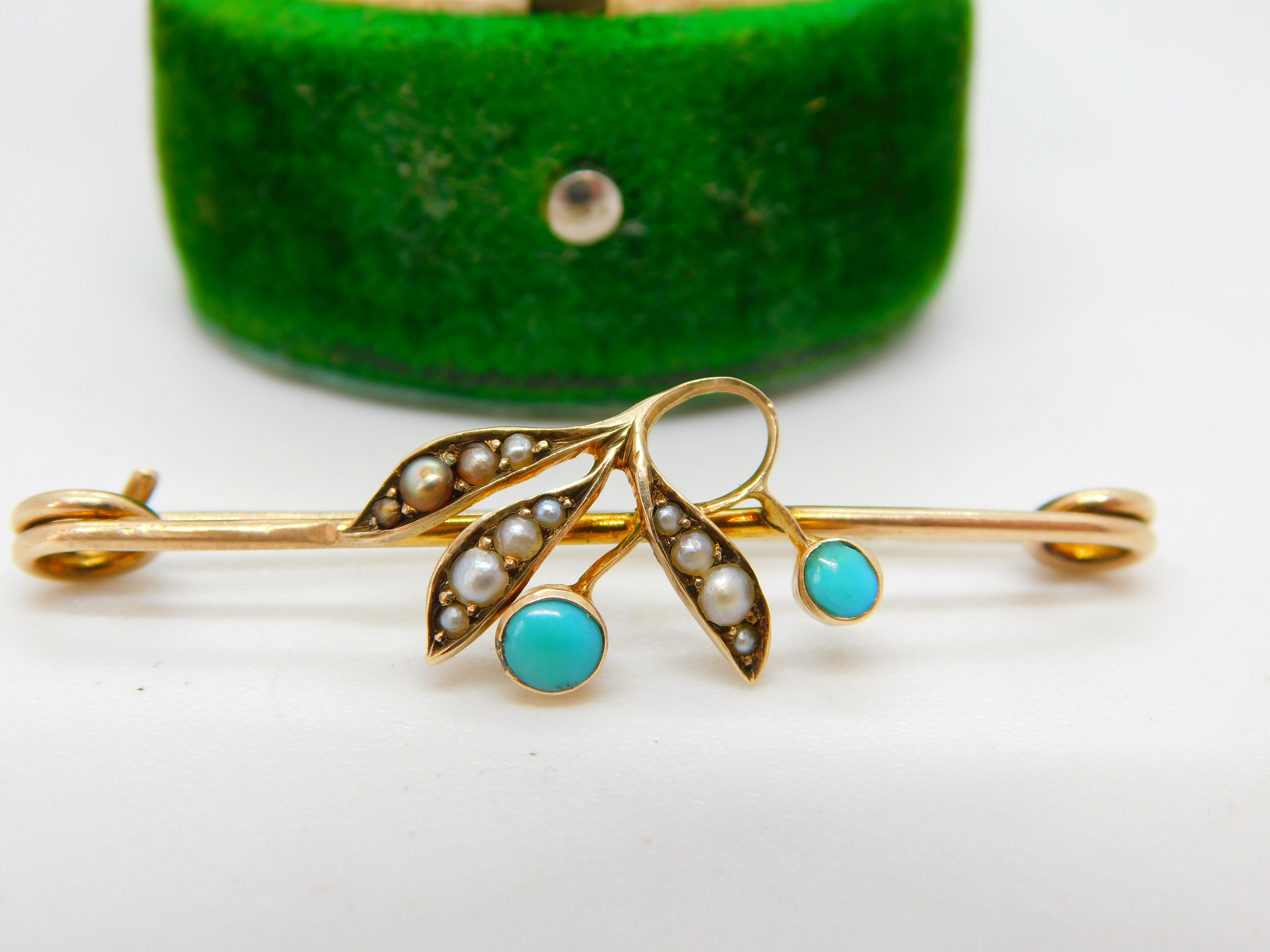Details: A fantastic and wonderfully designed antique Victorian 9ct yellow gold seed pearl & turquoise set floral sweetheart brooch hallmarked to the reverse c1890. This is a wonderful item that would make a perfect gift or addition to any collection. The BOX pictured is for PRESENTATION ONLY and is NOT included in the listings but used to frame the pictures unless specifically stated otherwise.