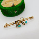 Victorian 9ct Yellow Gold, Seed Pearl & Turquoise Floral Sweetheart Brooch c1890