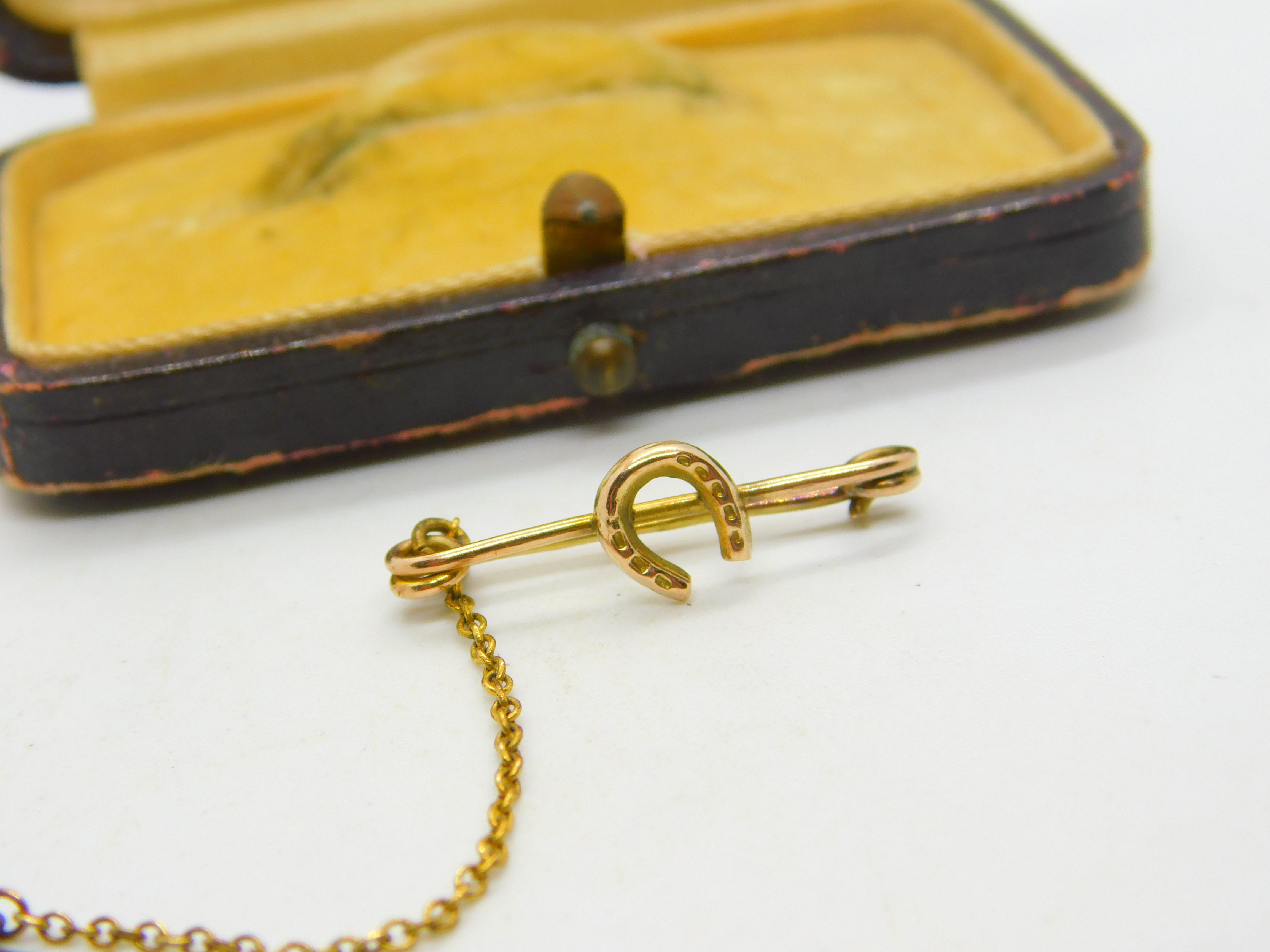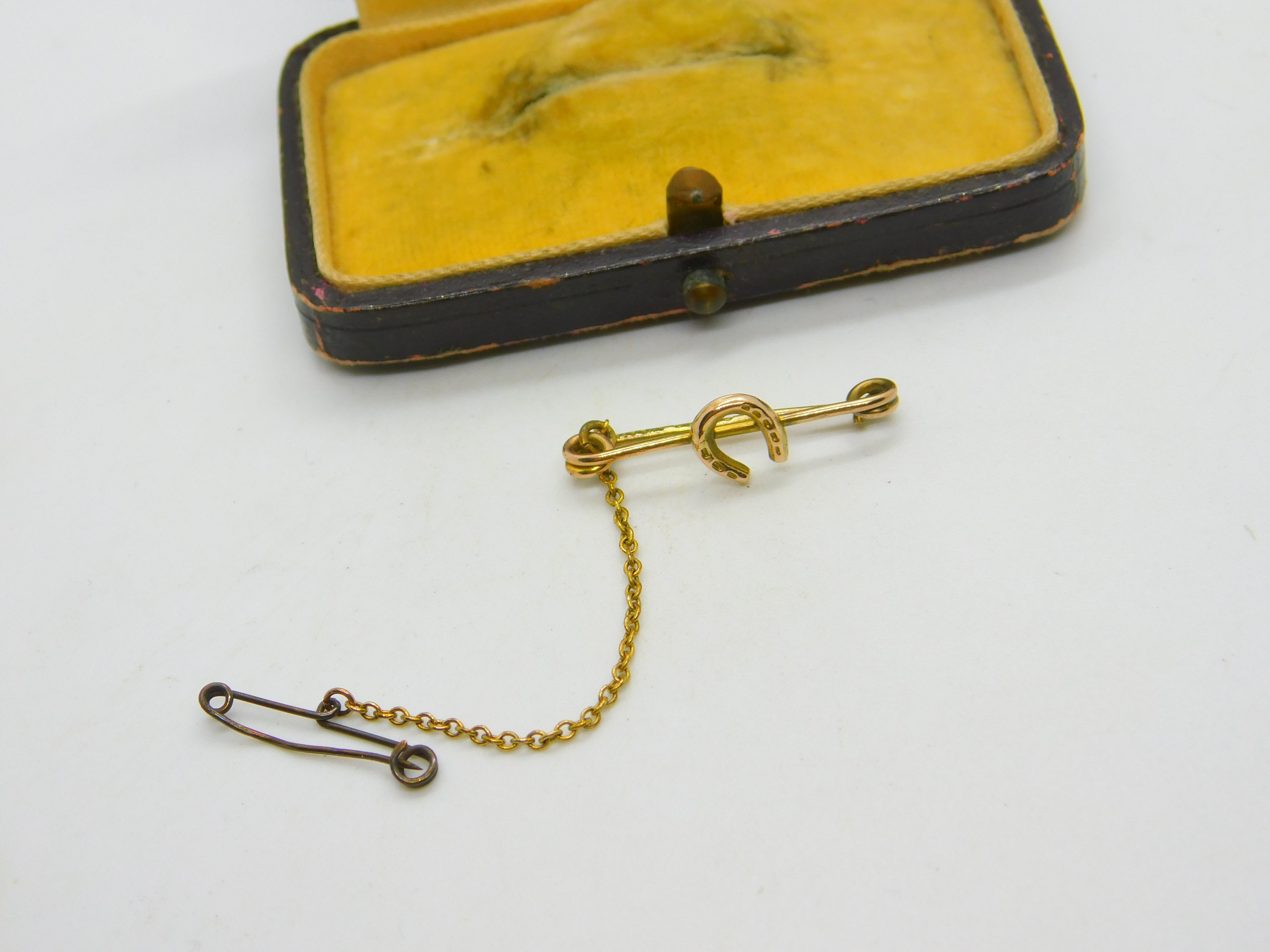 Details: A fantastic and wonderfully designed antique Victorian small possibly a child's 9ct yellow gold stock pin brooch with good luck horseshoe detail hallmarked Birmingham 1901. This is a wonderful item that would make a perfect gift or addition to any collection. The BOX pictured is for PRESENTATION ONLY and is NOT included in the listings but used to frame the pictures unless specifically stated otherwise.