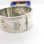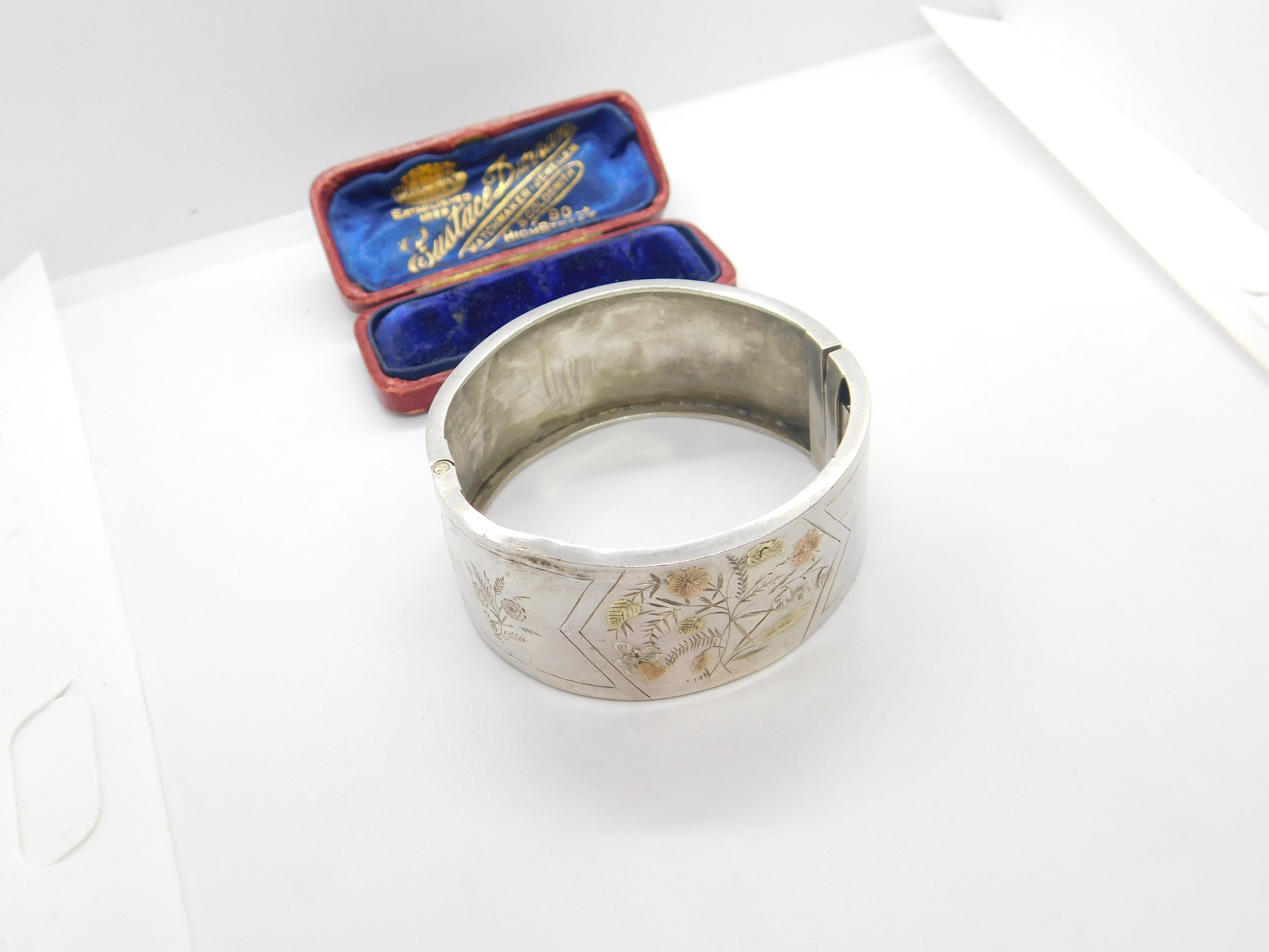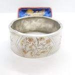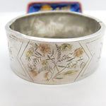 Victorian Aesthetic Movement Sterling Silver & Gold Floral Cuff Bangle c1880