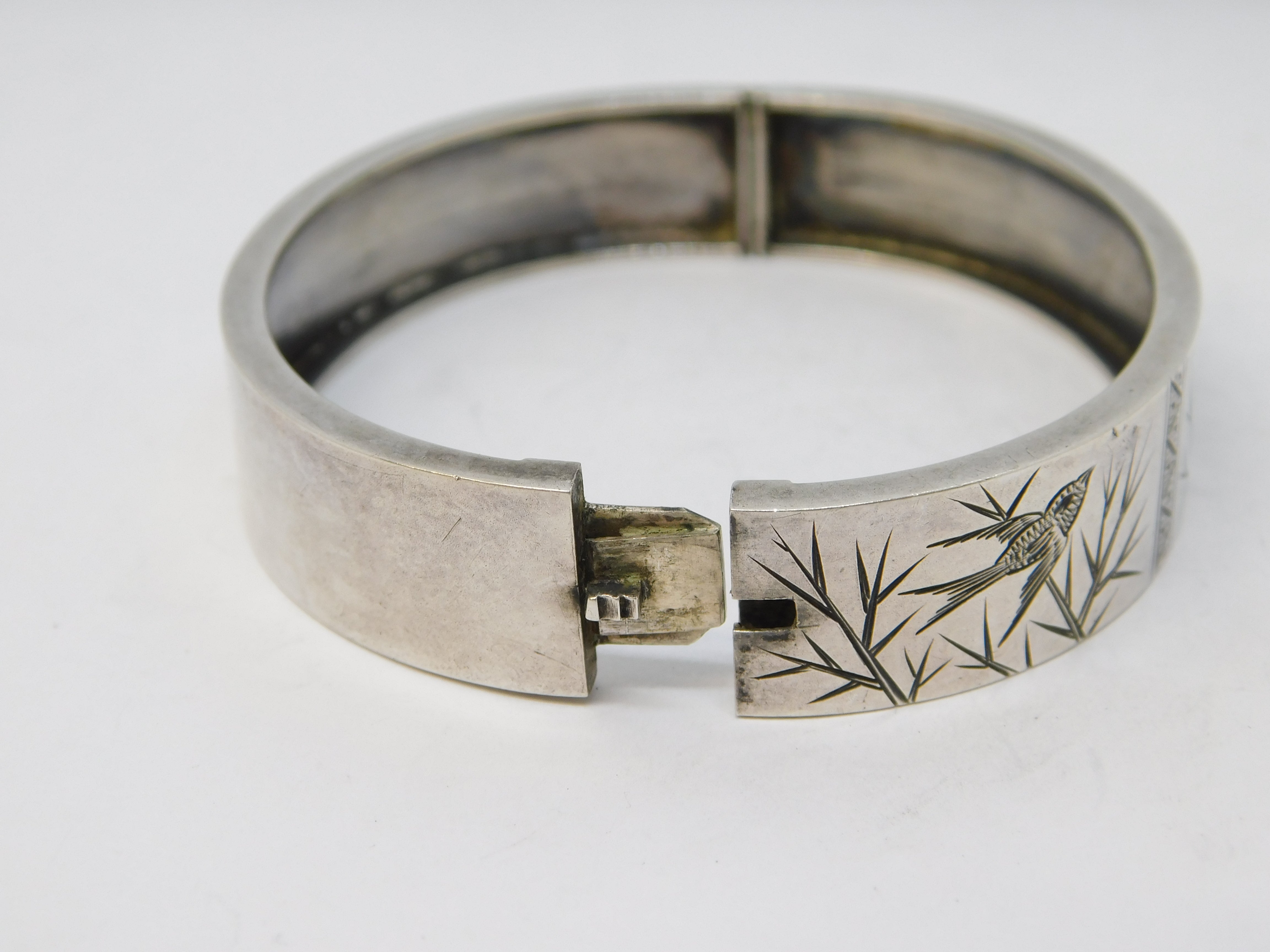Victorian Aesthetic Movement Sterling Silver Swallow Bangle Antique c1880