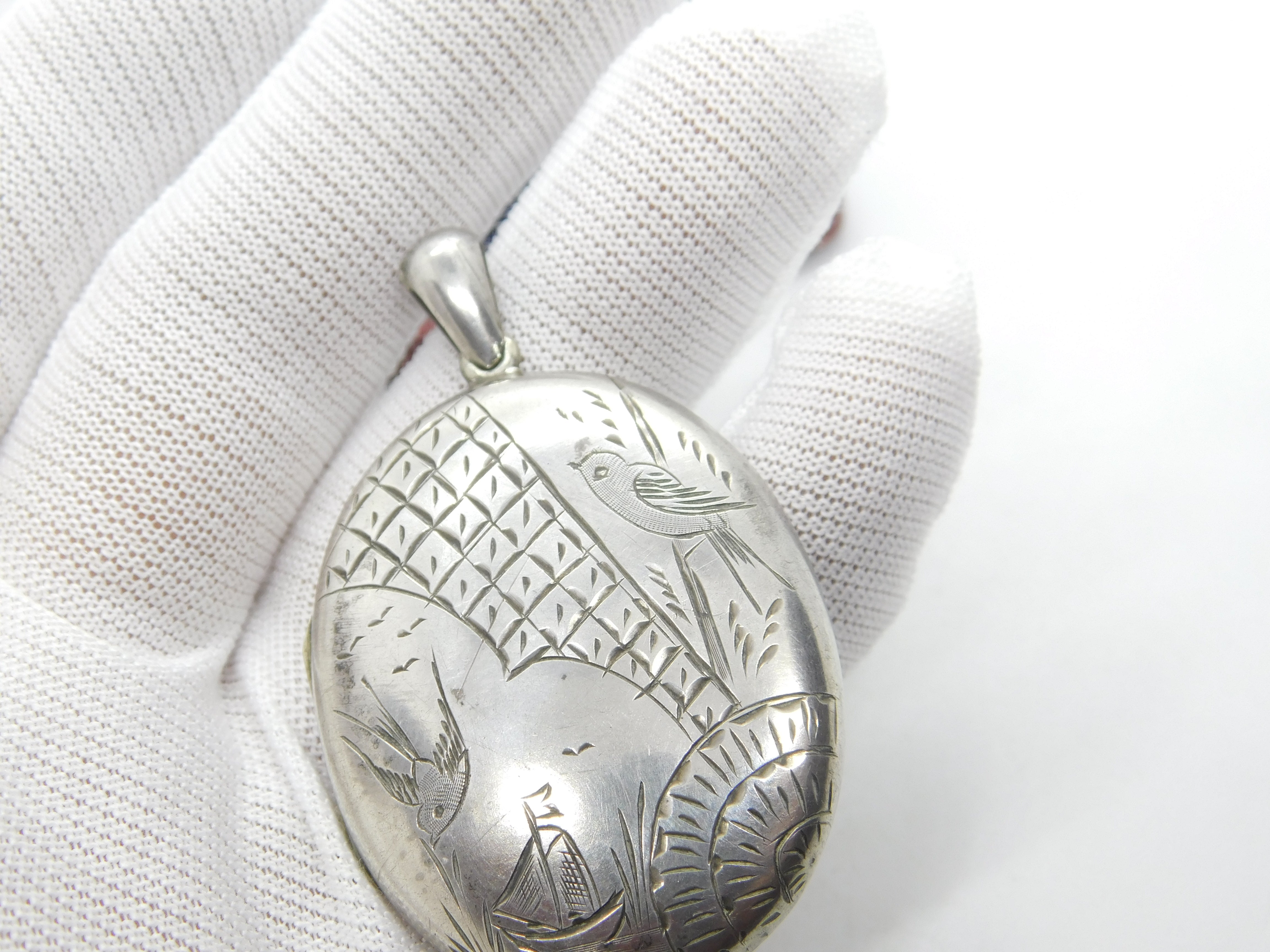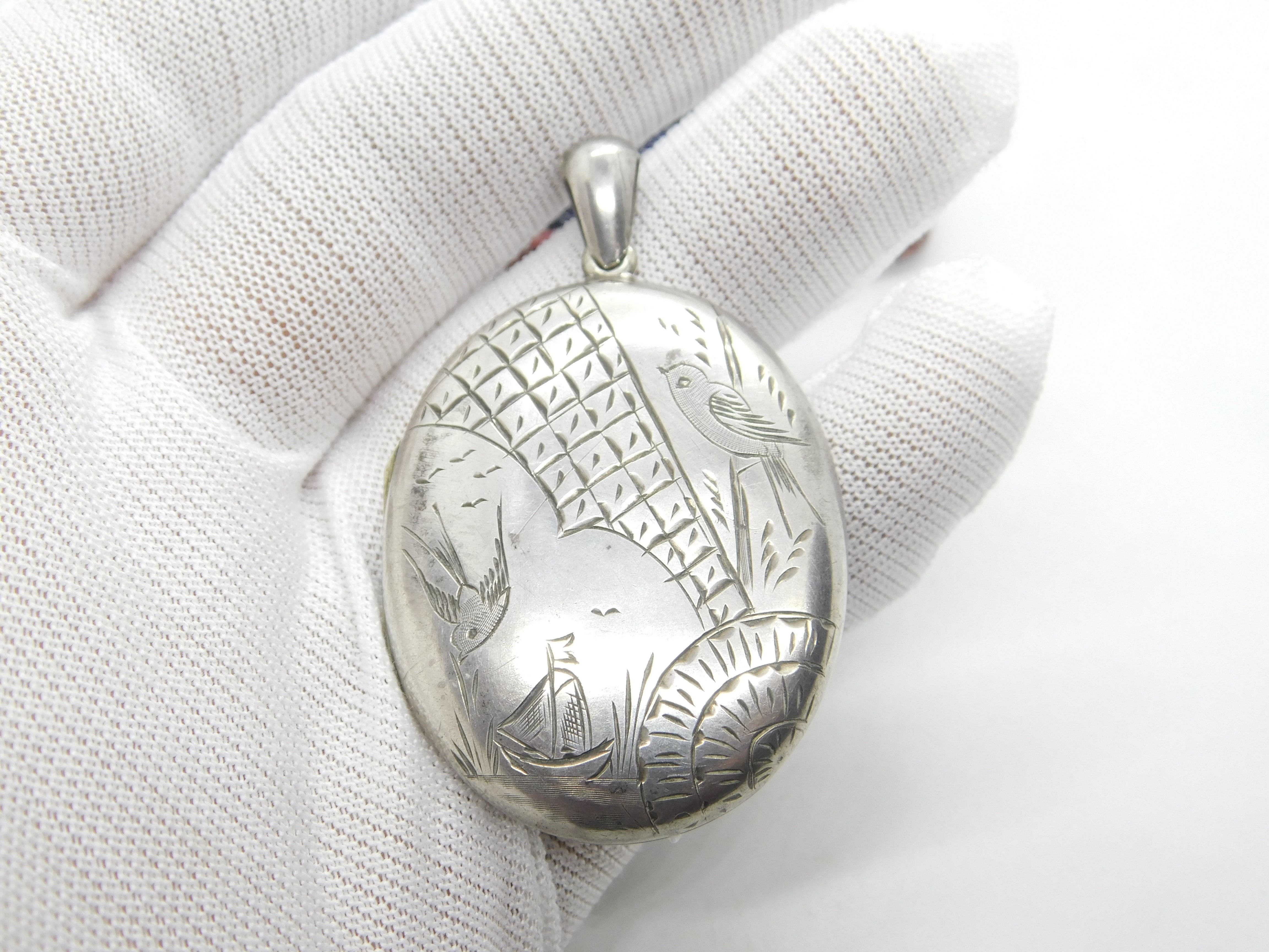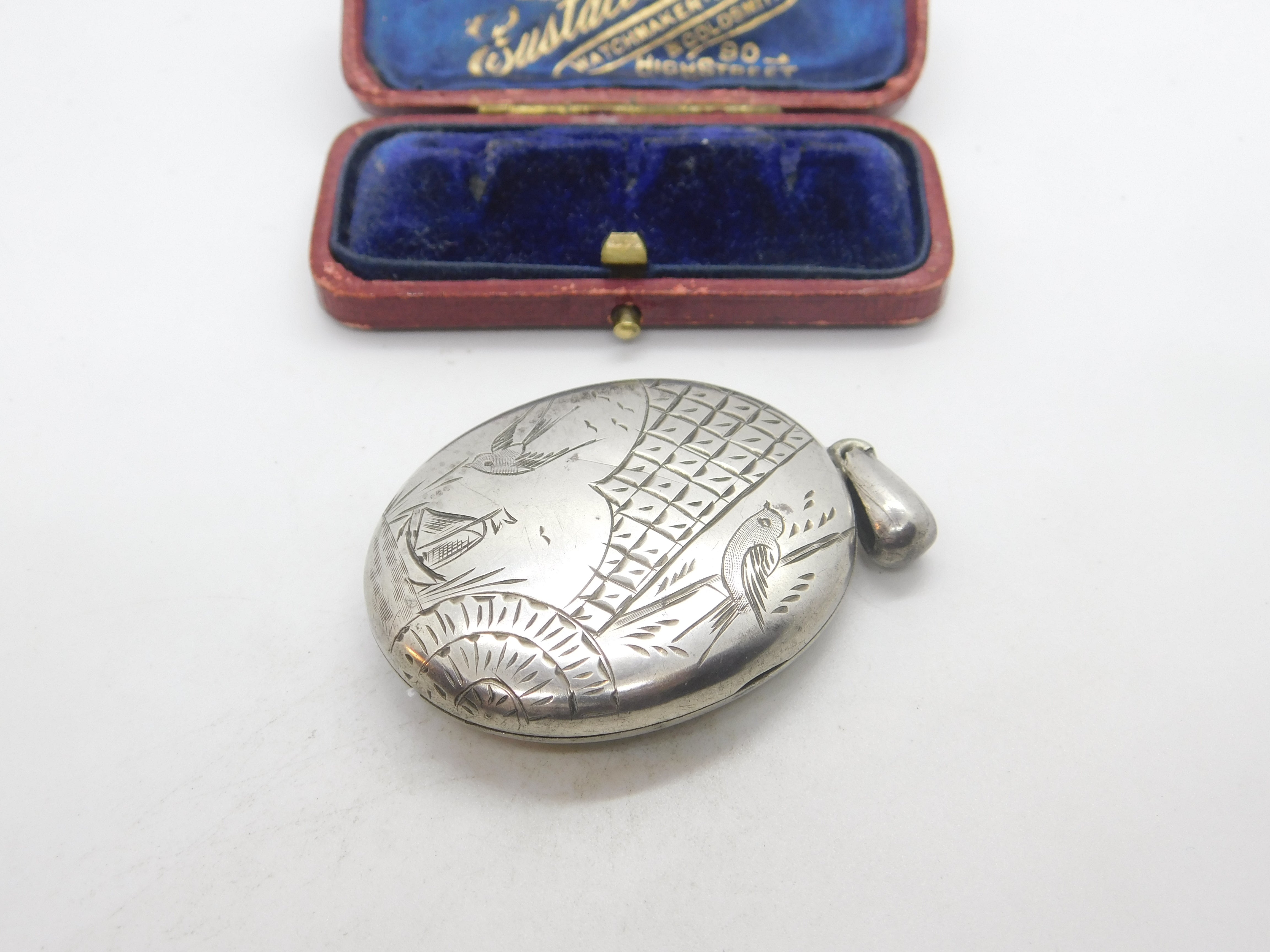 Details: A fantastic and wonderfully designed antique Victorian aesthetic movement sterling silver swallow locket with birds and ships c1880 - the silver has been XRF tested. This is a wonderful item that would make a perfect gift or addition to any collection. The BOX pictured is for PRESENTATION ONLY and is NOT included in the listings but used to frame the pictures unless specifically stated otherwise.