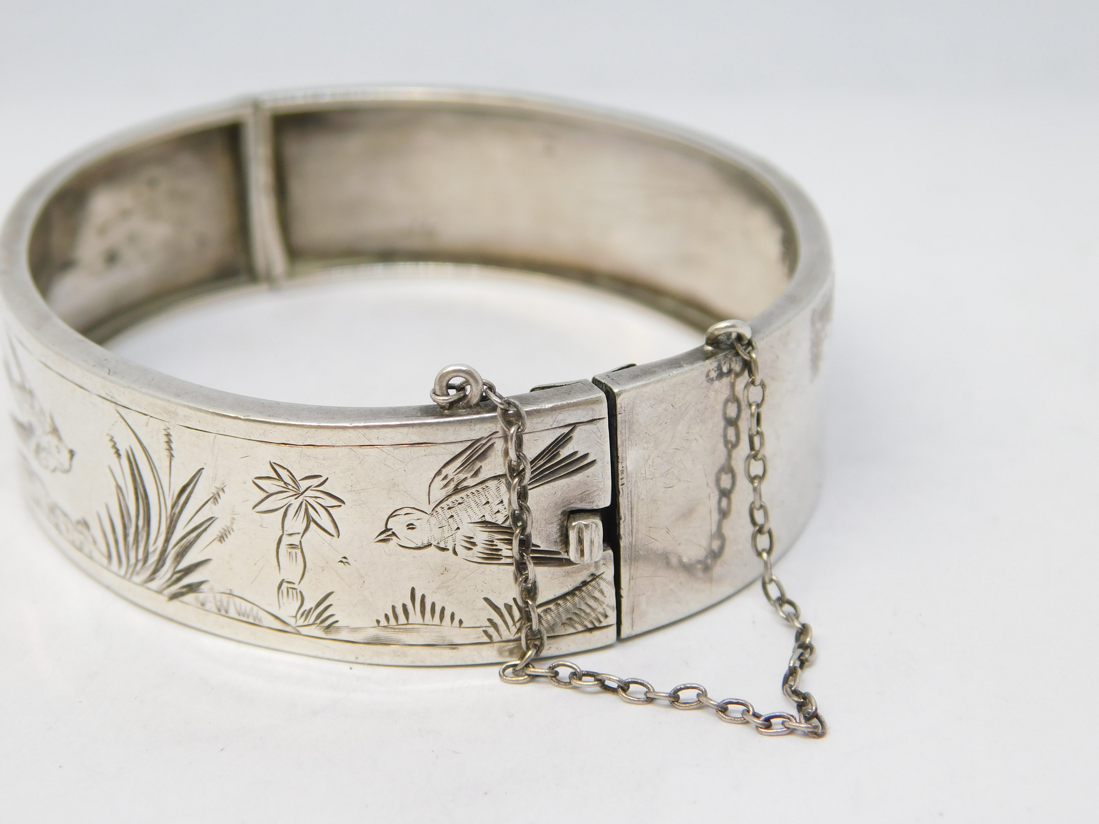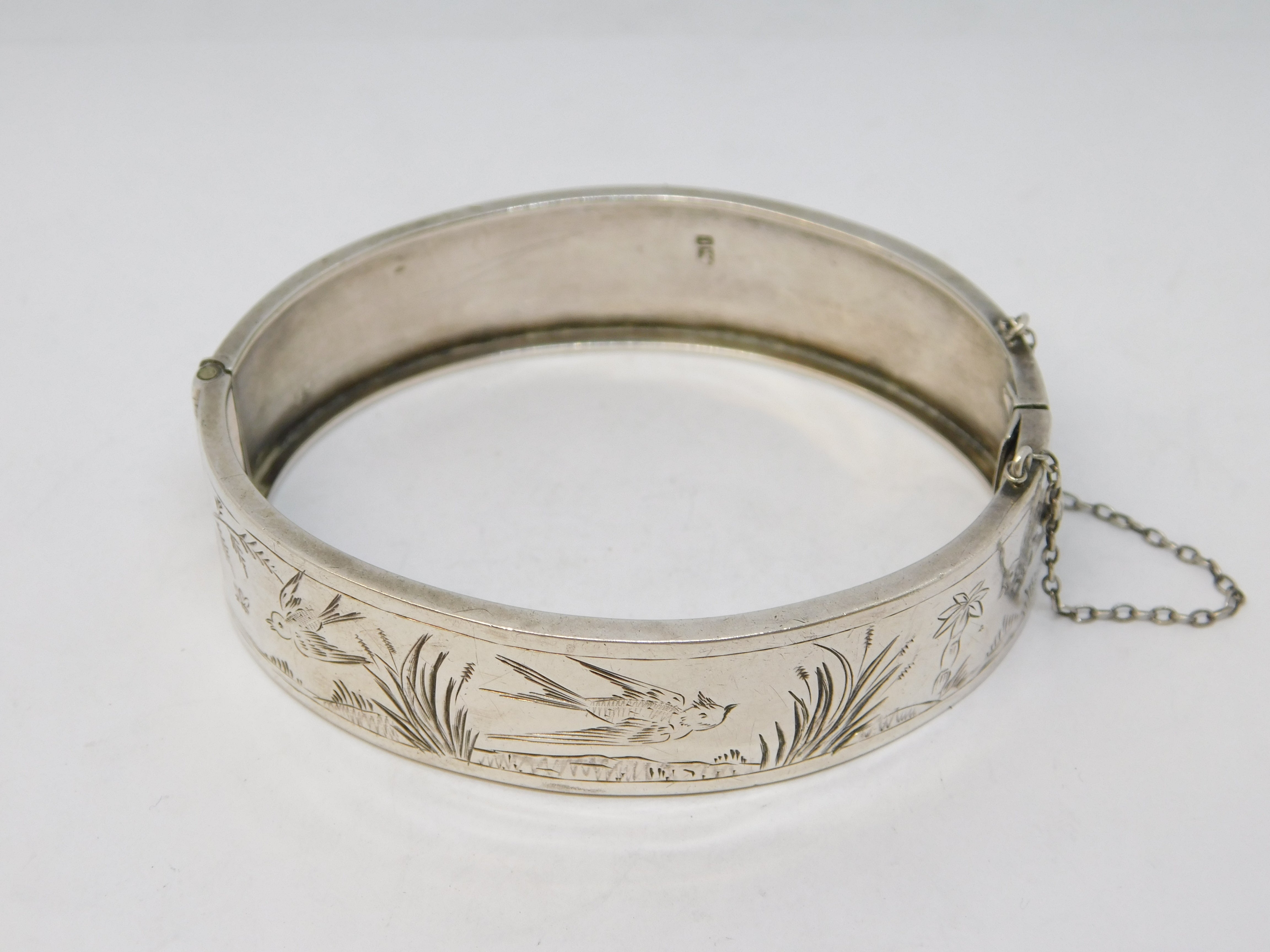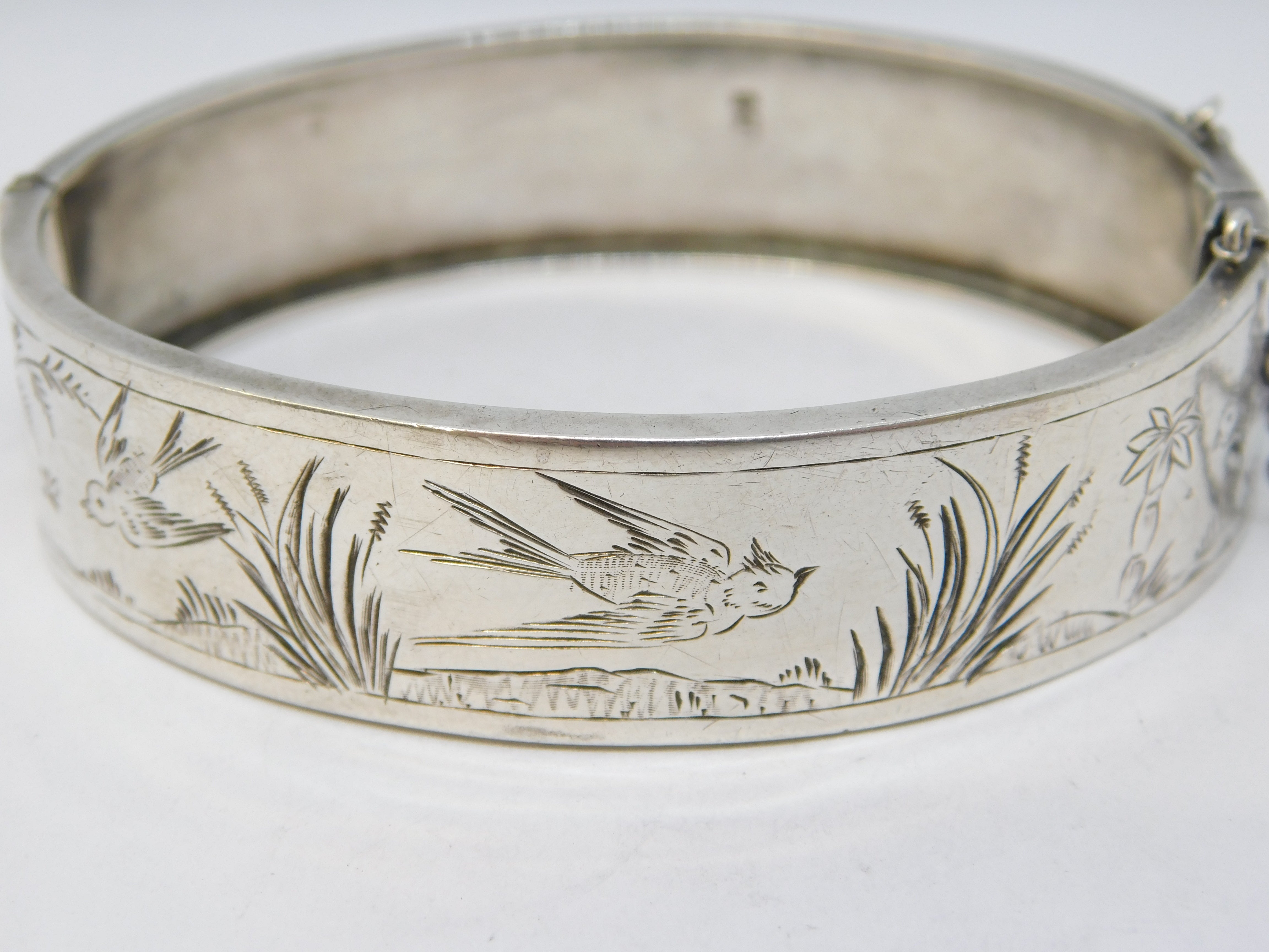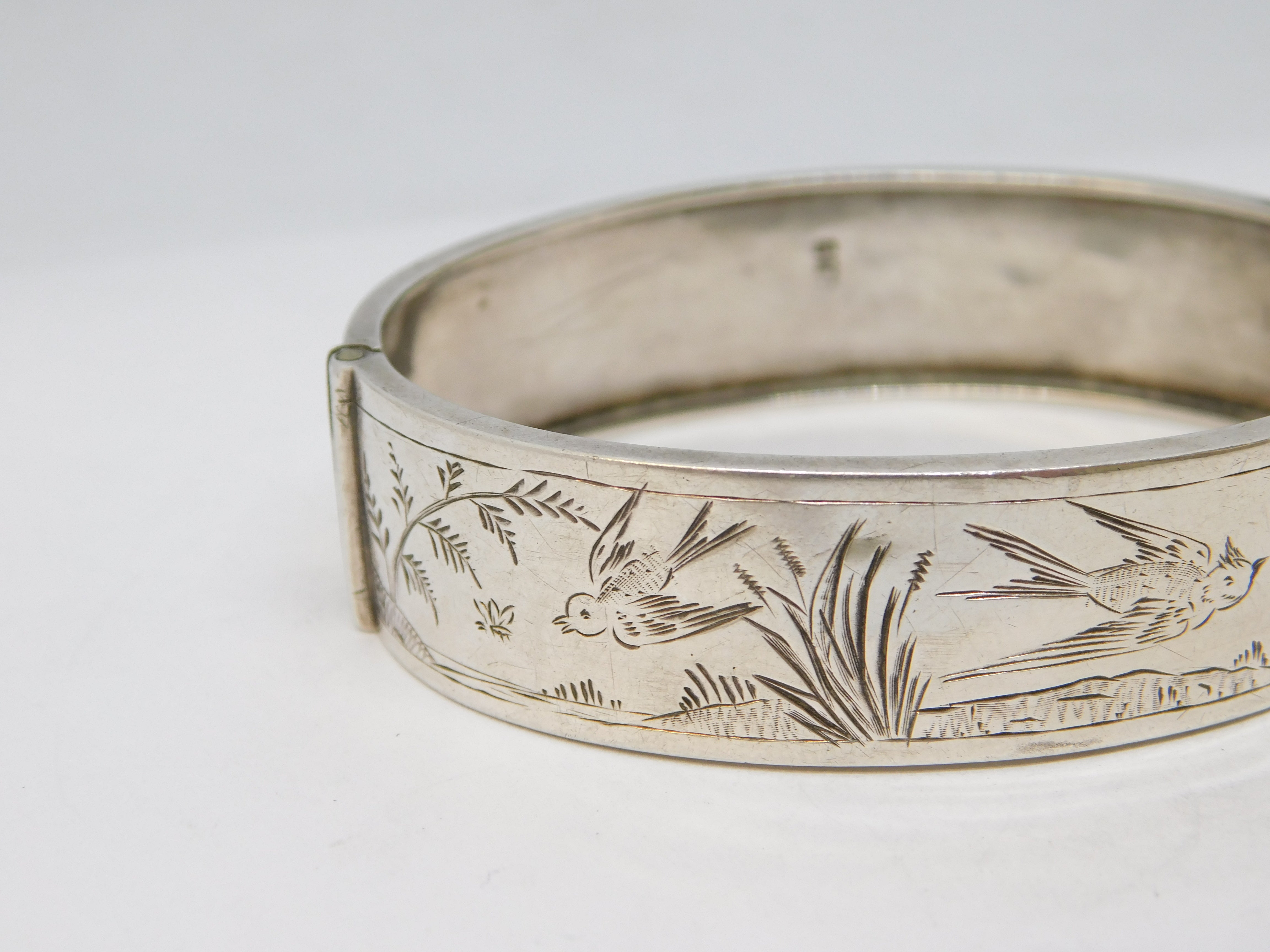Victorian Aesthetic Sterling Silver Swallow Bangle Antique 1882 Birmingham