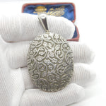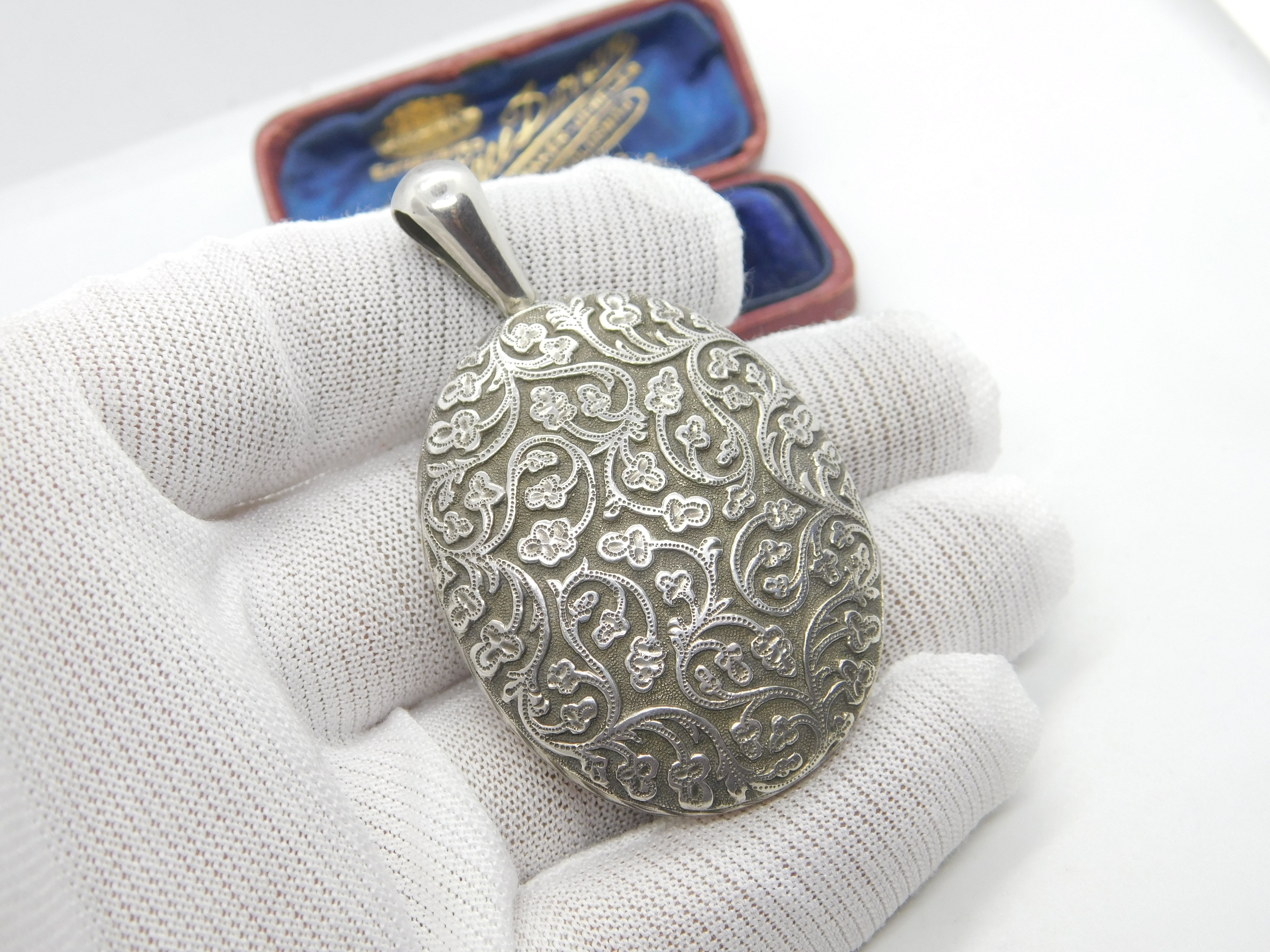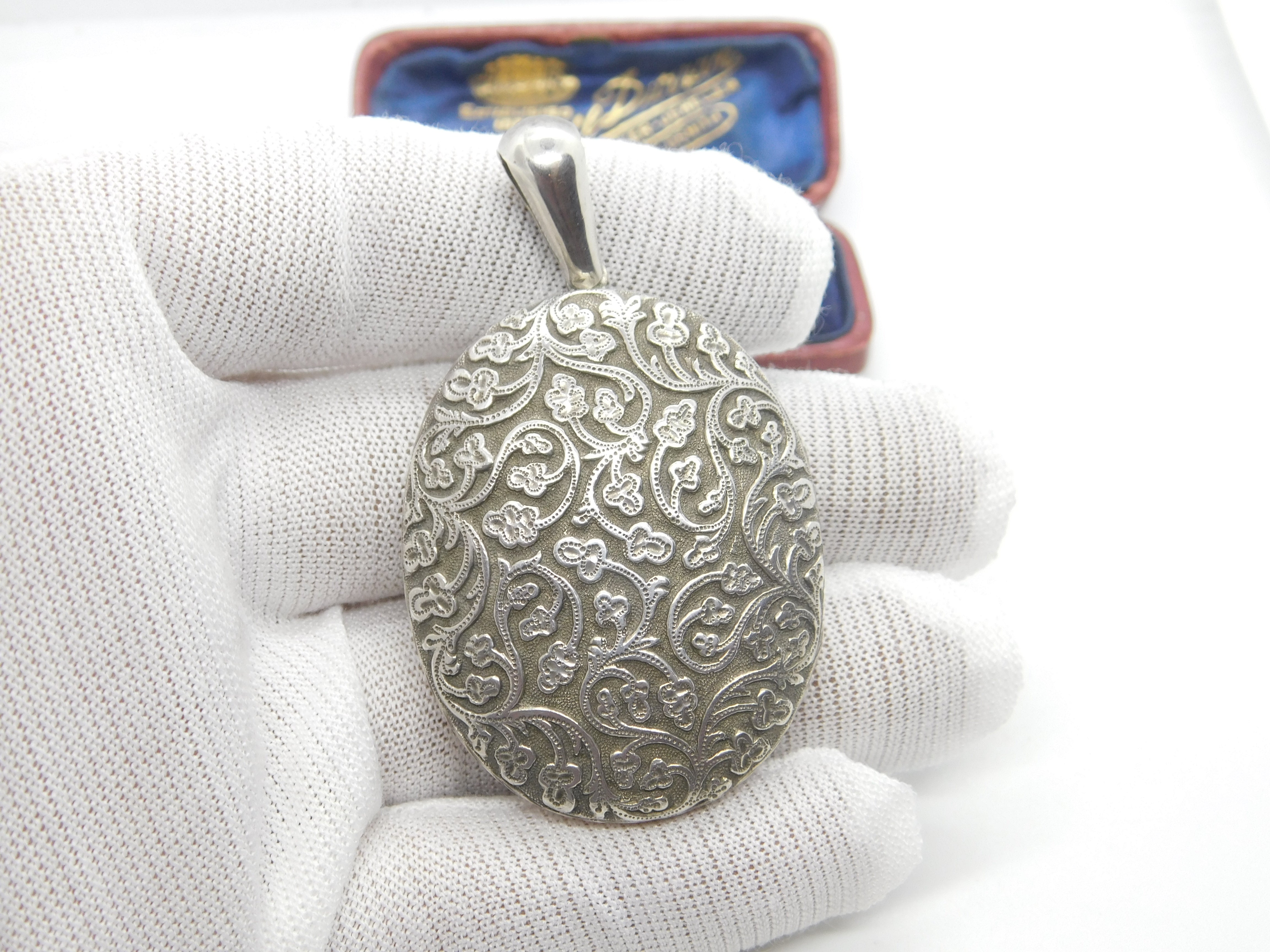 Details: A fantastic and wonderfully designed antique Victorian anglo-indian floral pattern large double locket with lovely detailing marked sterling to the bale c1880. This is a wonderful item that would make a perfect gift or addition to any collection. The BOX pictured is for PRESENTATION ONLY and is NOT included in the listings but used to frame the pictures unless specifically stated otherwise.