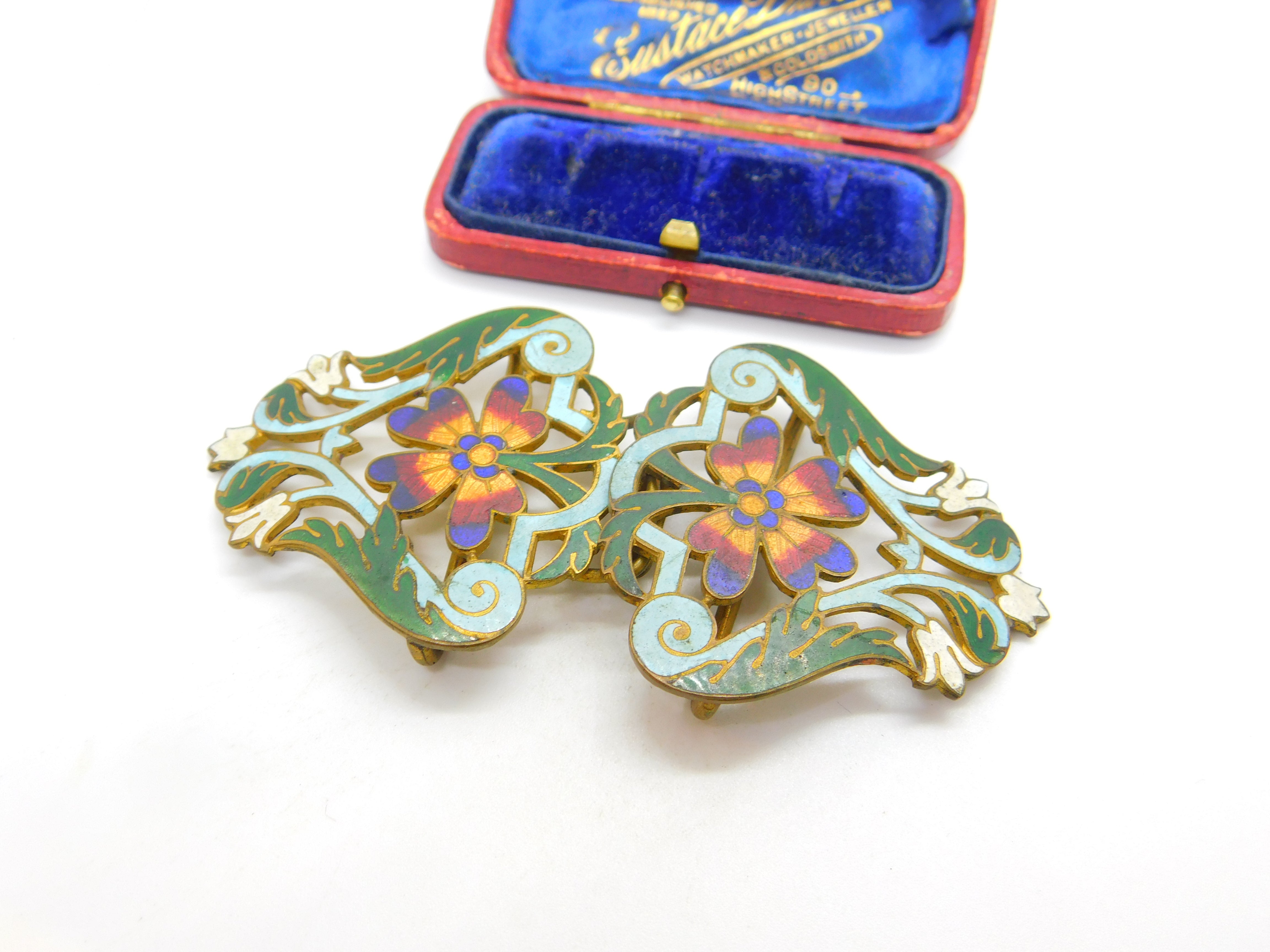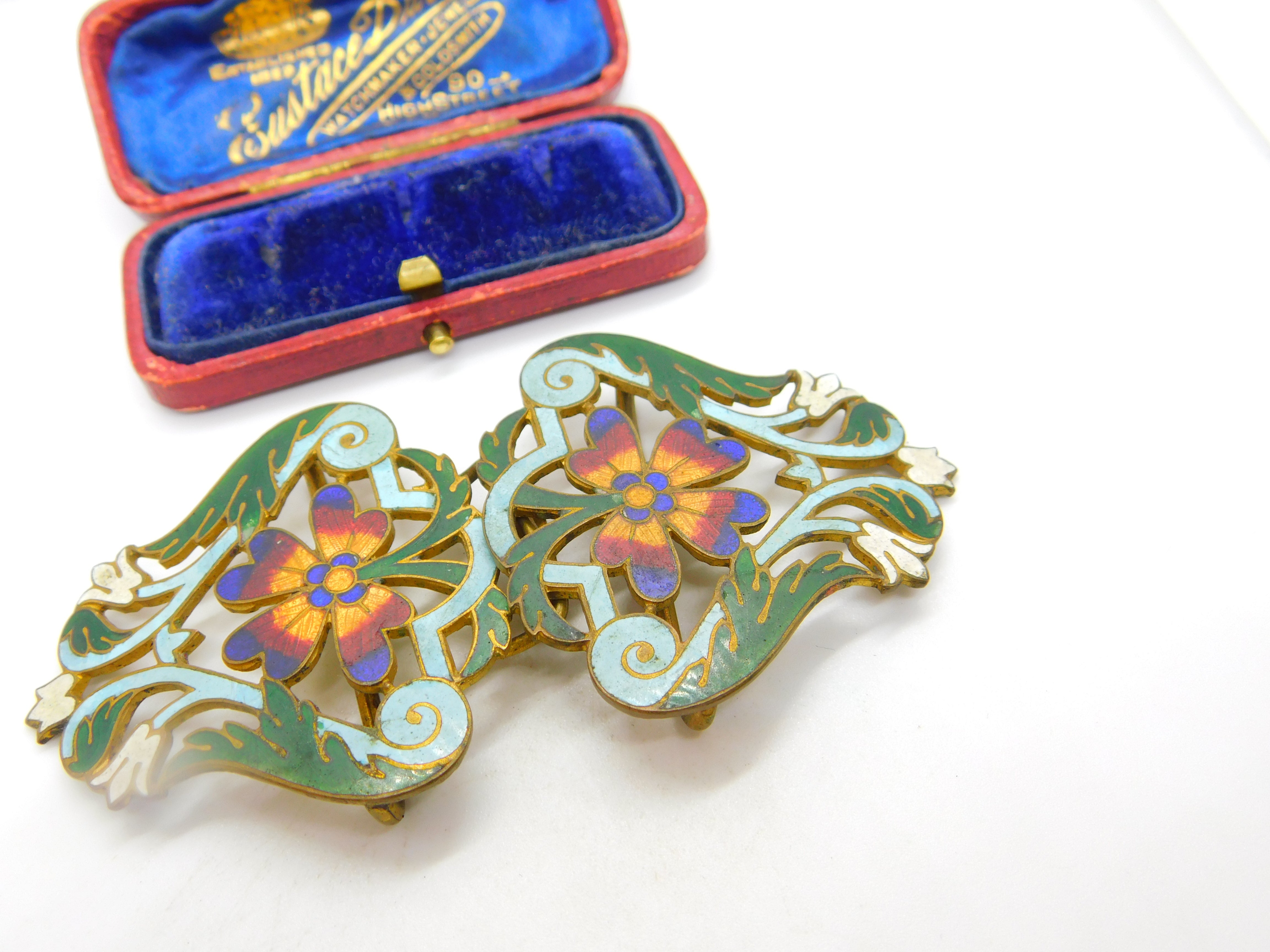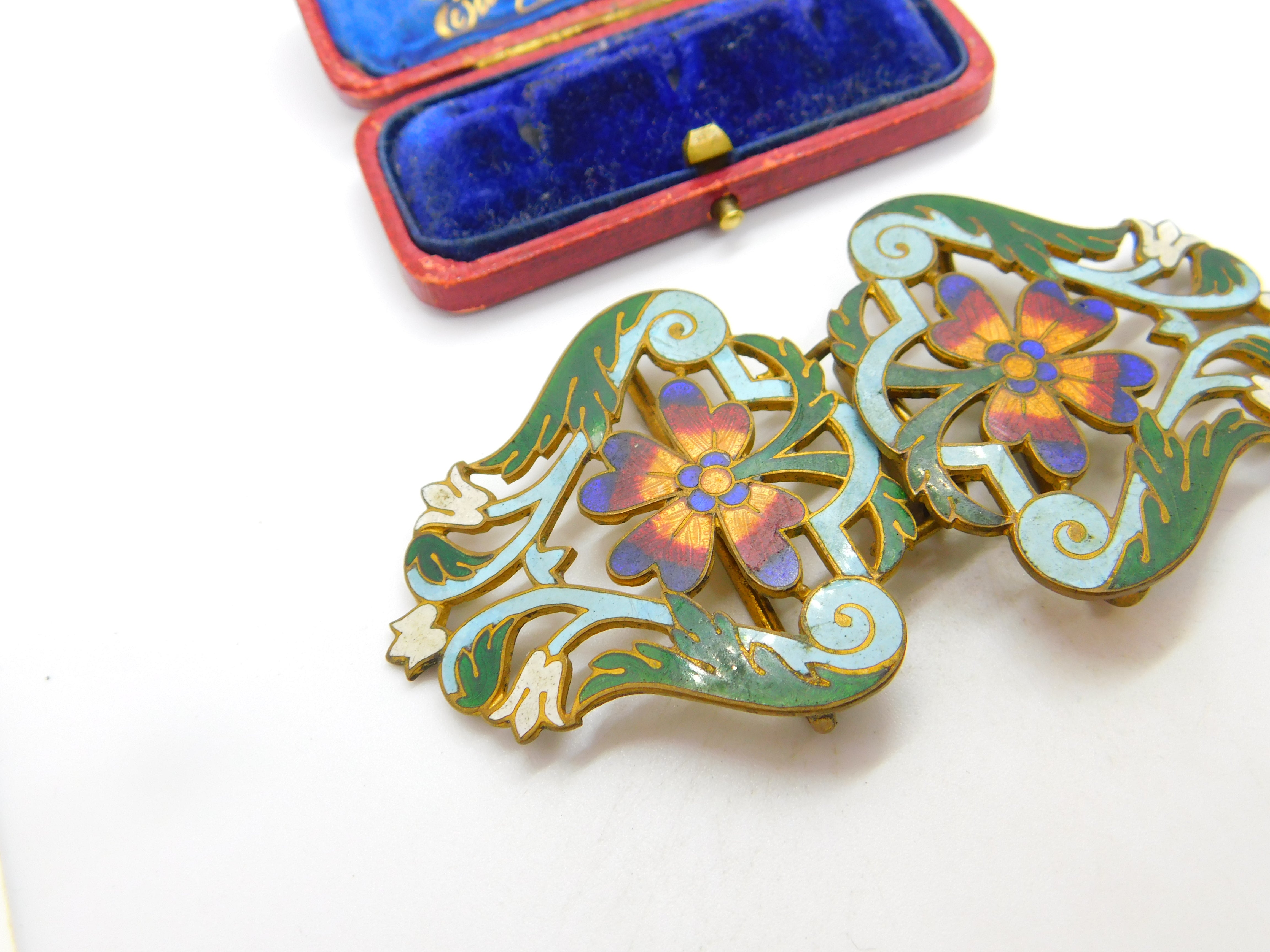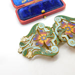 Victorian Art Nouveau Gilt Metal Colourful Enamel Floral Nurses Buckle c1880