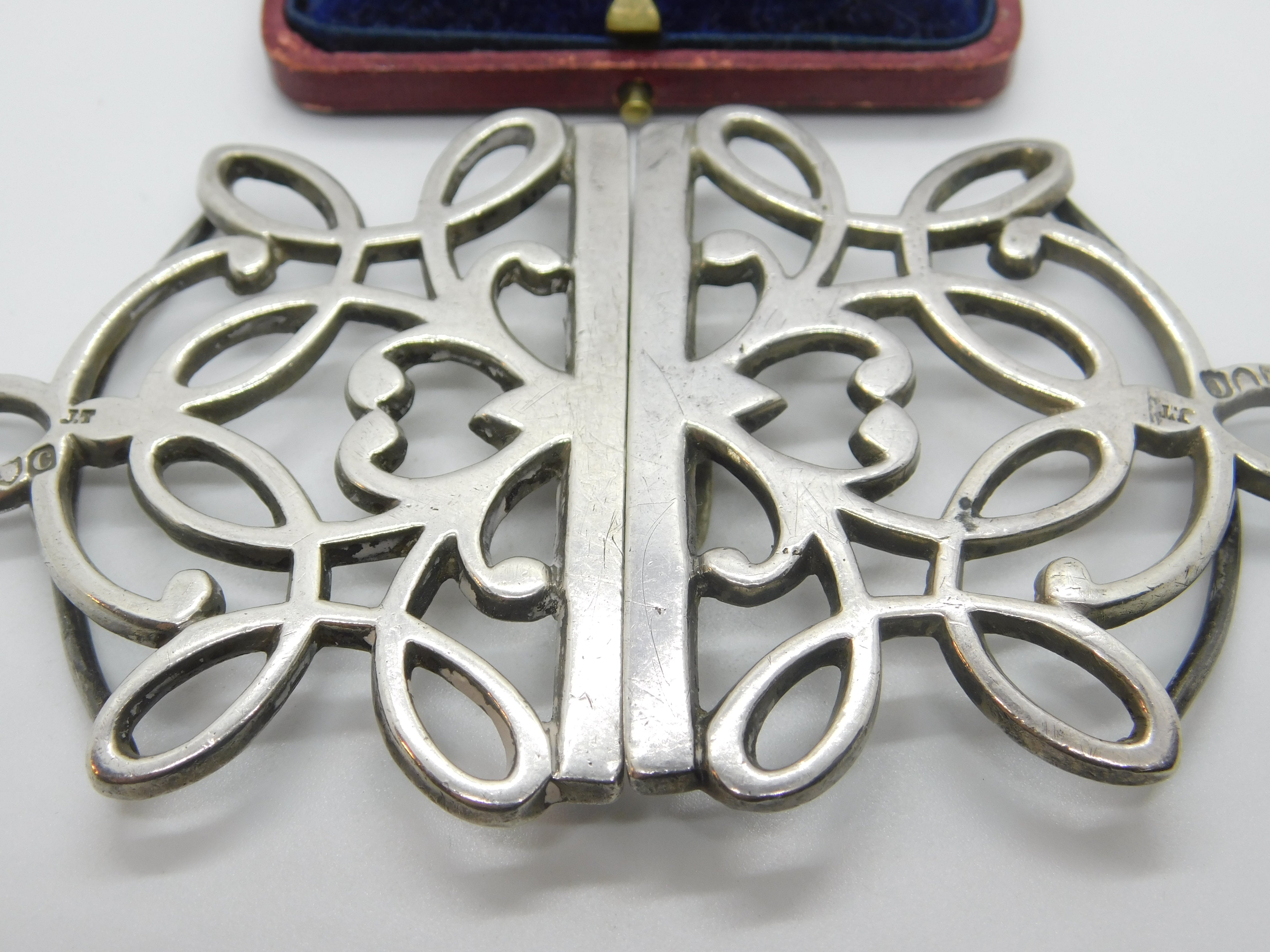 Victorian Art Nouveau Sterling Silver Floral Buckle 1898 London Antique