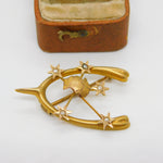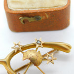 Victorian Australian 9ct Gold Seed Pearl Southern Cross Lucky Brooch c1880