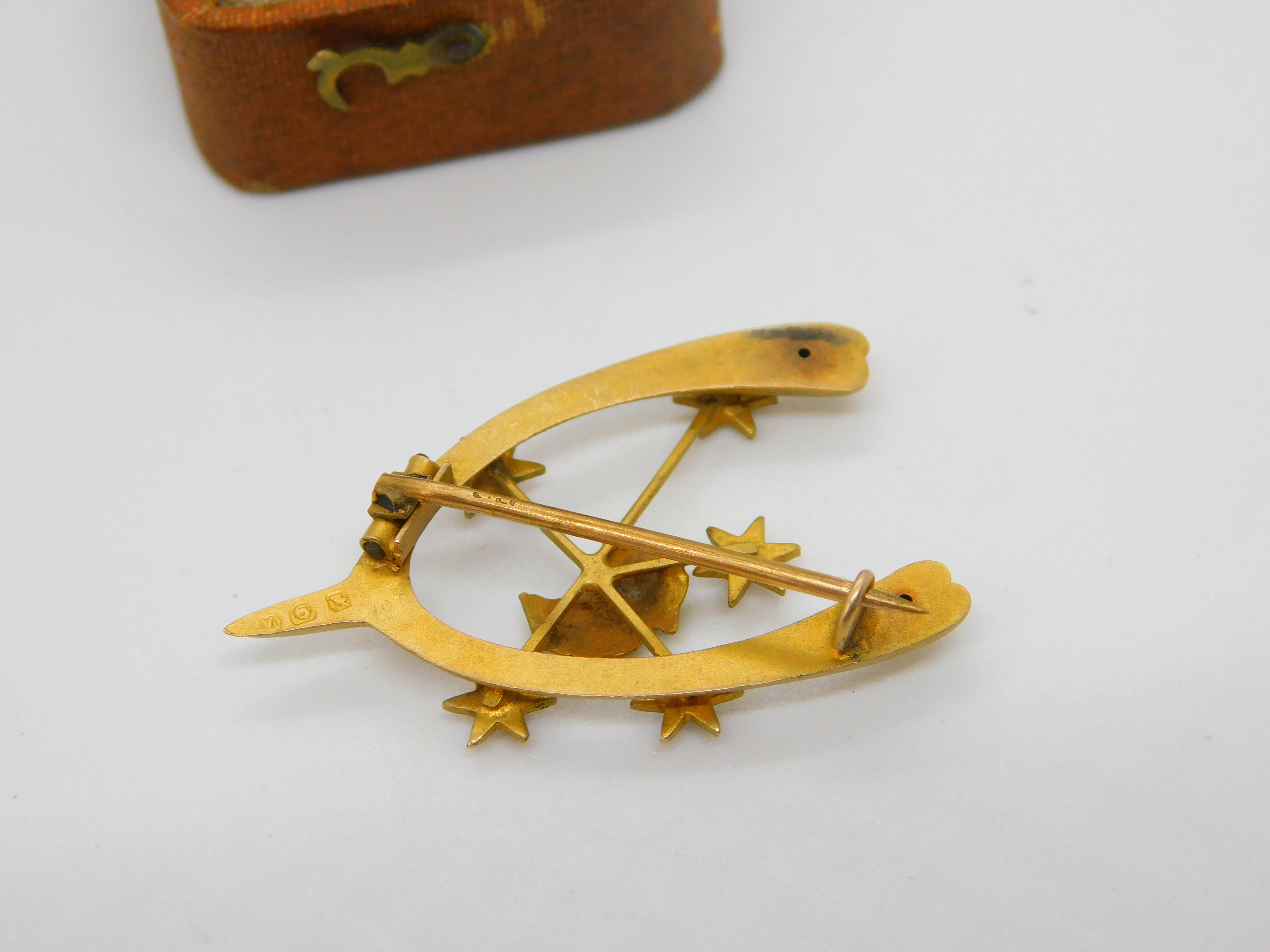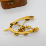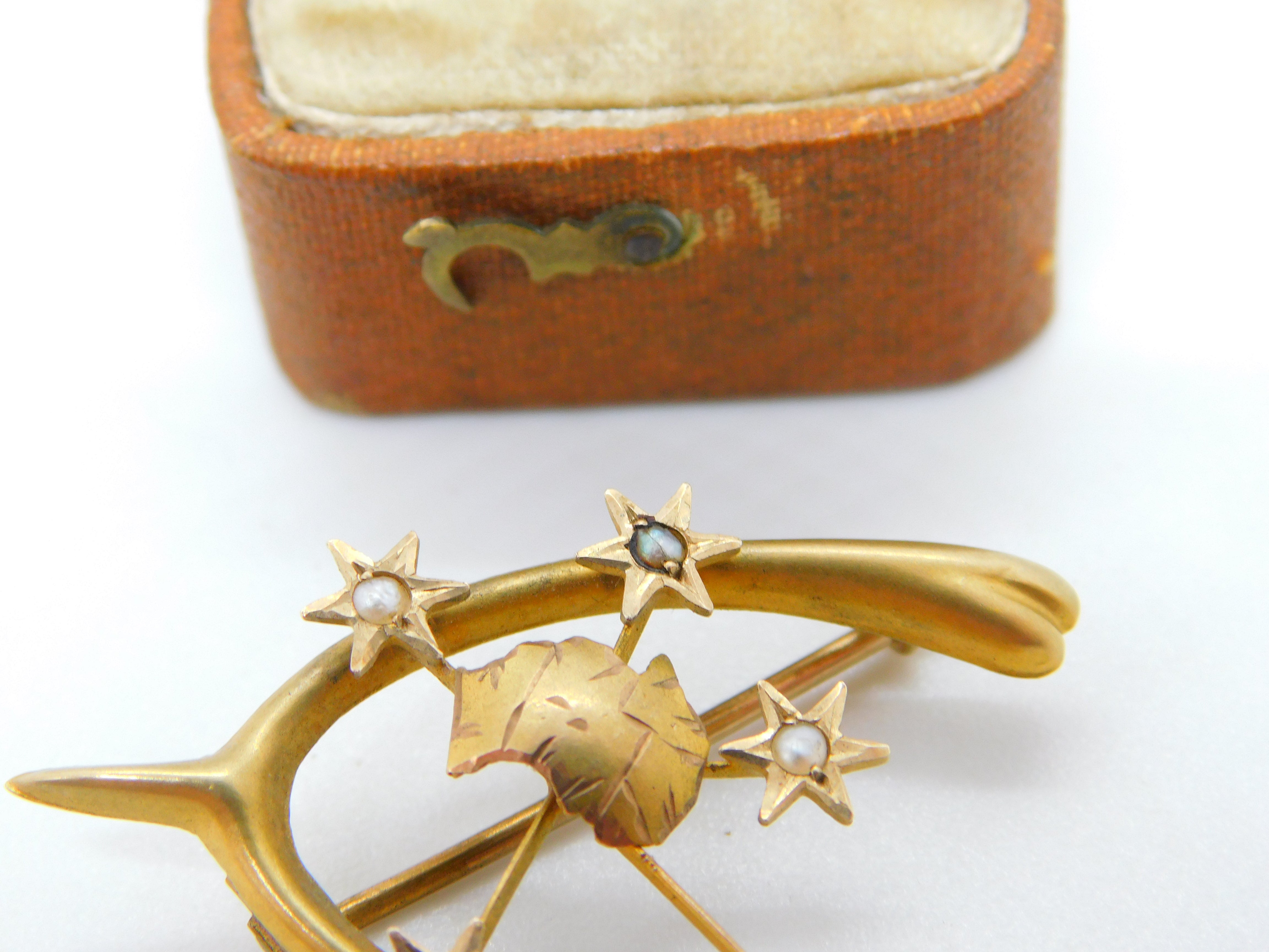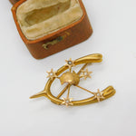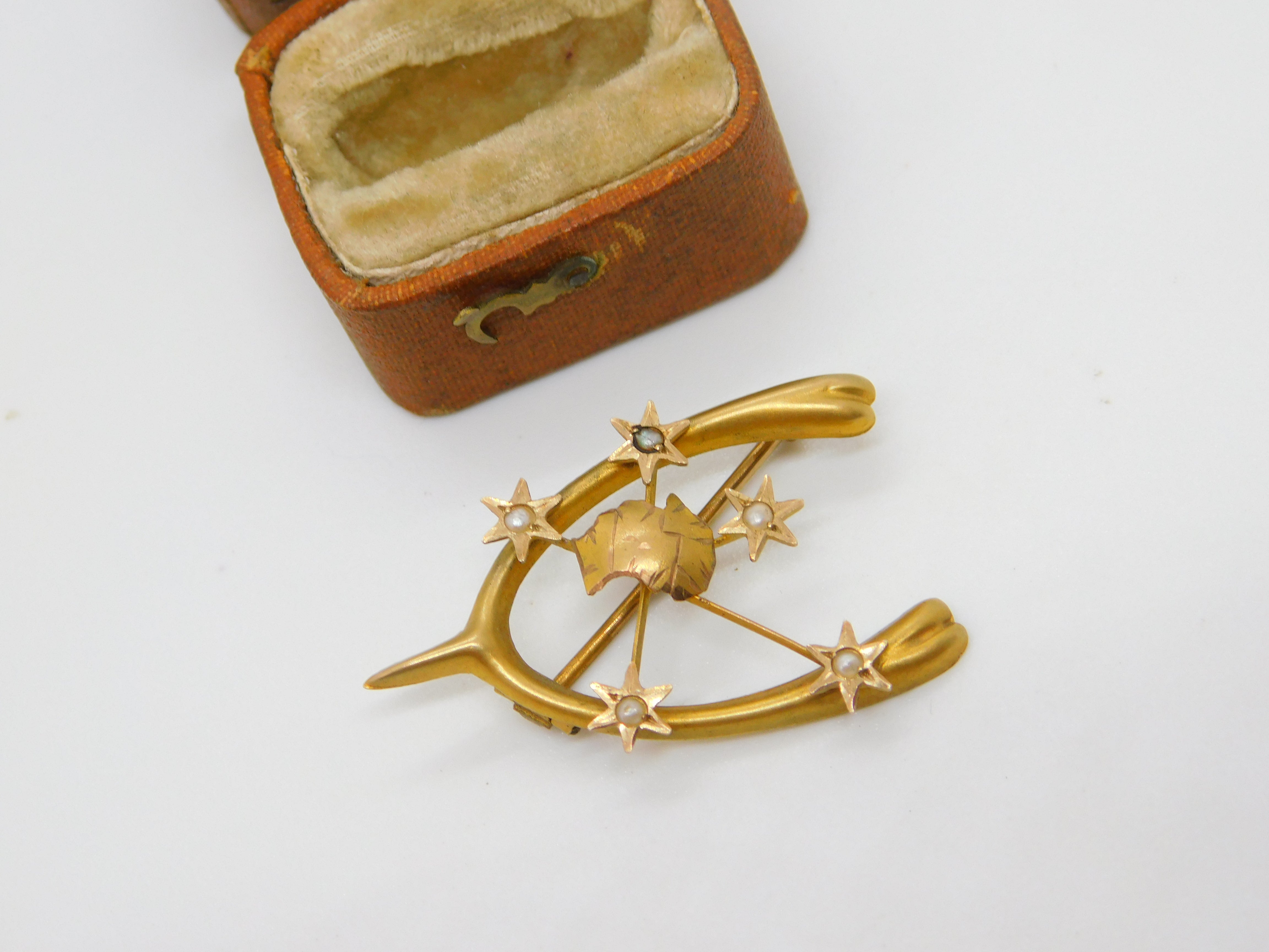 Details: A fantastic and wonderfully designed antique Victorian Australian 9ct yellow gold wishbone good luck brooch depicting an australian southern cross set throughout with seed pearls hallmarked to the reverse c1880 by Willis & Sons of Melbourne with unusual Australian assay marks. This is a wonderful item that would make a perfect gift or addition to any collection. The BOX pictured is for PRESENTATION ONLY and is NOT included in the listings but used to frame the pictures unless specifically stated otherwise.