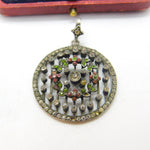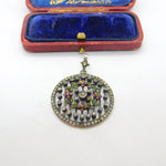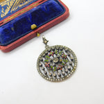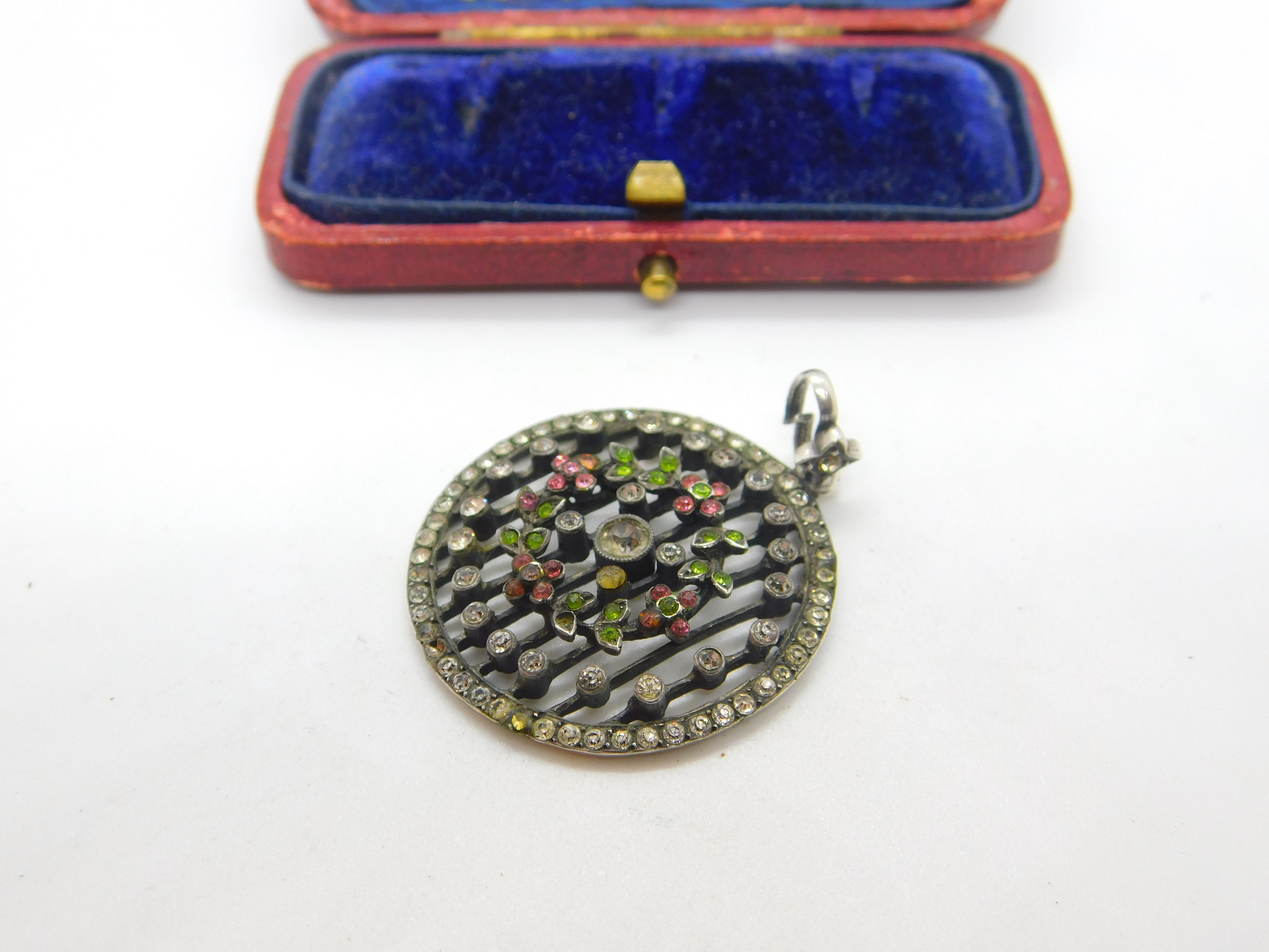 Victorian Austrian Sterling Silver & Colourful Paste Set Floral Pendant c1860